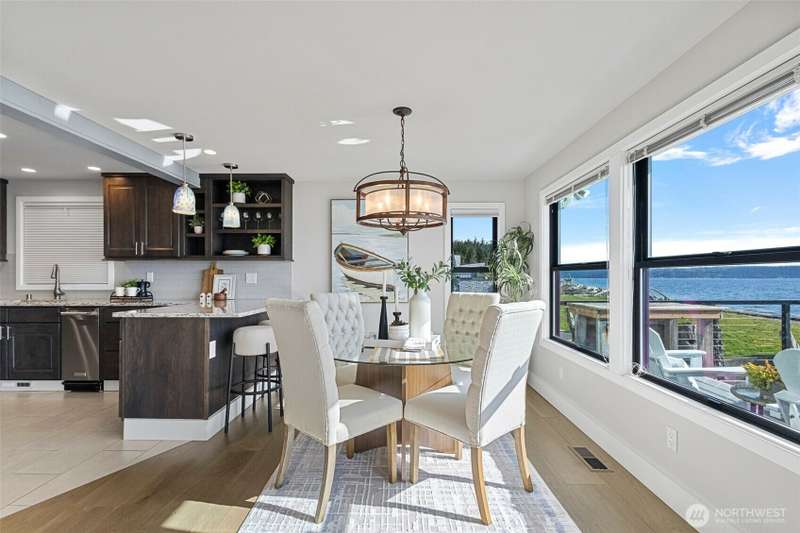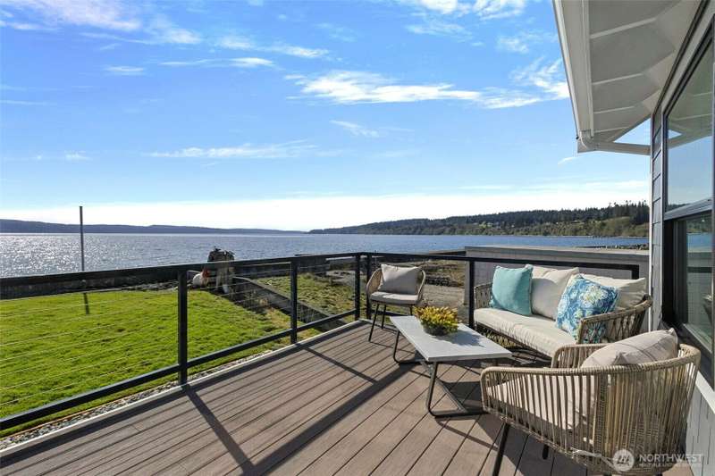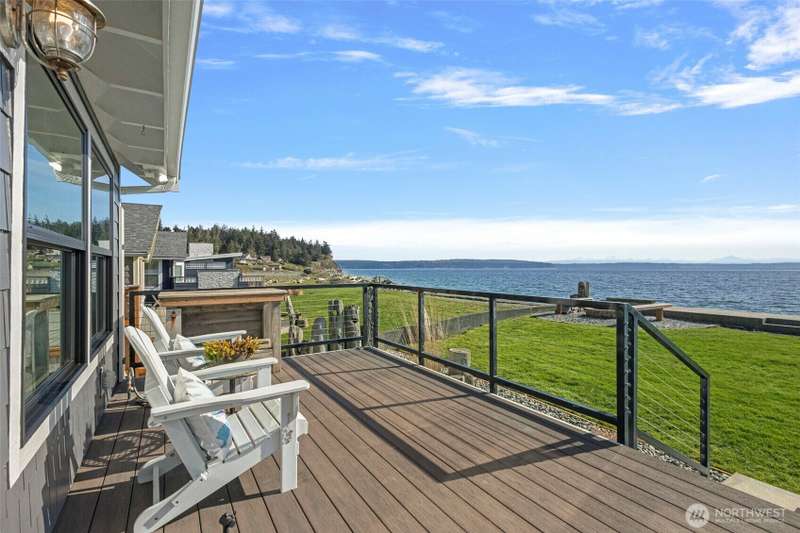 Welcome to your Whidbey waterfront retreat, where laid-back luxury meets natural beauty. Newly remodeled offering sweeping views of the Cascades and iconic Mt. Rainier. Across from the shops, trails and vistas of Greenbank Farm. Designed for comfort with generator, net-zero solar, wide-plank floors, custom cabinetry & open-concept living that seamlessly blends indoor/outdoor living. Large picture windows and view deck invite you to soak in the sunrise w/your morning coffee or enjoy golden hour over the water. Private tidelands, moorage, oyster beds and direct access to some of the island’s best crabbing, make this a paradise for seafood & outdoor enthusiasts. Grand detached shop provides space for your boat, RV, car collection & bonus room.