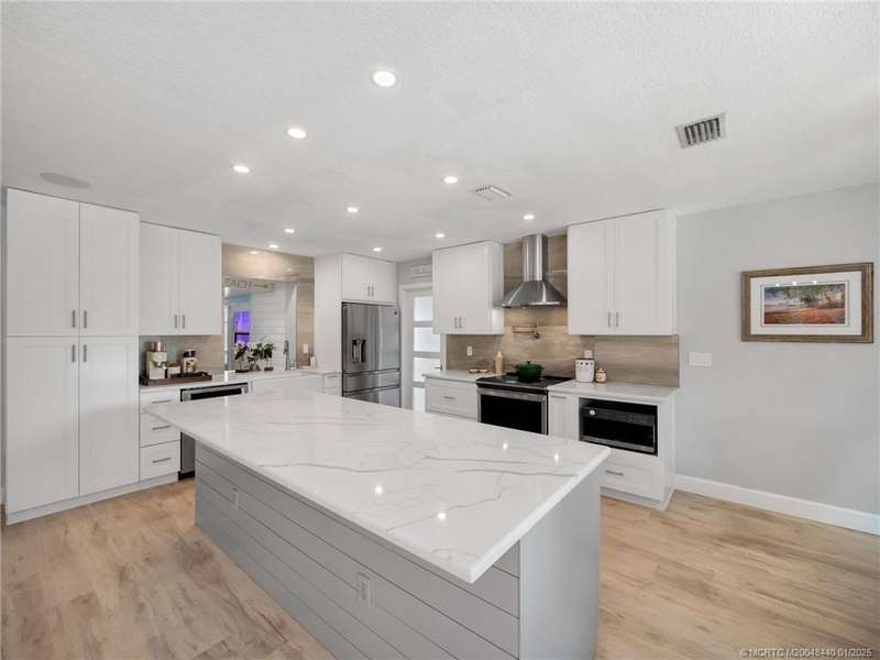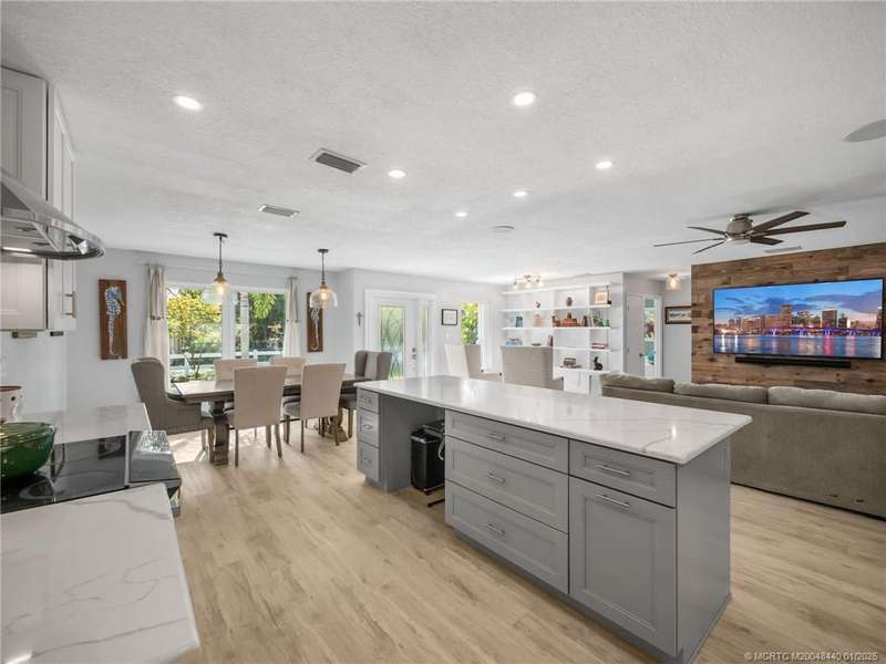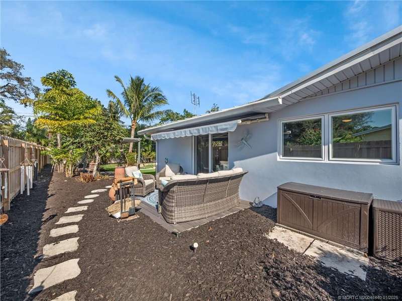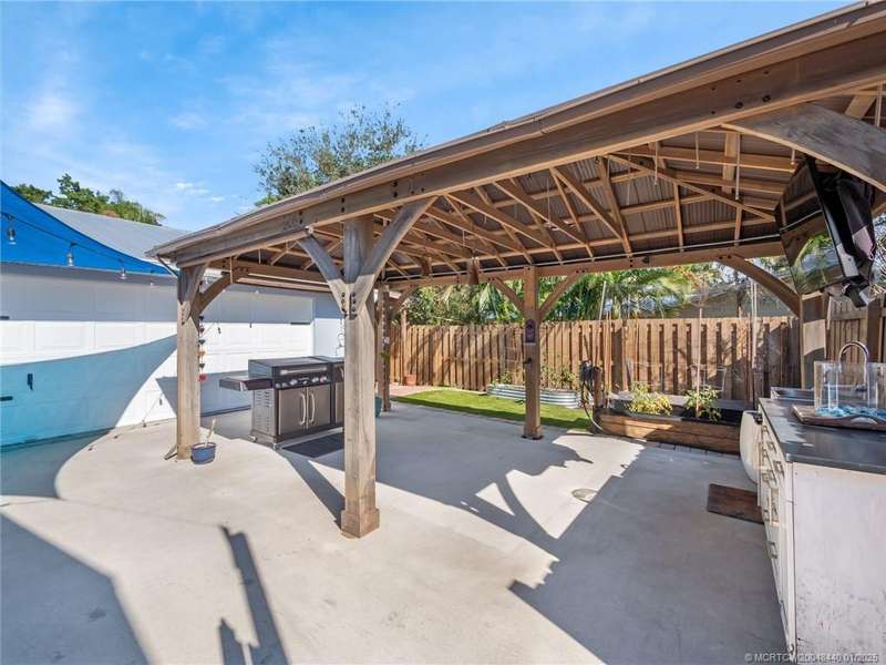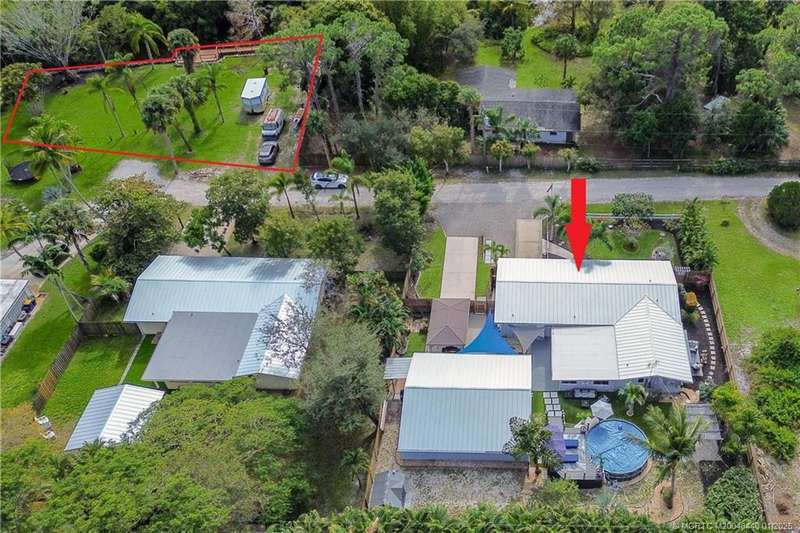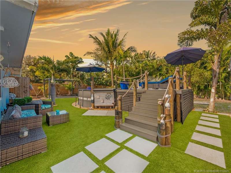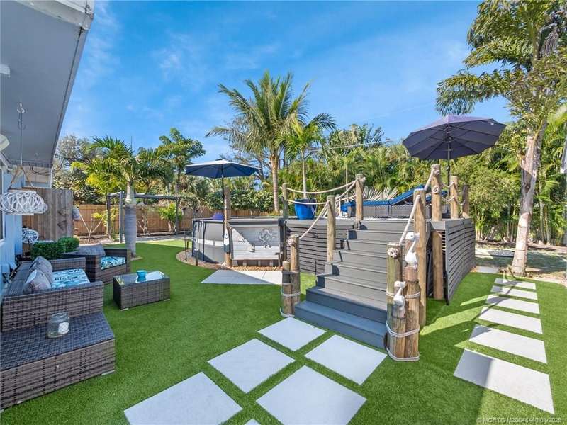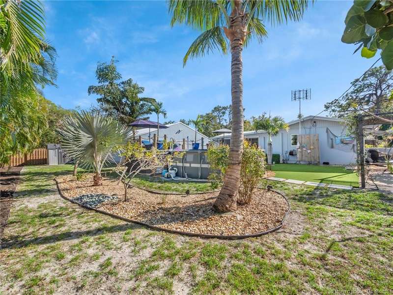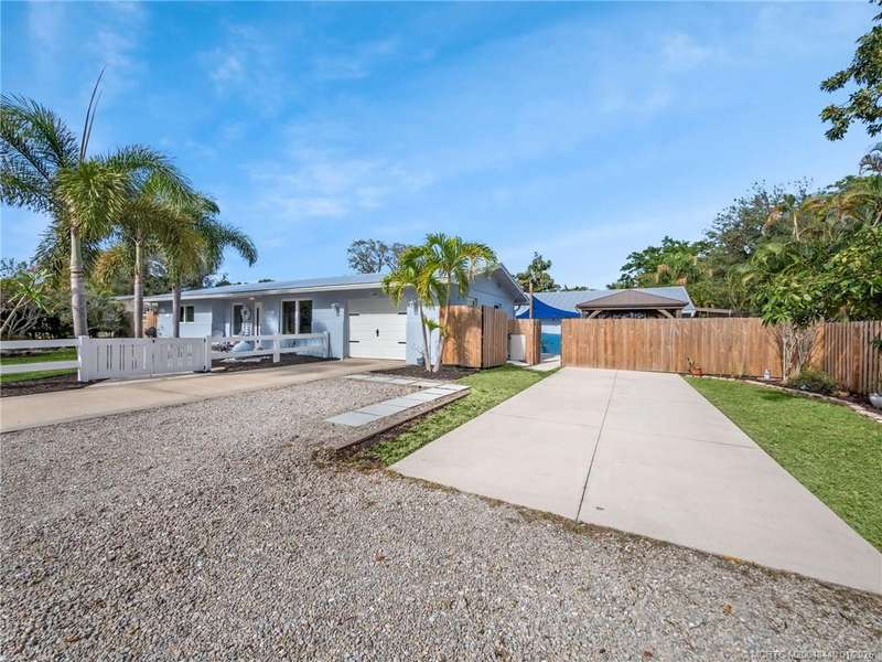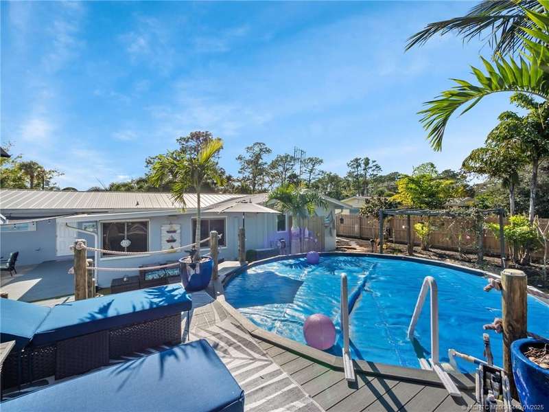 Life in Harmony in Palm City! Boundless living in this 3 bed/2 bath main home AND 900sf multi-use, structure, AND waterfront access! Located within striking distance of the new Palm City downtown area. Completely remodeled kitchen, with soft-close drawers/cabinets, farmhouse sink, upscale appliances and fixtures. Impact windows, sliders, & front door. 2021 metal roof & full gutters, AC with 2022 UV filter, 2018 new ductwork. Remodeled baths, luxury vinyl flooring, smart home LED recessed lighting, and fully integrated Sonos whole home system. More, find a 950sf, air conditioned, stand-alone flex building - perfect for multiple uses, including home office, workshop, garage! The backyard is a true oasis, with Yardistry Gazebo & BRAND NEW above-ground pool with custom deck surrounded by native Florida landscaping. 40 ft RV/Boat Pad with electric. The property has access to a day dock leading directly to the St. Lucie River, allowing tie-up, fishing, & launch.