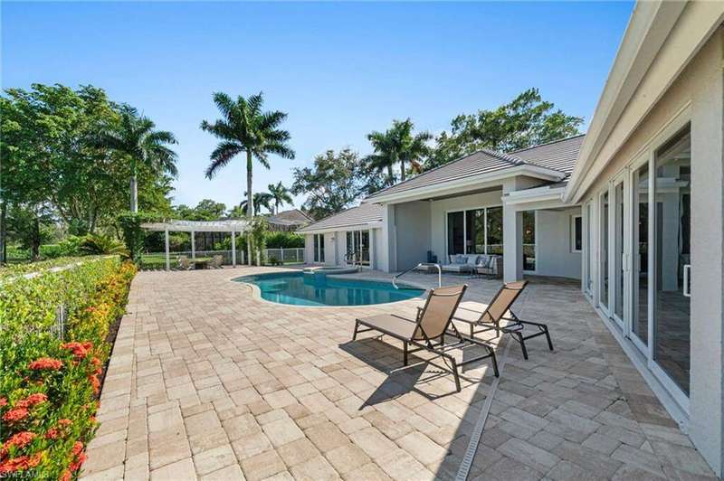 NO WAITLIST FOR GOLF OR SOCIAL MEMBERSHIP! Beautifully renovated custom estate home on a highly desirable street in exclusive Quail Creek Estates! This stunning single-level home sits on over an acre on a quiet cul-de-sac street. Enjoy unmatched privacy and gorgeous golf course (overlooking the 9th hole of the Quail course) and lake views from over 2,500 sq. ft. of fenced outdoor living space featuring a gas heated resort-style pool, spa, and pergola. Renovated with well- selected upgrades, this 5-bedroom+den, 5 full bath smart home blends comfort, style, and functionality. Highlights include wide plank European Oak hardwood floors throughout the main living area, custom woodwork, a wood-burning fireplace, and a gourmet kitchen with Thermador appliances, a walk in pantry and tons of cabinet storage. The oversized living, family, and primary bedroom offer exceptional space for entertaining and everyday living. Four additional guest bedrooms and a separate den/flex space provide room for everyone to spread out. Additional features: 3-car garage, impact windows and doors (2014), a 500 gallon buried propane gas tank, two new hot water heaters (2024 and 2025), a well for irrigation (saving you money on your water bill) and low HOA fees. The roof is from 2014. Quail Creek is a gated community conveniently located to shopping and dining and access to I-75. Located in popular North Naples, While membership to Quail Creek Country Club, a resort style country club, is not required, the majority of residents join the club. Optional membership opportunities include social and golf memberships. There is currently NO WAIT list for golf or social memberships. Golf members enjoy two championship courses masterfully designed by the legendary Arthur Hills. They have an active tennis, bocce and pickleball program and they are building 3 new padel courts. The club also has a state of the art fitness center, a full service spa, tennis/golf/pickle pro shop and more. The club also offers a popular junior golf performance academy and tennis program for the kids. Enjoy luxury living and resort amenities in one of Naples' most prestigious 36-hole golf communities - Quail Creek Estates.