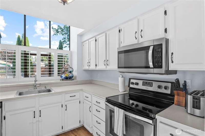 Welcome to this light-filled corner unit, thoughtfully updated for modern living. Step inside to find new carpet, durable LVP flooring, fresh interior paint, and upgraded closet doors. The primary suite opens to a private balcony, while the backyard offers a concrete patio, storage shed, and shared green space—ideal for relaxing or entertaining. With abundant natural light, two dedicated parking spaces, and a location just moments from shopping, dining, and everyday conveniences, this home is as practical as it is inviting. Recent exterior improvements include new siding and paint (2023) along with a roof replacement (2020). A true turnkey opportunity in a prime location.