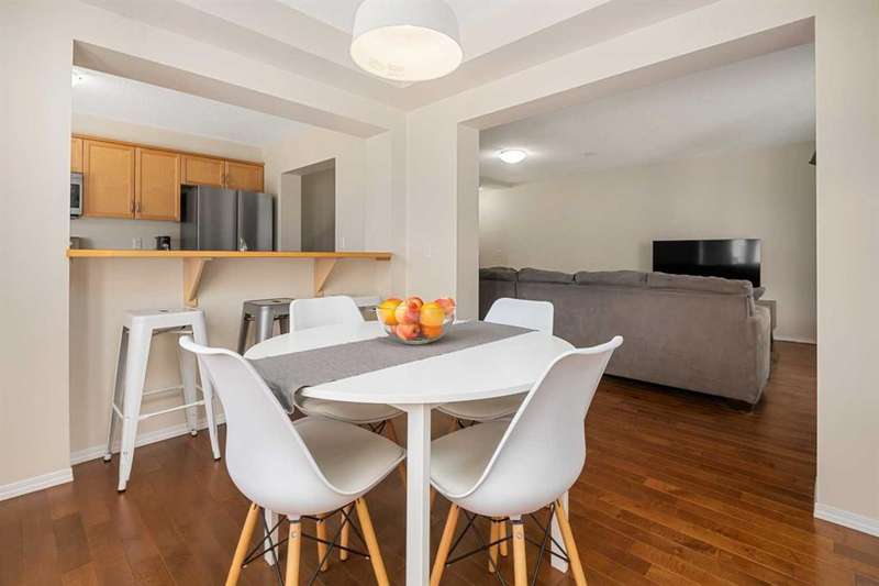 Discover this stylish 3-bedroom, 1.5-bathroom END-UNIT townhome in the desirable community of Windsong. Designed for modern living, this 3-storey home offers the perfect mix of space, comfort, and convenience—with the rare bonus of NO CONDO FEES! Step inside and be greeted by an abundance of natural light streaming through extra windows that only an end unit can provide. The entry level features a single attached garage, laundry, utility, and storage—keeping the rest of your home uncluttered and organized. Upstairs, the open-concept main living area is warm and inviting. The updated kitchen boasts fresh cabinetry, contemporary style, and a layout that makes both everyday living and entertaining a breeze. Whether you’re hosting family dinners or cozying up for a quiet night, this home adapts beautifully to your lifestyle. The upper level offers three well-appointed bedrooms, perfect for families, guests, or a home office. A private balcony and thoughtful design touches throughout make this property a standout choice. With schools, parks, pathways, and shopping nearby, Windsong is a family-friendly community that has it all. And with no condo fees, this is a smart investment for first-time buyers, growing families, or those looking to downsize without compromise. ? Don’t wait—homes like this in Windsong move quickly. Book your showing today!