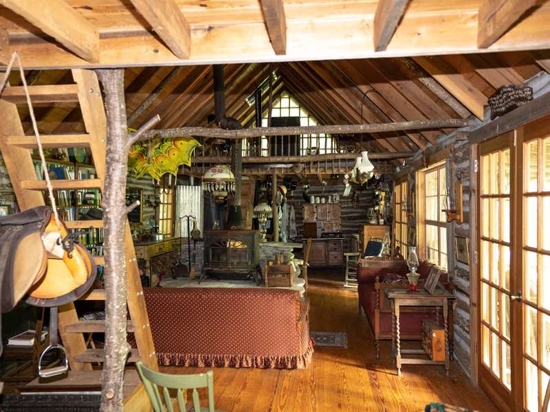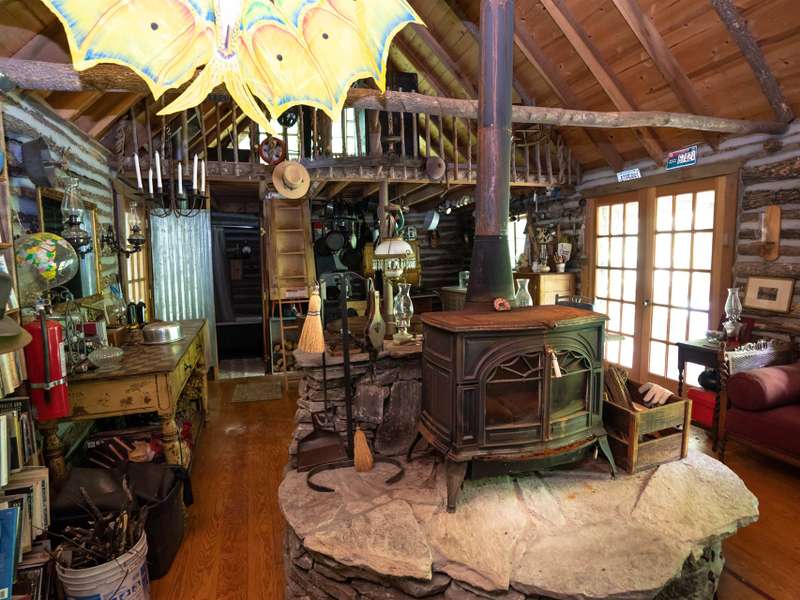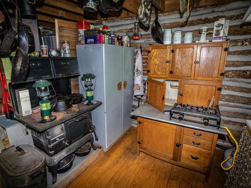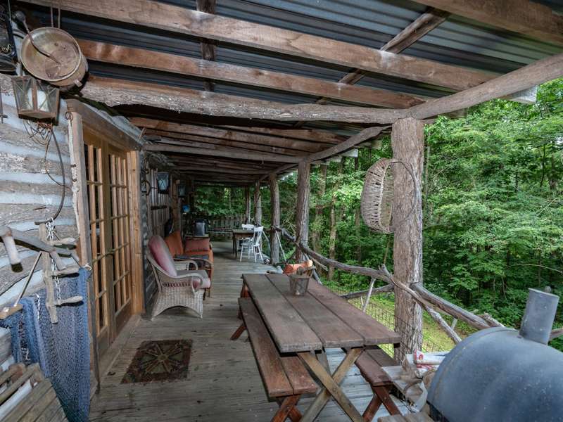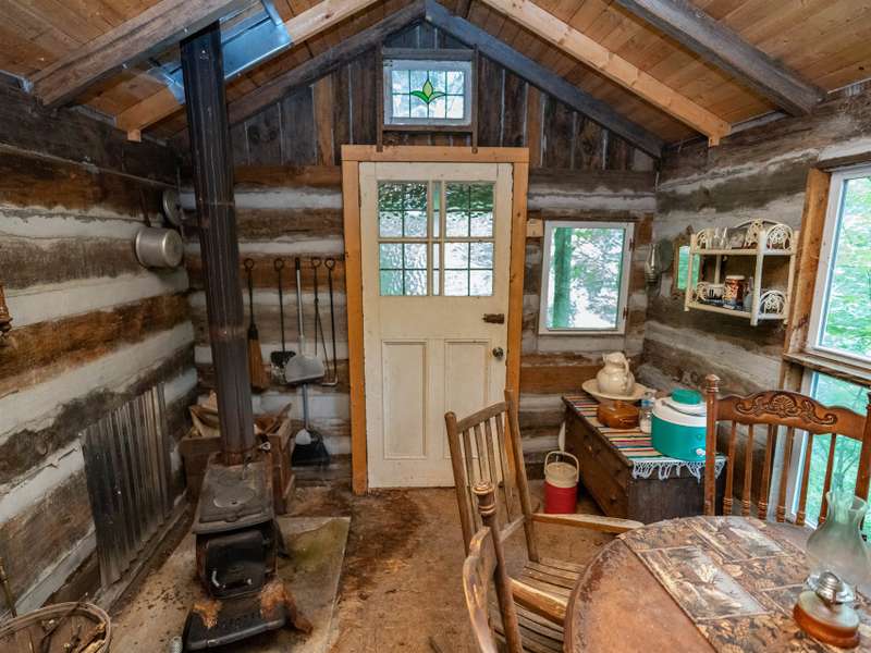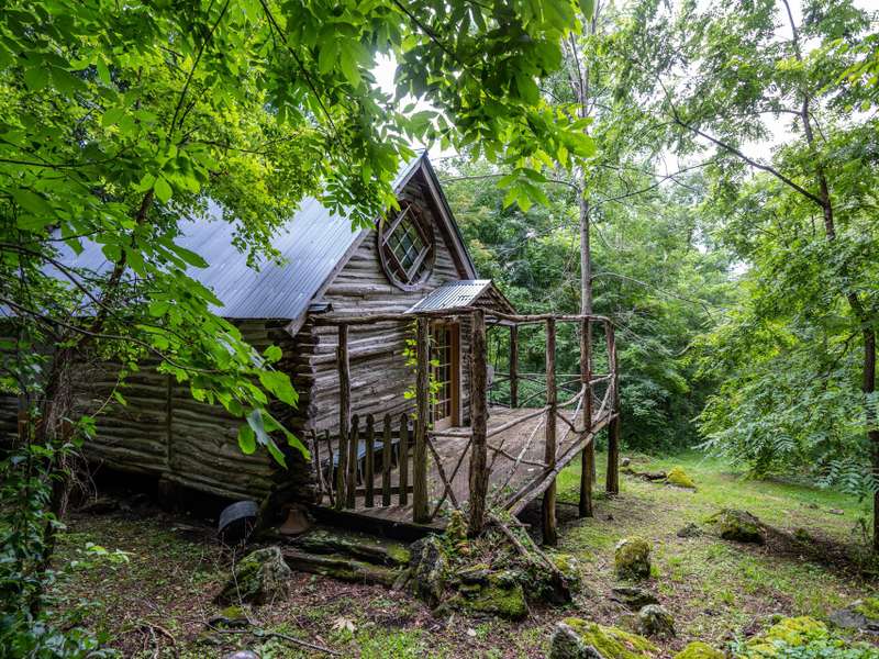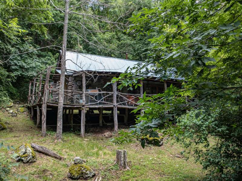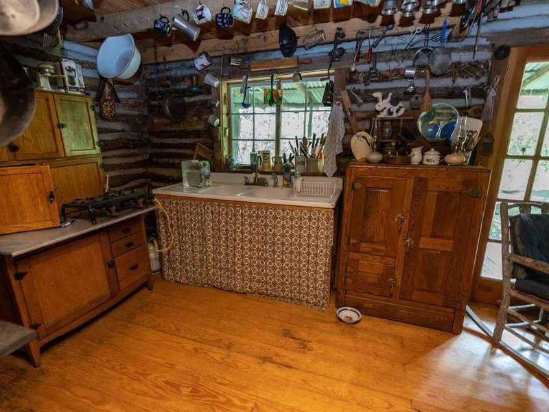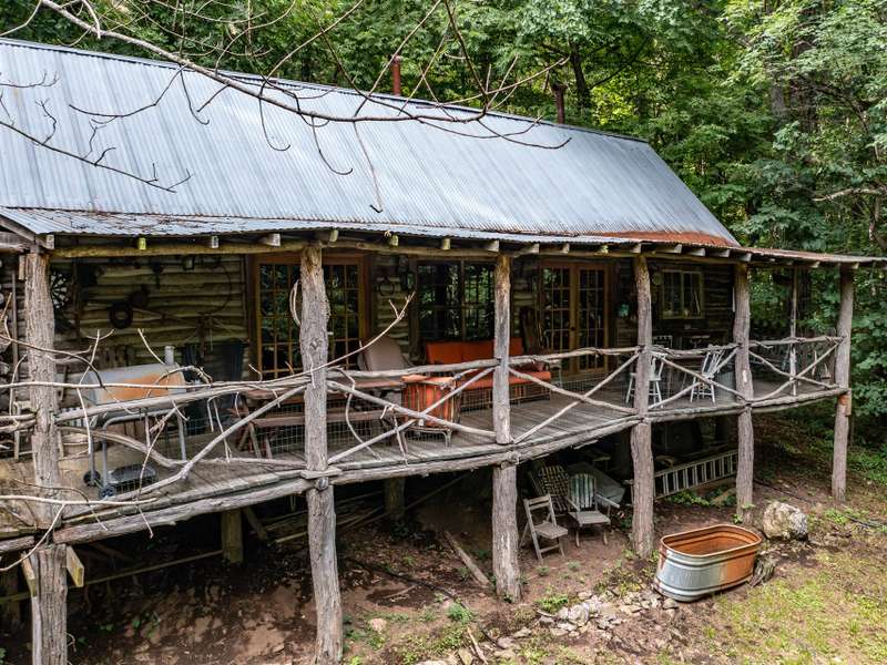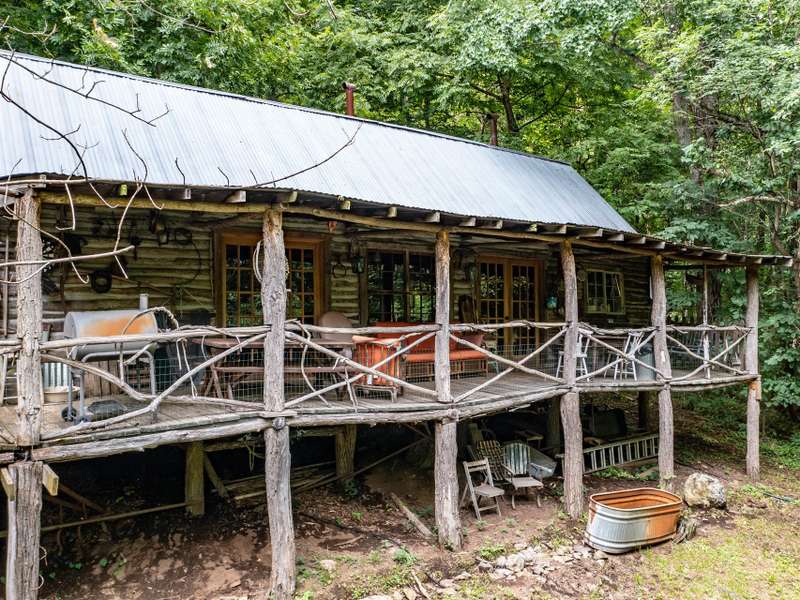 Truly unique off grid living! Rustic log cabin with two additional small guest cabins. Gravity fed springwater from 3 springs and heated by gas heater. No electricity. Outhouse with bath and shower with benchand heated with tankless gas water heater. Unique features include 1850's kerosene lamps, wrap around deckand dwellings are built with logs and stone from the property.