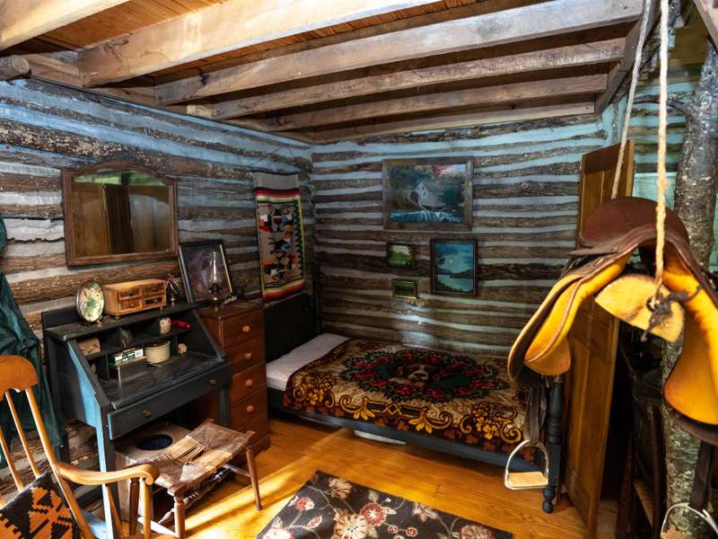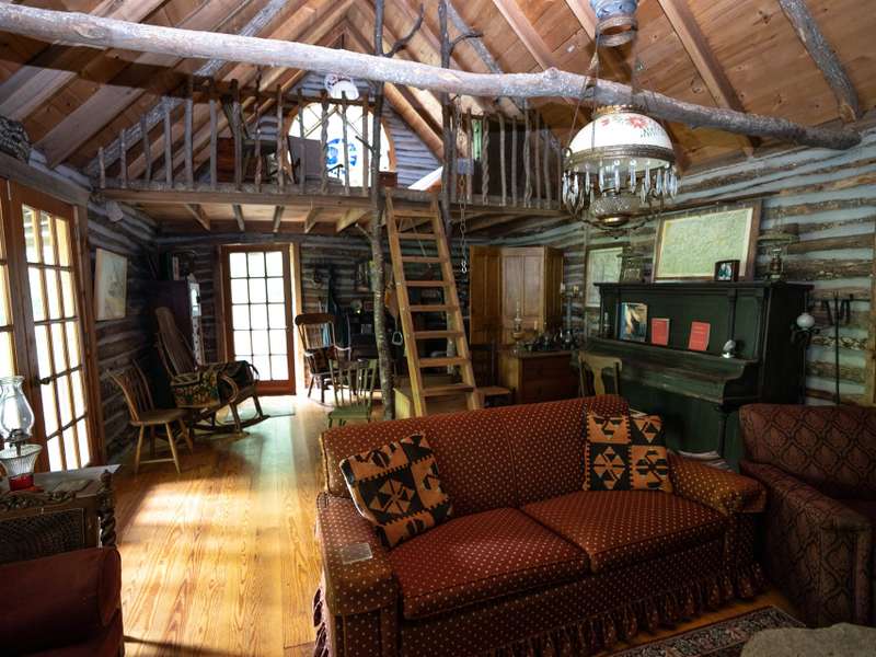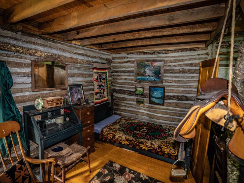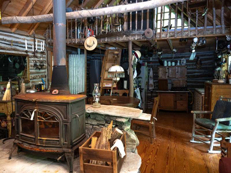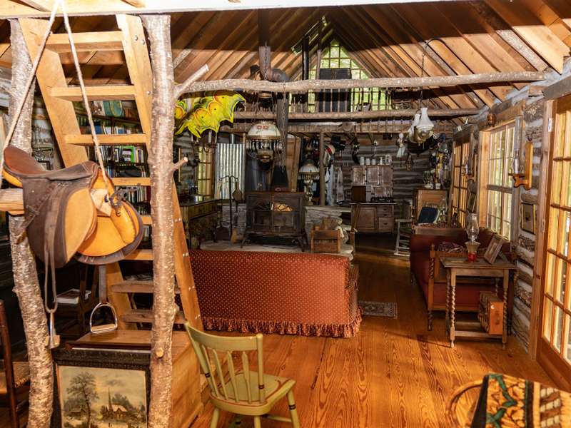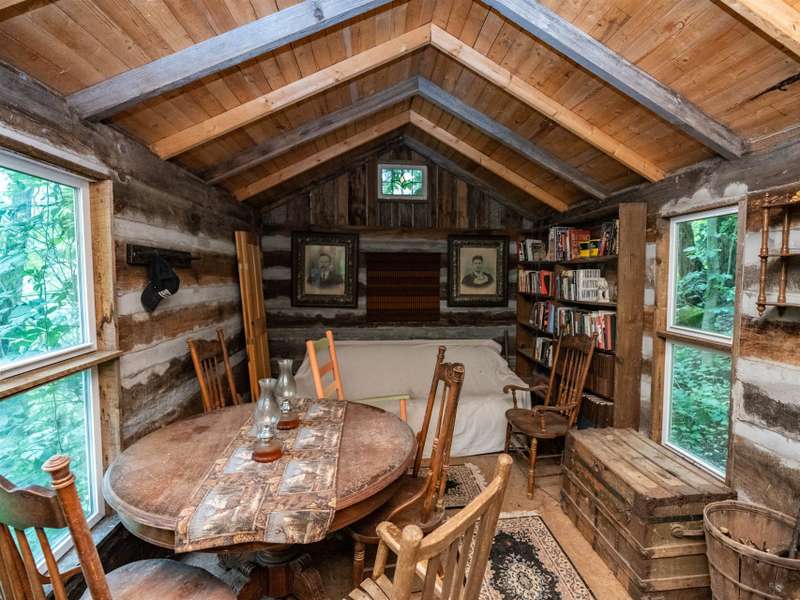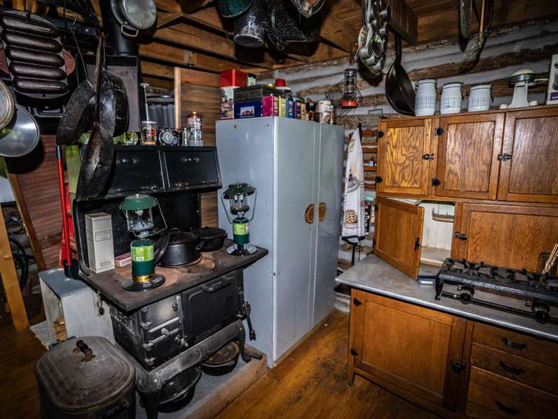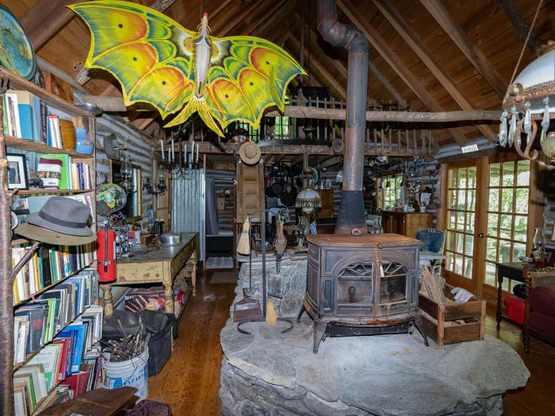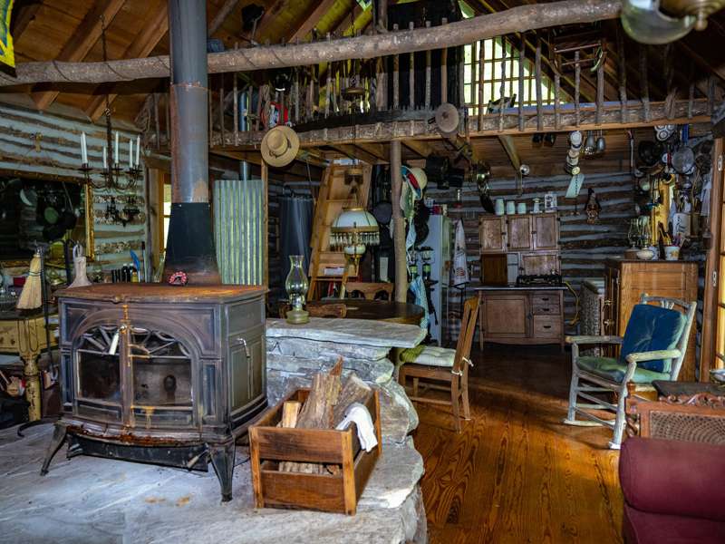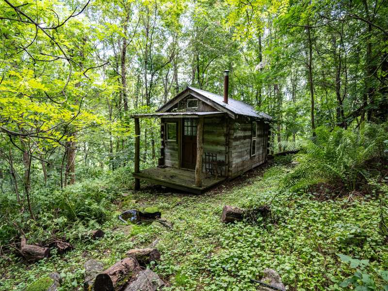 Truly unique off grid living! Rustic log cabin with two additional small guest cabins. Gravity fed springwater from 3 springs and heated by gas heater. No electricity. Outhouse with bath and shower with benchand heated with tankless gas water heater. Unique features include 1850's kerosene lamps, wrap around deckand dwellings are built with logs and stone from the property.