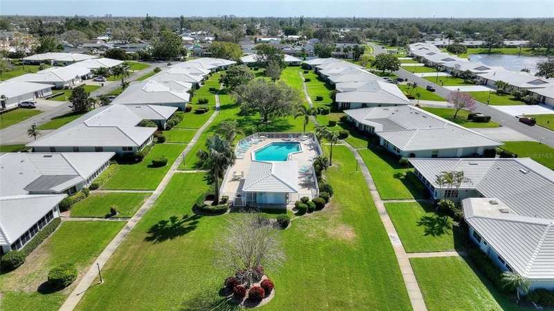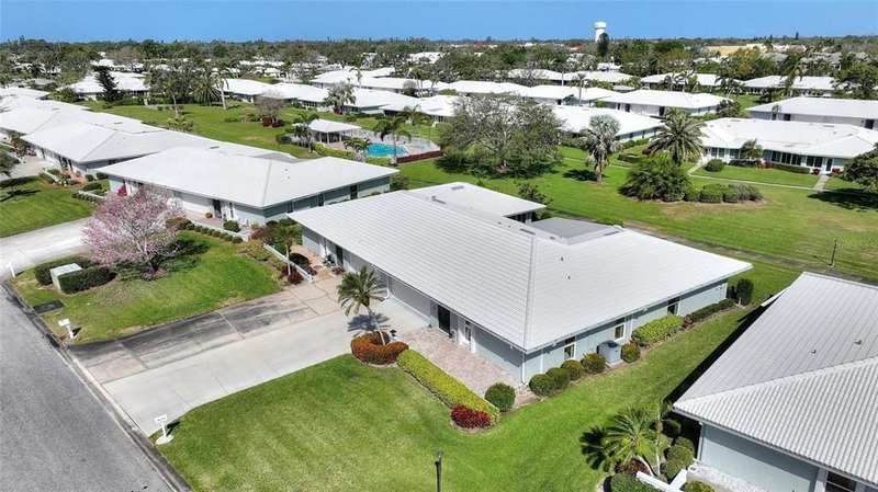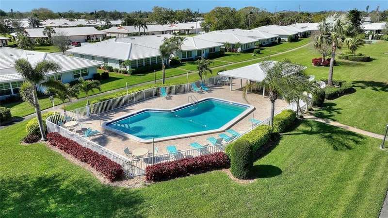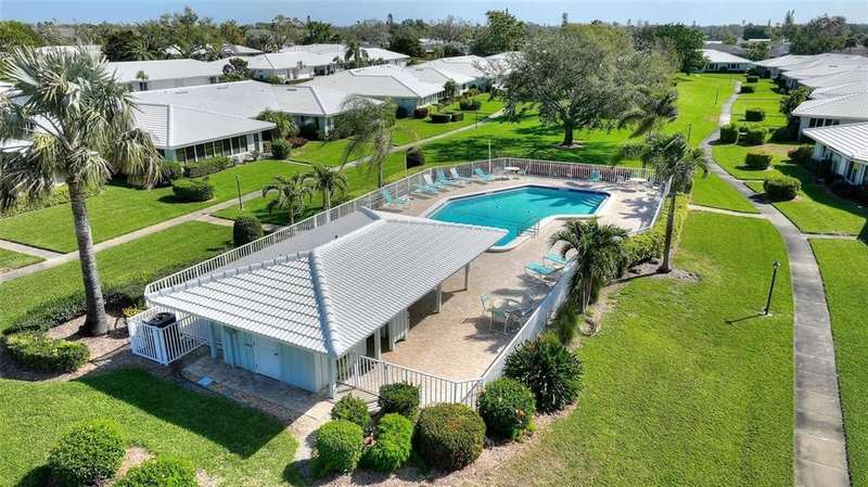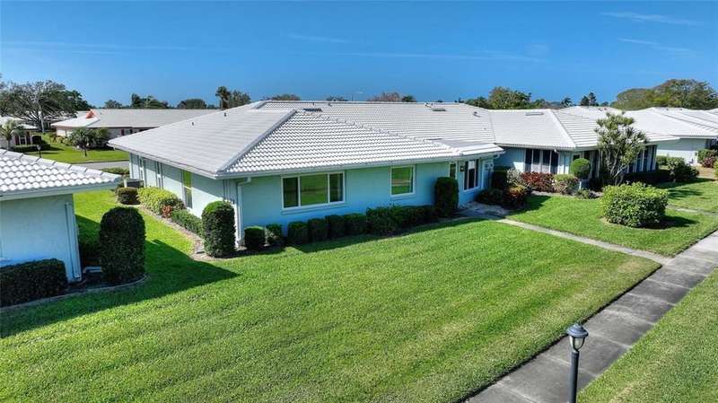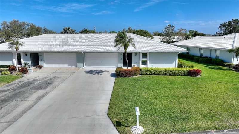 Spacious & Elegant Villa in Highly Sought-After Village Green - Minutes from Anna Maria Island!Don't miss this rare opportunity to own a beautifully updated and spacious 2-bedroom, 2-bathroom villa in the desirable 55+ community of Village Green in West Bradenton. Offering one of the largest floor plans in the neighborhood, this home provides the perfect blend of comfort, convenience, and coastal charm.Step through the charming gated front entry into an inviting interior filled with natural light from large windows throughout. The updated kitchen and bathrooms feature granite countertops, adding a touch of sophistication. The oversized laundry room provides ample storage, while the extra-long driveway ensures plenty of parking for guests.A thoughtfully designed office area boasts a built-in desk and custom cabinetry, creating a perfect space for organization. The den offers abundant shelving for your personal library and additional cabinets that could easily be transformed into a bar or entertainment area-ideal for hosting friends and family.Resort-Style Living in an Unbeatable LocationSituated just steps from the community pool, this villa offers effortless access to the beautifully maintained common areas and lush landscaping that define Village Green. Each section of this vibrant community enjoys its own private pool and cabana, providing a peaceful retreat right outside your door.Village Green is known as one of West Bradenton's most prestigious and well-maintained 55+ communities. The location is truly unbeatable-just minutes from the stunning Gulf beaches of Anna Maria Island, where you can soak up the sun, enjoy waterfront dining, or explore the charming boutiques.Medical facilities, including Blake Hospital, are conveniently close, along with shopping centers, restaurants, parks, and cultural attractions. Outdoor enthusiasts will love being just minutes from three nature preserves and a national park, perfect for walking, biking, kayaking, and birdwatching.Move-In Ready with Peace of MindNew Roof (2016)New Water Heater (2019)Meticulously Maintained CommunityEnjoy beautifully landscaped surroundings, perfect for morning and evening strolls. Whether you're looking for an active lifestyle or a peaceful retreat, this villa offers it all.This is your chance to live in paradise-schedule your private showing today and make this exceptional home yours!