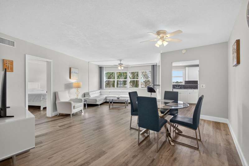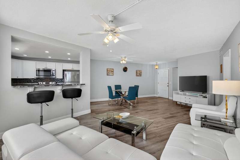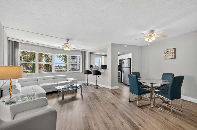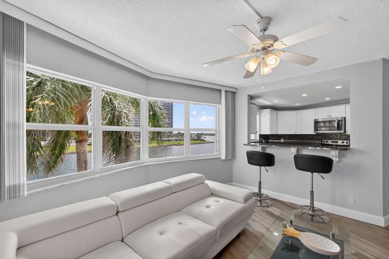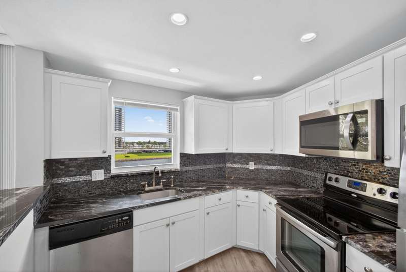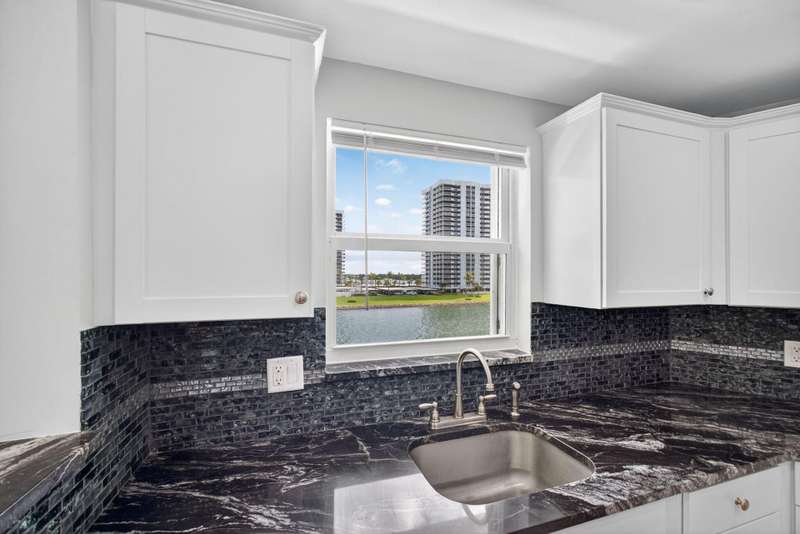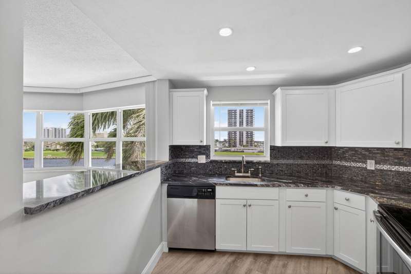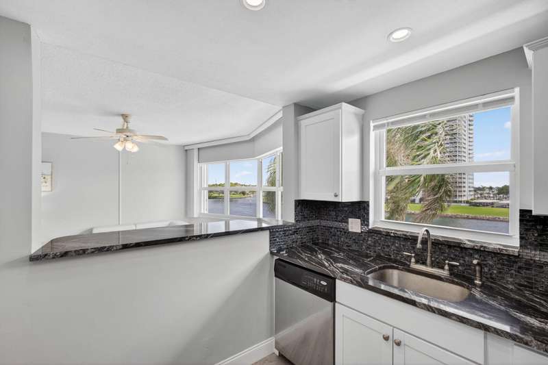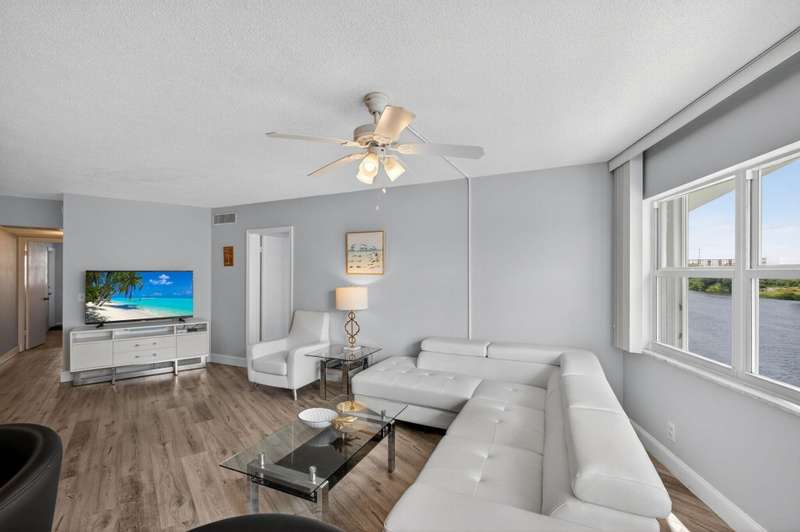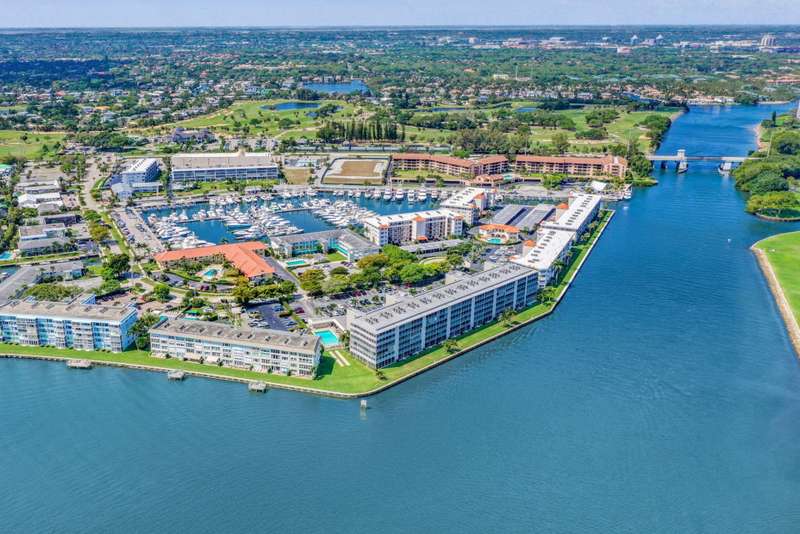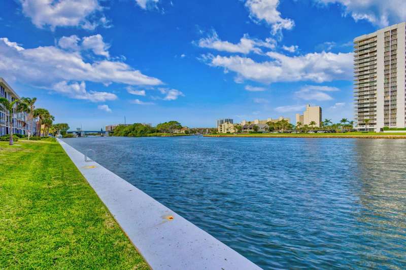Ports OCall is a 55+ community on the intracoastal in North Palm Beach. The building has been recently painted lovely white with navy blue accents. This unit offers intracoastal views from the kitchen, master bedroom and living room. Master bedroom features walk in closet and on suite bathroom. Kitchen renovated and Hurricane impact windows installed in 2019. Second bedroom offers a walk in closet and private entry door. Impeccably maintained. Furniture is offered so you can bring your suitcase! All concrete studies are complete!