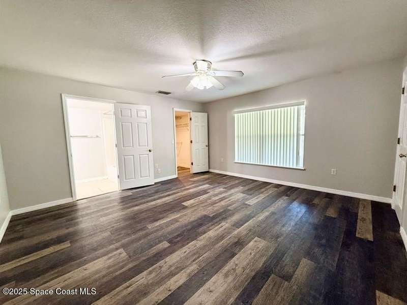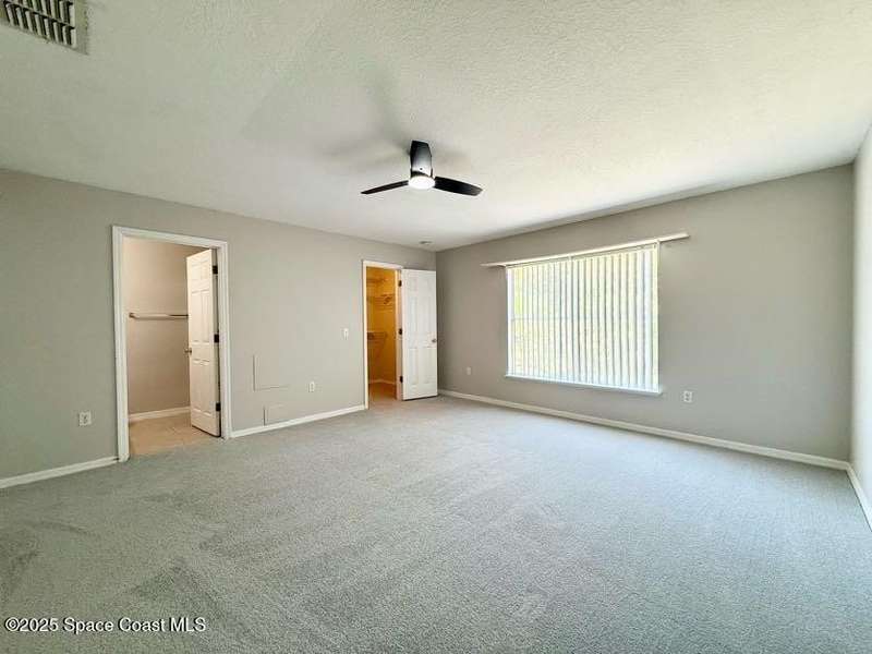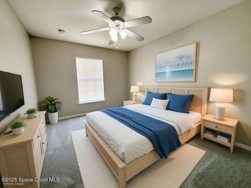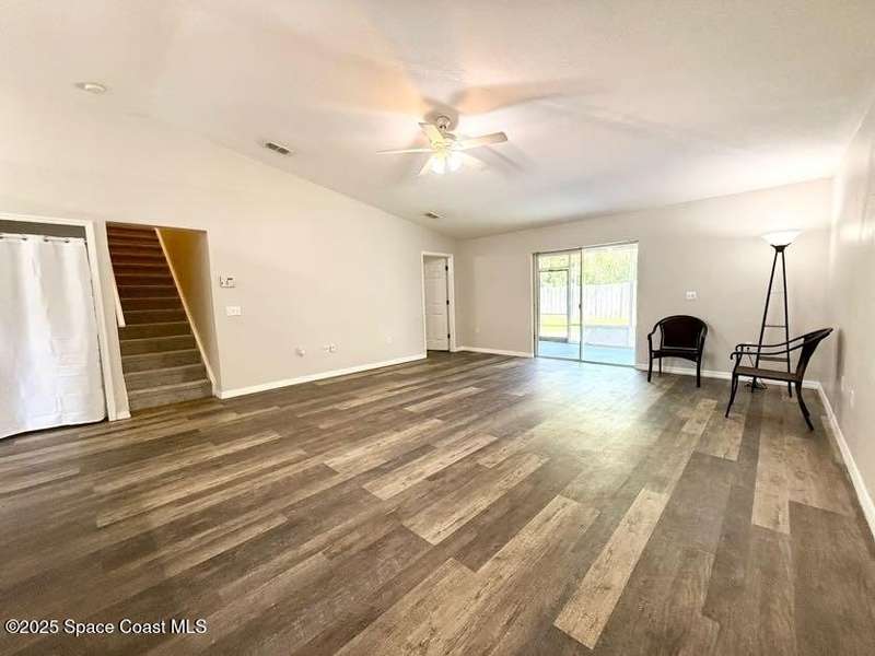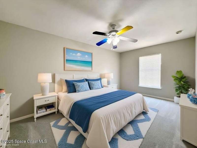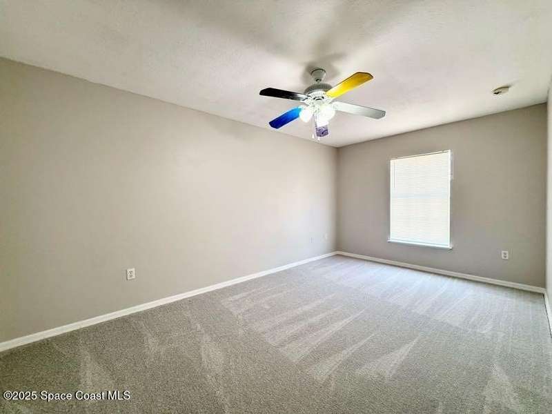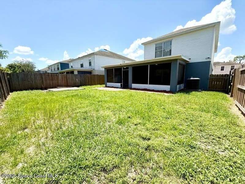 PRICED TO SELL at $323,400! Located in the Palmwood community, this 4-bedroom, 3-bath, 2-story home sits toward the end of the neighborhood by the cul-de-sac with only 59 homes total in the community. Enjoy the rare convenience of two Primary Suites with one upstairs and one downstairs. Freshly painted inside and out, with brand-new carpet upstairs, stylish LVP downstairs, and a 2023 roof, 2017 AC and WH, Taexx built-in pest control, custom hurricane covers with mounts, and a security system provide peace of mind. The extended paver driveway leads to a 2-car garage. Relax or entertain on the huge screened porch overlooking a private fenced backyard with no rear neighbors. Just minutes to I-95, beaches, shopping, dining, and all that Melbourne has to offer. Homes with these features, location and price are rare. Schedule your showing today!