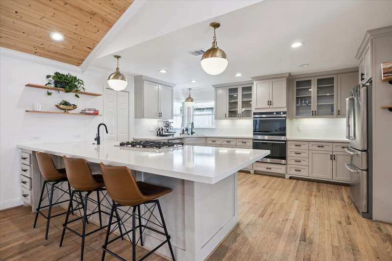 Welcome to this stunningly re-imagined home in the heart of Timbergrove’s most popular section, situated in an idyllic community! Thoughtfully expanded, this home offers the perfect blend of modern style & timeless comfort. Open-concept layout w/ abundant natural light highlights the chef’s kitchen w/ double sinks & ovens, walk-in pantry & ample storage & counter space. The spacious living area & flexible bedroom space offer endless possibilities. Primary retreat features spa-like bath w/ storage & the 4 addtl room can be used for bedrooms, studio, flex or office space. Outdoor space offers room to relax or entertain & features outdoor kitchen w/ stone pizza oven. Low maintenance beautiful landscaping. Major renovations in 2022 include: plumbing, electrical, HVAC, roof, kitchen & roofline expansion. All info per Seller.
