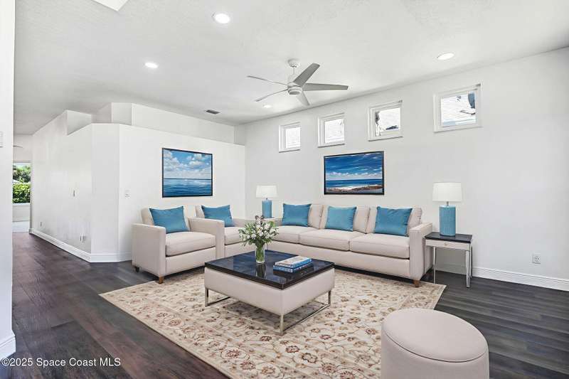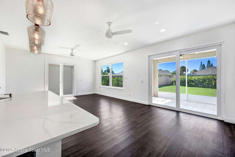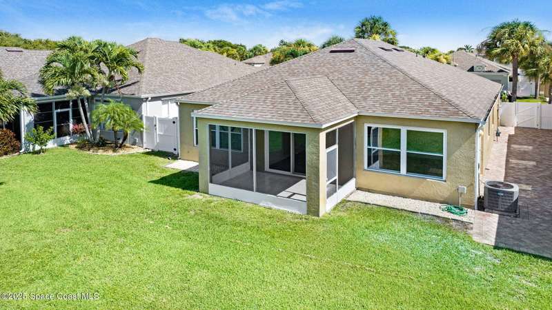 Welcome to your own slice of paradise in the beachside gated community of desirable Oceanside Village! This charming home is walking distance to the pristine Indialantic beach, centrally located, offers 3 bedrooms, 2 bathrooms, 10-foot ceilings, and open floor plan. Step inside and be greeted by an abundance of natural light streaming through the many hurricane-impact windows and two sets of sliders. This beautifully updated home boasts new interior paint throughout, an updated kitchen with elegant quartz countertops, brand new appliances and kitchen island, perfect for modern living and entertaining. The split bedroom plan ensures privacy, making this home ideal for families. The home also features a lush backyard, paved courtyard, attached screened porch and 2 car garage with a paved driveway. This coastal community offers a large clubhouse, a resort-style pool, tennis and basketball courts, and a playground. Excellent A-rated schools! Don't miss this opportunity!