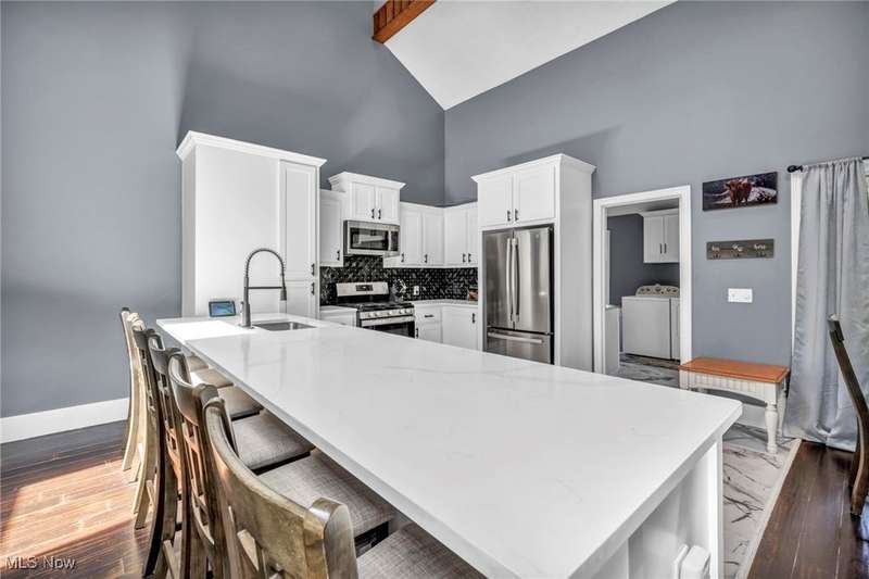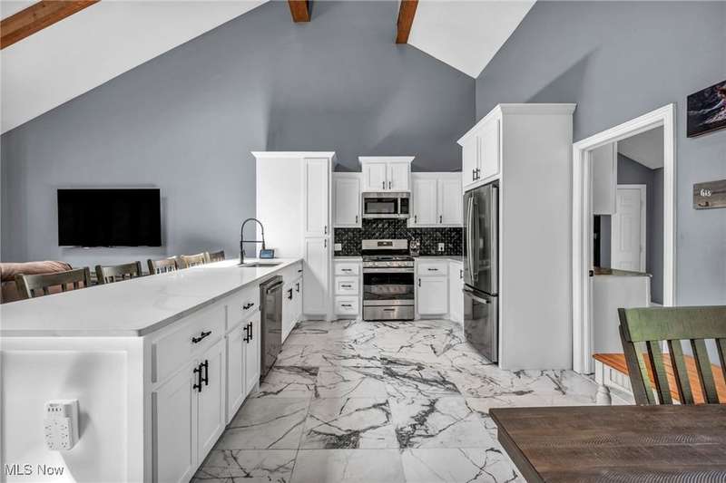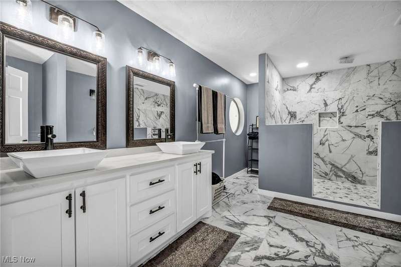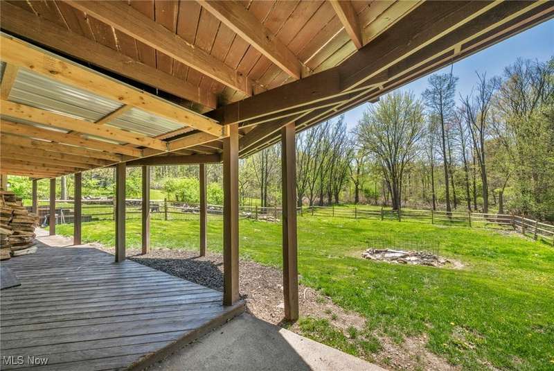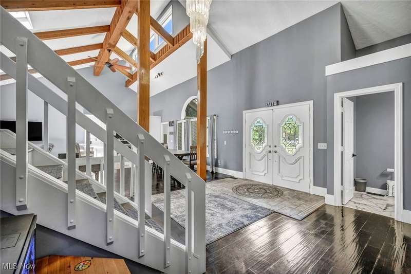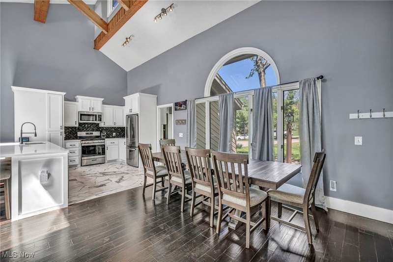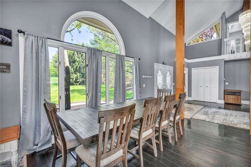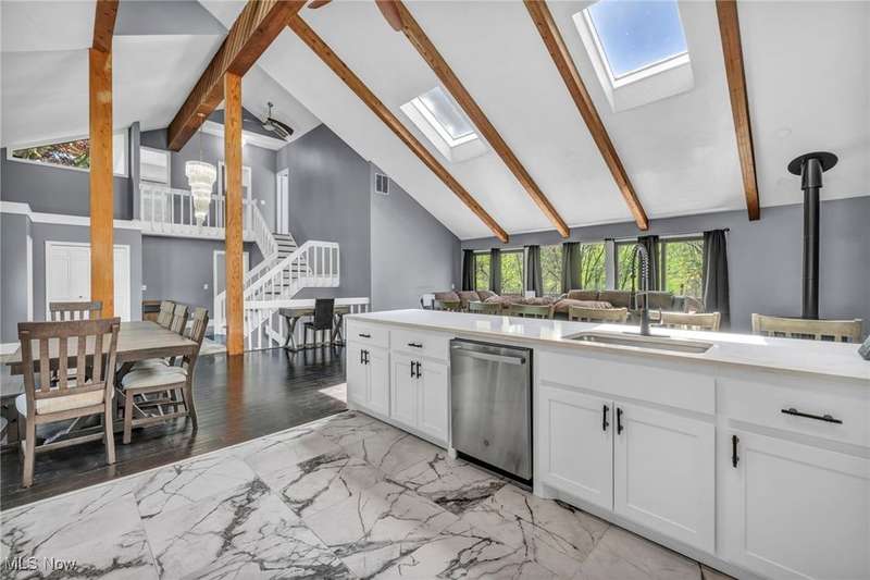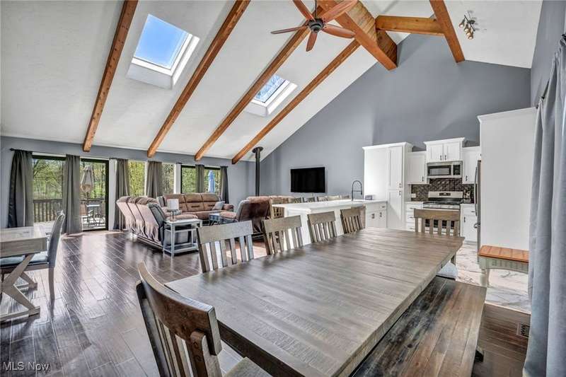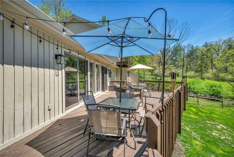 Stunning Rustic Hills Retreat in Highland School District. Welcome to this beautifully updated & spacious home located in the highly desirable Rustic Hills community of Montville Township?nestled within the top-rated Highland School District. Situated on a private 1-acre lot, this 4-bedroom, 3.5-baths home blends rustic charm with modern luxury across an open and thoughtfully designed floor plan. As you step through the front door, you're welcomed by a dramatic two-story vaulted ceiling adorned with natural wood beams, creating a warm, lodge-like ambiance. The expansive great room features a cozy wood-burning stove and skylights that flood the space with natural light. The open-concept layout flows effortlessly into the dining area and a completely remodeled kitchen (23) boasting custom cabinetry, quartz countertops, new stainless-steel appliances, and a massive island with seating for up to eight?perfect for entertaining. The generously sized master suite is a true retreat, complete with private deck access, dual quartz vanities, and a luxurious walk-in shower. Upstairs, you'll find two more spacious bedrooms and a fully updated bathroom (2023), with one of the rooms offering its own private balcony. The finished lower level adds incredible flexibility with an additional bedroom/living space, a sleek full bathroom, and a media or bonus room ideal for movie nights or a home office. A two-car front-facing garage is complemented by a unique rear bonus garage currently used as a hot tub room, complete with wall-mounted TVs and a dog washing station?making this home as practical as it is luxurious. Outside, enjoy the mix of cleared and wooded land, enclosed with a brand-new fence (24), offering privacy and space for pets, play, or gardening. Conveniently located just minutes from shopping, restaurants, and quick access to I-71 and Route 18, this home truly has it all?space, style, comfort, and location. Don't miss your chance to own this exceptional Rustic Hills home!