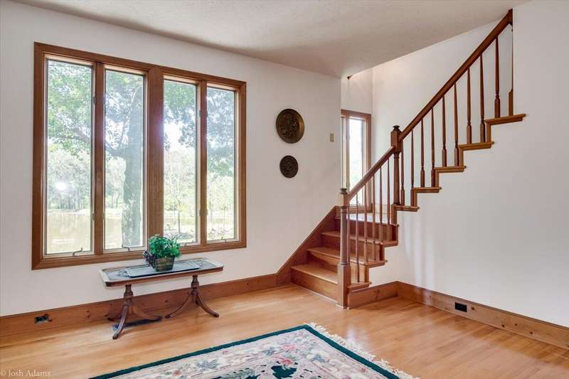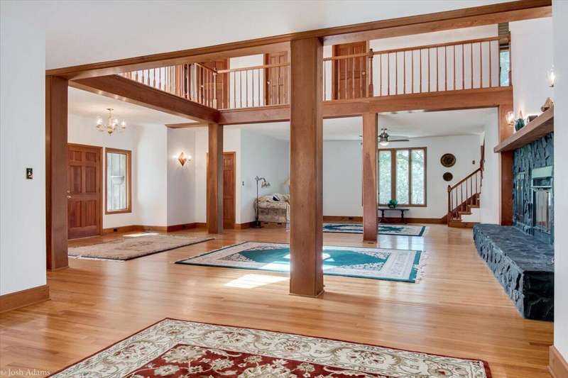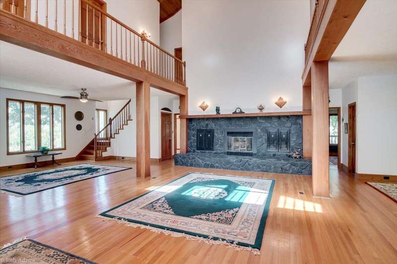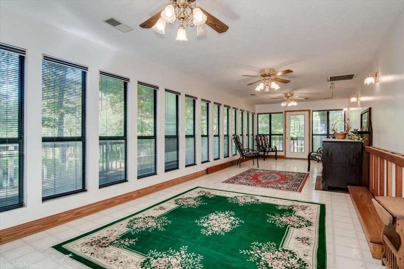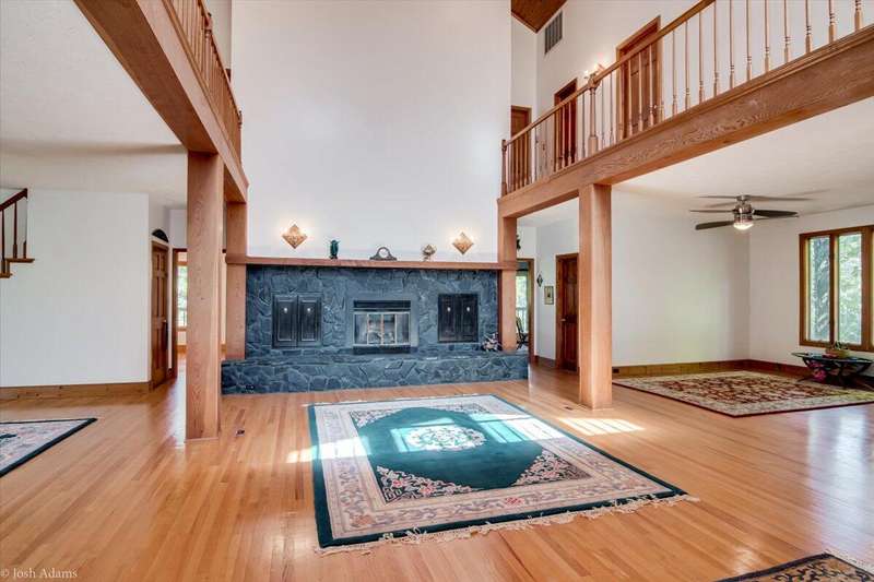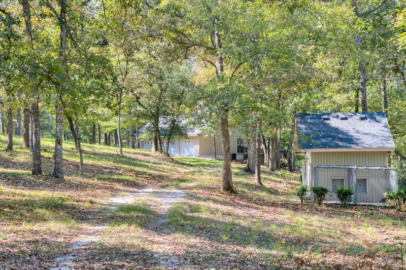 Hatchaway Bridge Manor's unassuming farmgate opens onto a pebble lane that meanders among hardwoods & hollies and winds thru a cathedral of dogwoods toward a glimpse of the glistening creek and the small duck pond with its island sanctuary revealing where the wood ducks dabble, the Canadian geese nest and deer frolic unveiling the cypress clad reflection of the Manor's natural life of peaceful contentment on ±16 acres. The Manor's entrance into the Great room (46'x 30') will awe and embrace your guests. Is it: the golden oak tongue & grove pine ceiling towering above the atrium and the surrounding mezzanine supported by the 6 golden red-fir trimmed pillars stately bearing the balcony hallways to the 3 full baths & the 5 cathedral ceiling bedrooms, 2(13'x12'), 2(12'x12'), & Master Suite ((46'x12') with fireplace and outside balcony); or the black stone fireplace with cedar plank mantle upon a raised hearth resting on the golden oak hardwood floors that grace the main & upper floors; or the walls of windows displaying the seasonal kaleidoscope of nature & life? This Home is spacious, secluded, private & warmly inviting on ±16 acres surrounded by equine facilities & good neighbors. Main-Level: entrance Foyer (12'x5'), Great room (46'x 30'); from entrance to RT: Office/Study (16'x12'), guest closet, open staircase to Mezzanine, full bath & Country Kitchen (29'x12'); from entrance to LT: Library (16'x12'), open staircase to Mezzanine, open staircase to Lower level, Formal Dining room (16'x12'); Exterior Main floor Front concrete porch(57'x10'); Rear deck(46'x11') access from Dining room & Country Kitchen, stairs to ground. Lower-Level: interior entrance Great room open staircase to Lower level which has windows & doors on two walls walking out toward Manor's Pond & other toward Chavous Creek Tributary & Garage. The two walls with windows & doors provide natural light in the recreation/entertainment room & full bath (45'x36'); Laundry/Utility room (16'x12'), Tornado safe-space & Storage (16'x12'). Detached: Three Bay garage (38'x23') and Sunroom/Party room (38'x13') with deck (48'x10'). Kennel has 4 runs, electric & water. Property ''SOLD AS IS''.
