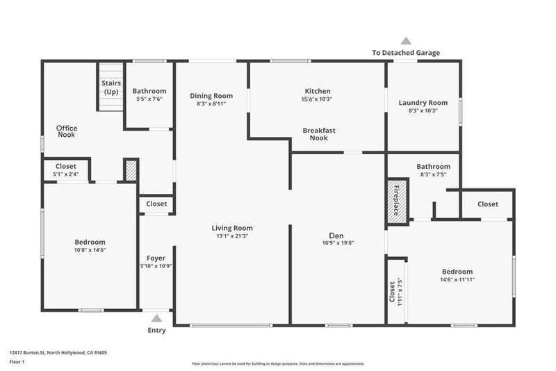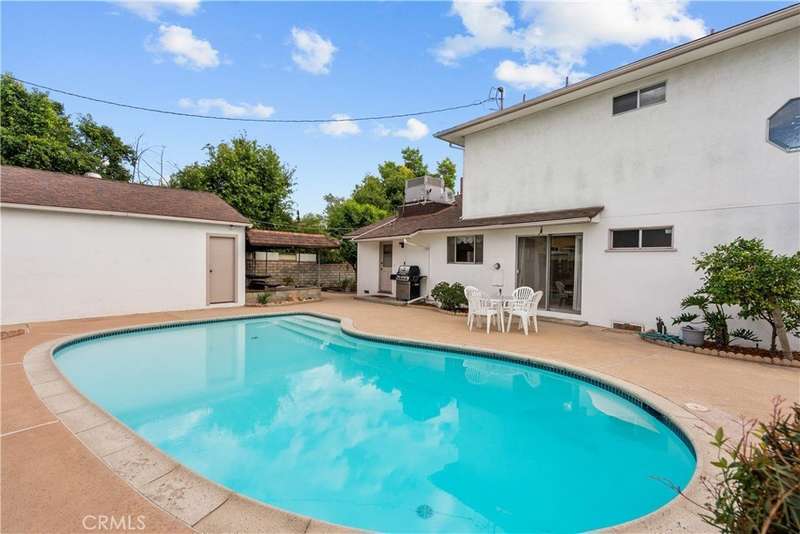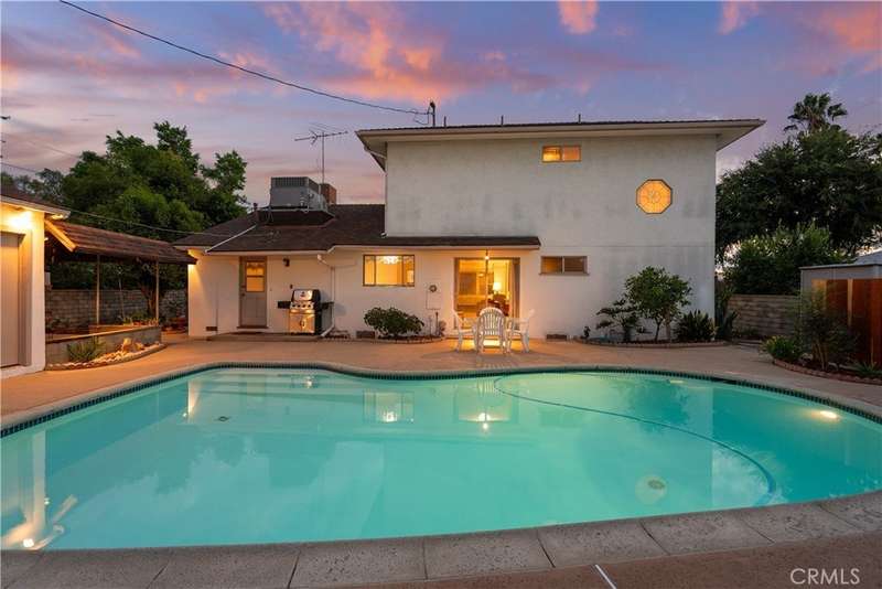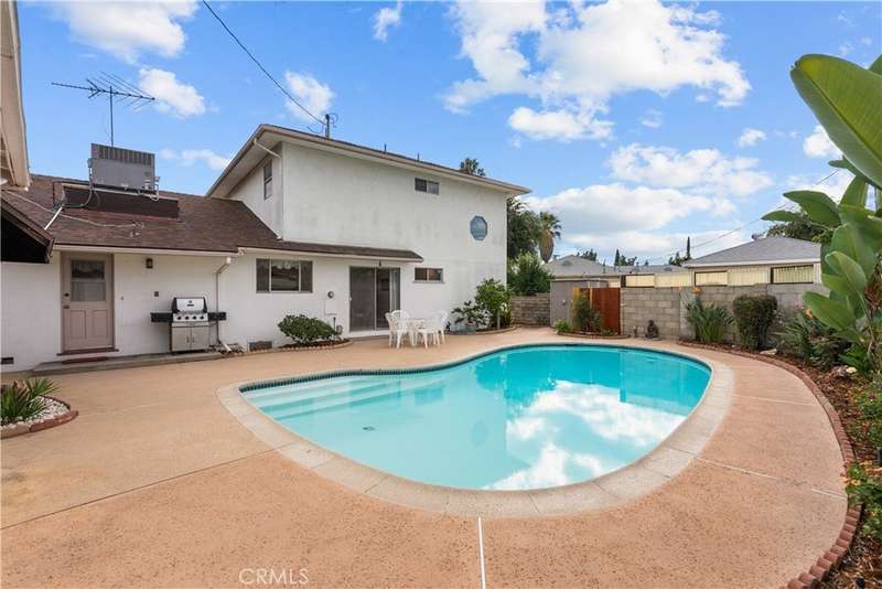 Welcome to this delightful mid-century residence, original family owned, proudly offered for the first time on the market. Located in a desirable North Hollywood neighborhood and surrounded by a welcoming community experiencing ongoing revitalization, this entertainer’s dream blends timeless character with thoughtful modern upgrades. Boasting three spacious bedrooms, three bathrooms, a den, and a sparkling swimming pool, this home is designed for comfort, function, and indoor-outdoor living. A inviting front porch sets the tone as you enter through the entry foyer into the home. The sun-drenched living room features expansive windows that fill the space with natural light—ideal for relaxing evenings or after-dinner conversation. The adjacent den, complete with a handsome wood-burning fireplace, offers the perfect cozy space to unwind with a book or enjoy movie night. At the heart of the home is a spacious cook’s kitchen featuring tile countertops, ample cabinetry, and a sunny breakfast nook. Equipped with an electric double oven/range, dishwasher, microwave, and refrigerator, this kitchen is ready for everyday meals or entertaining. A separate dining room offers the perfect setting for intimate family dinners or festive gatherings. Nearby, a laundry room provides abundant storage and backyard access for added convenience. Upstairs, the spacious primary suite is a serene retreat, complete with a walk-in closet, secondary mirrored closet, and en suite bathroom featuring a dual-sink vanity, soaking tub, tiled shower, and built-in storage. Downstairs, a secondary primary bedroom also offers an en suite bathroom and walk-in closet—perfect for guests or multi-generational living. The third bedroom is generously sized with ample closet space and easy access to a large hall bathroom with a shower-over-tub combo. A home office nook offers a great space for remote work, study, or a home gym setup. Step outside to your private backyard retreat, featuring a sparkling pool, covered patio, and lush landscaping. The north-facing backyard enjoys morning sun and afternoon shade—ideal for al fresco dining, lounging by the pool, or weekend entertaining. Conveniently located near top-rated shopping, dining, entertainment, and major freeways and transit, this North Hollywood treasure is ready for its next chapter. Whether you're hosting family gatherings, relaxing poolside, or enjoying the community vibe, this home offers the perfect blend of comfort, charm, and location.