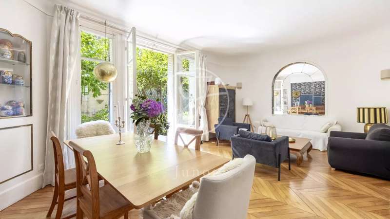 In the heart of a coveted address, in a beautiful, quiet, luxury, guarded building, a 141.31sqm walk-through garden-level apartment. The perfectly laid-out layout includes an entrance gallery, a lovely living room opening onto a lovely, sunny, unoverlooked 69m² bucolic garden, a kitchen/diner, three bedrooms, a shower room and a bathroom. This charming, spacious property features plenty of storage space and a cellar.