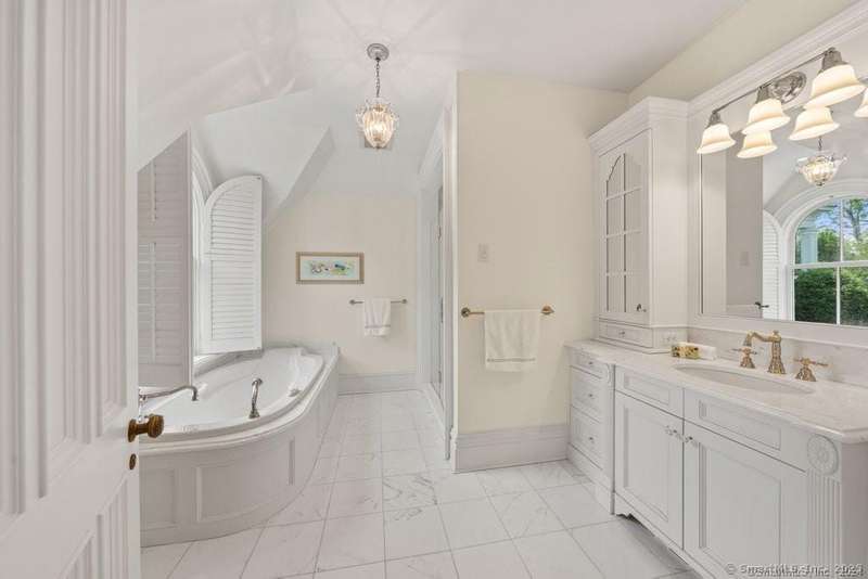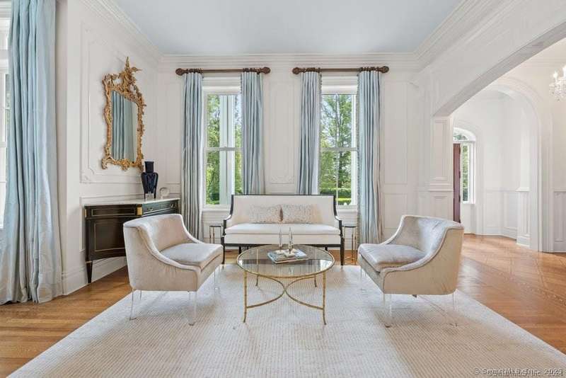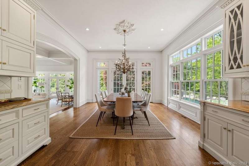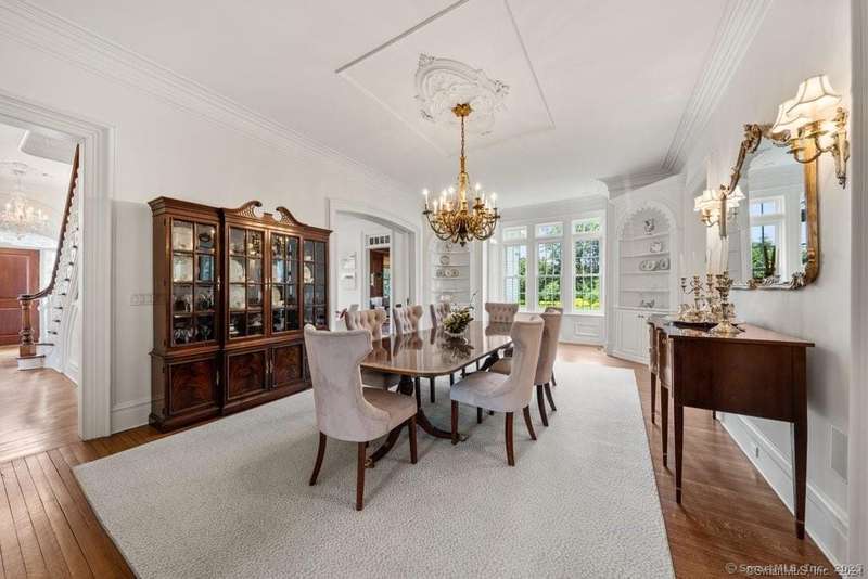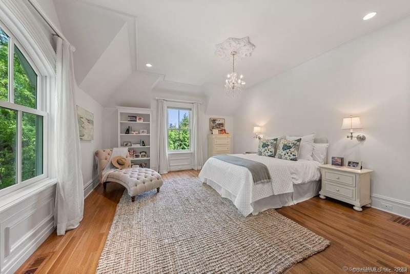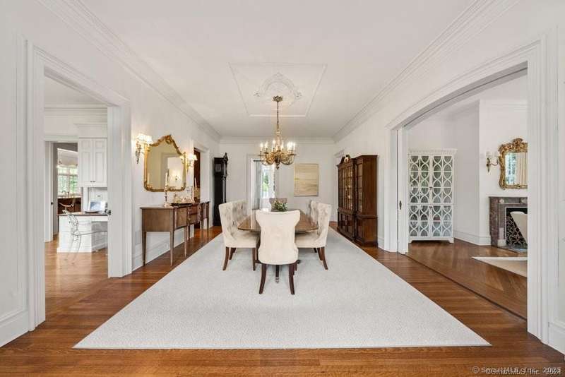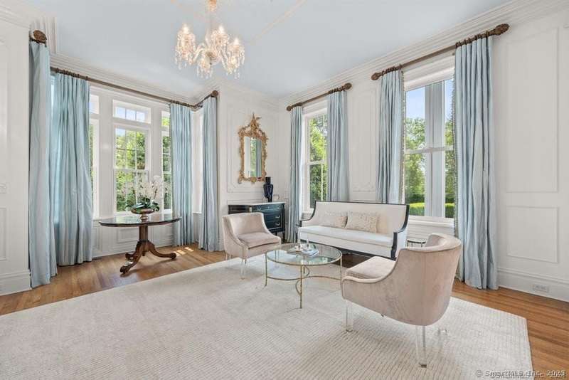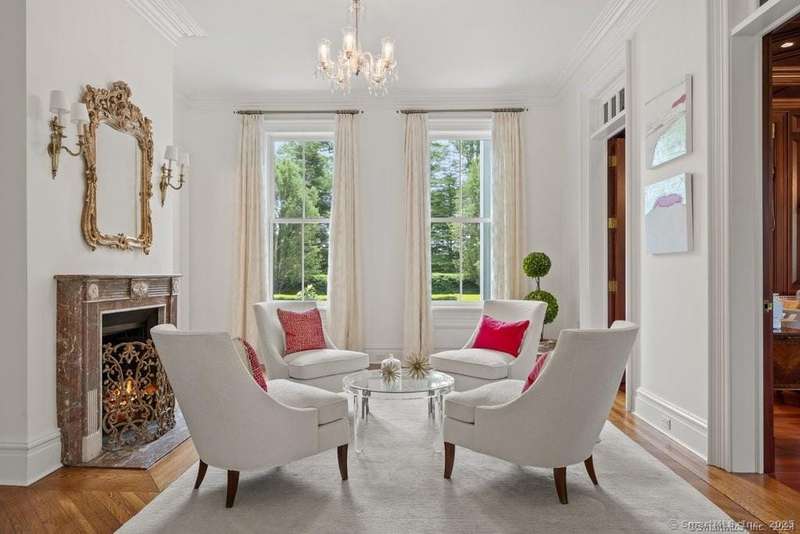 Welcome to Pemberly Hill, a truly exceptional home of unparalleled grandeur and sophistication. Boasting 8 bedrooms on 4 acres of pristine grounds on desirable Brushy Ridge, this magnificent property is a true masterpiece. This classic home has been thoughtfully designed to the highest standards, seamlessly blending its rich history with modern luxury. The result is an extraordinary residence that offers exquisite attention to detail and seamless flow of space. From the stunning foyer with a grand staircase to the spacious and inviting living and dining areas, every room is beautifully appointed with soaring ceilings of over 11 feet and perfectly designed for modern living. The light-filled and spacious gourmet kitchen features top-of-the-line appliances, a large center island, custom cabinetry, walk-in pantry, and wet bar. The luxurious primary suite is a true sanctuary, offering a spacious and serene retreat with a generous spa-like bath, 2 walk-in closets, a private sitting room, and breathtaking views of the property. 7 additional bedrooms are perfect for hosting family and friends. Step outside and discover over 4 acres of beautifully landscaped grounds with lush gardens, a sparkling pool, a Har-Tru tennis court, and multiple outdoor seating areas for relaxing and entertaining. A rare opportunity to own a piece of history in one of New Canaan's most desirable locations.