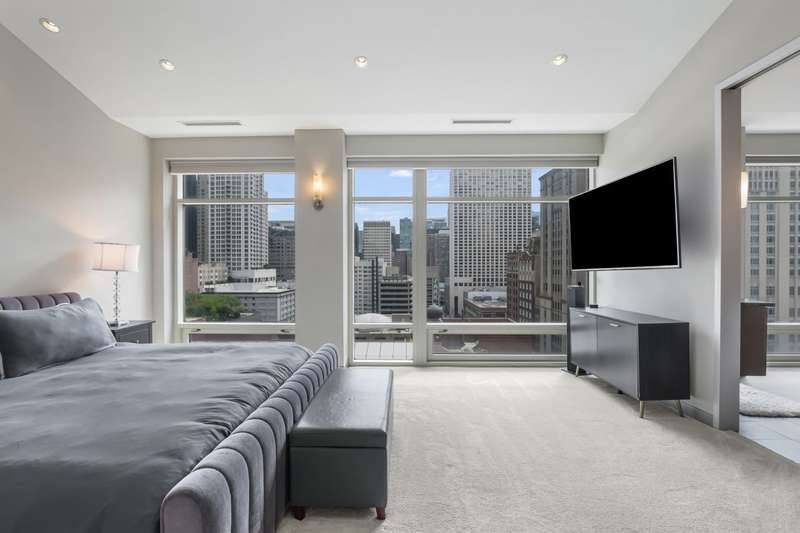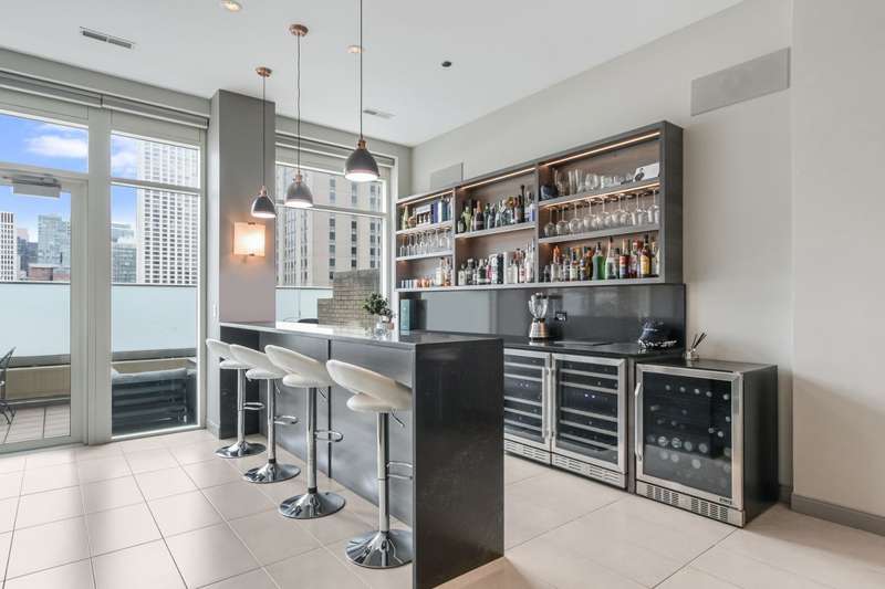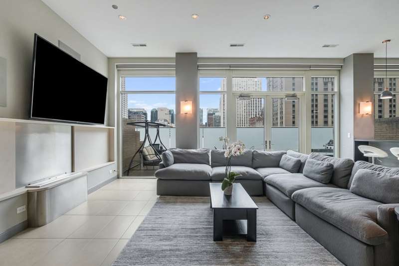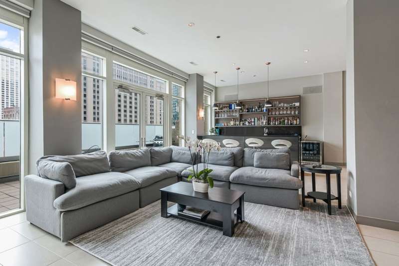 Discover an extraordinary urban oasis in the heart of River North. This magnificent 4-bedroom, 4-bathroom residence is one of just six exclusive designs, offering the ultimate in privacy with a direct, private elevator entrance. Every detail reflects unparalleled sophistication: 11-foot ceilings, heated floors, and premium fixtures by Duravit, Hansgrohe, and Grohe. Step onto your expansive 300 sq. ft. private terrace for spectacular city views, ideal for entertaining or serene relaxation. The chef's kitchen is a masterclass in modern design, boasting natural stone, high-gloss cabinetry, and top-tier appliances. Your primary suite is a serene escape, featuring floor-to-ceiling windows and a spa-like bath with a Jacuzzi tub and full-body spray shower. Beyond your door, a world of luxury amenities awaits: an outdoor pool, sundeck, fitness center, 24-hour concierge, and security. Experience effortless living, mere steps from Chicago's finest dining, vibrant nightlife, Mag Mile shopping, premier fitness, and the beauty of Lake Michigan. This isn't just a home; it's a statement of unrivaled luxury and convenience.