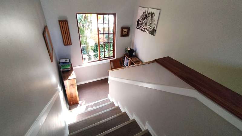This charming double story, two bedroom townhouse is nestled in a peaceful cul-de-sac, offering a serene and private living environment. The open plan living and dining area is designed for comfort and functionality, featuring a cozy gas fireplace and a ceiling fan for year-round comfort. The kitchen is well-equipped with an induction hob, an eye-level oven, and a breakfast nook – perfect for casual meals or a coffee break. A convenient guest bathroom is located on the ground floor for added ease and accessibility. Upstairs, you'll find two spacious bedrooms, both with built-in cupboards and carpeted flooring. The main bedroom opens onto a private balcony, offering a lovely spot to relax. These bedrooms share a full bathroom, ensuring comfort and privacy for all residents. The townhouse also boasts a small, low-maintenance garden complete with a built-in braai – ideal for outdoor entertaining. The property provides ample parking with two garages and two carports, making it both convenient and secure. This charming double story, two bedroom townhouse is nestled in a peaceful cul-de-sac, offering a serene and private living environment. The open plan living and dining area is designed for comfort and functionality, featuring a cozy gas fireplace and a ceiling fan for year-round comfort. The kitchen is well-equipped with an induction hob, an eye-level oven, and a breakfast nook – perfect for casual meals or a coffee break. A convenient guest bathroom is located on the ground floor for added ease and accessibility. Upstairs, you'll find two spacious bedrooms, both with built-in cupboards and carpeted flooring. The main bedroom opens onto a private balcony, offering a lovely spot to relax. These bedrooms share a full bathroom, ensuring comfort and privacy for all residents. The townhouse also boasts a small, low-maintenance garden complete with a built-in braai – ideal for outdoor entertaining. The property provides ample parking with two garages and two carports, making it both convenient and secure.