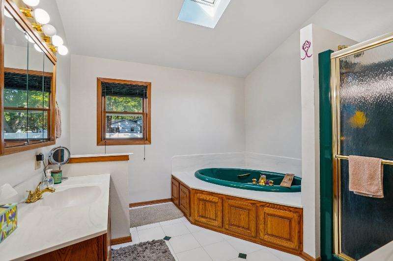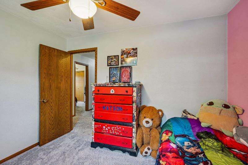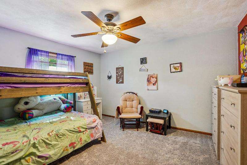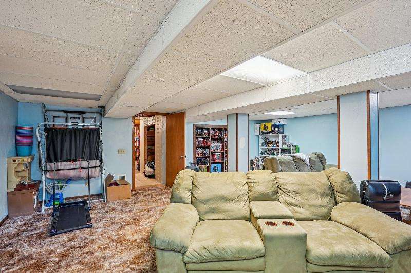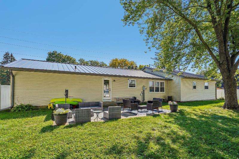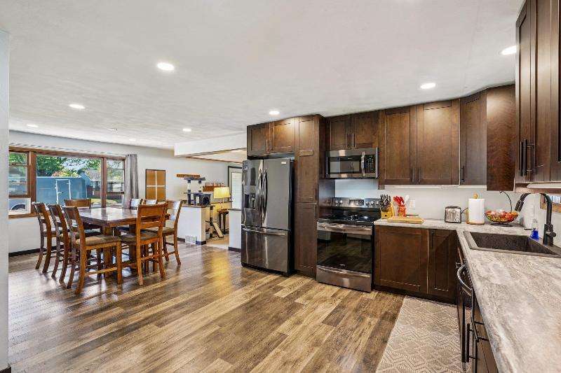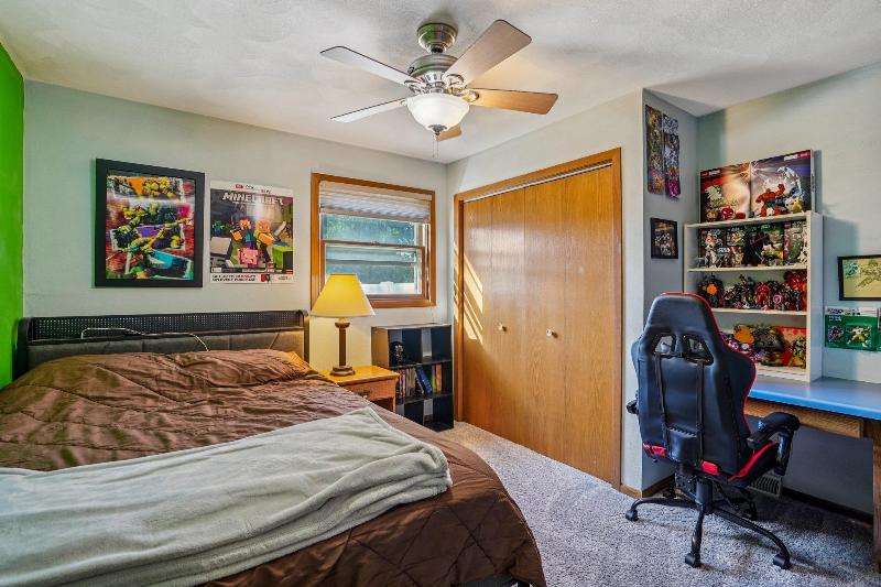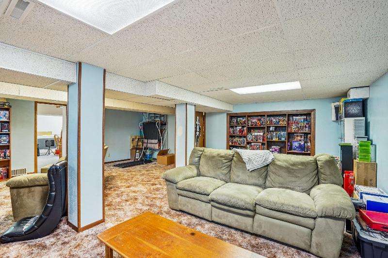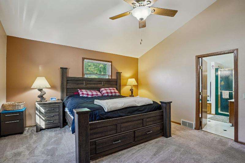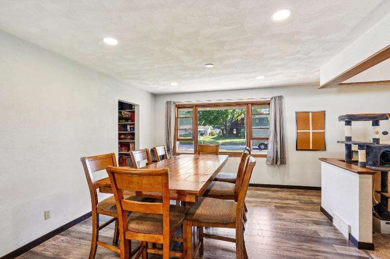 Beautifully maintained and updated, 4 bedroom/2.5 baths. With gas fireplace, updated kitchen with huge pantry. Master suite with jetted tub, standalone shower, 2 vanities, and huge closet. 2 car garage, fenced in back yard, new metal roof, mature trees, finished lower level, with a lot of storage! Walking distance to all schools, pool, restaurants, parks, library, shopping. Definitely TAKE A LOOK!