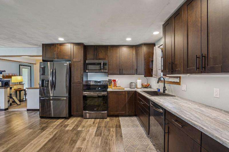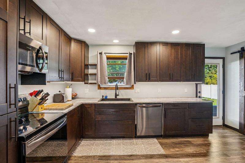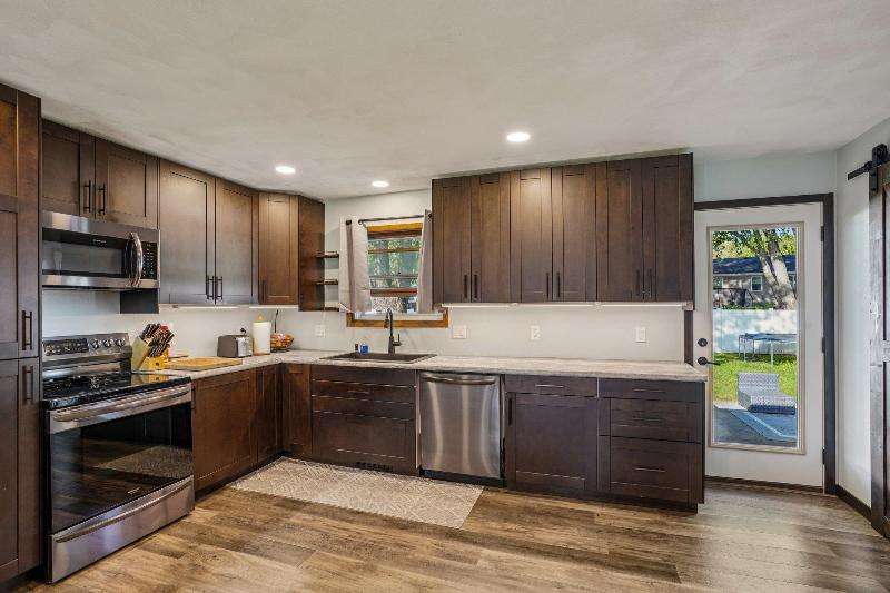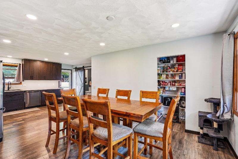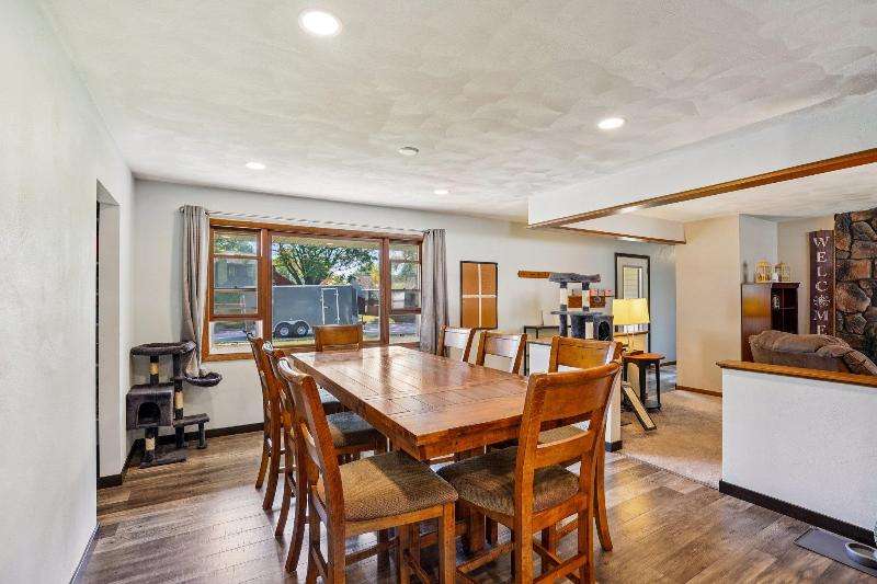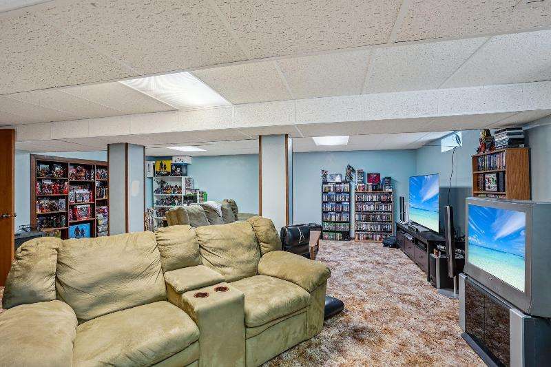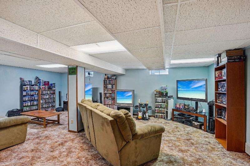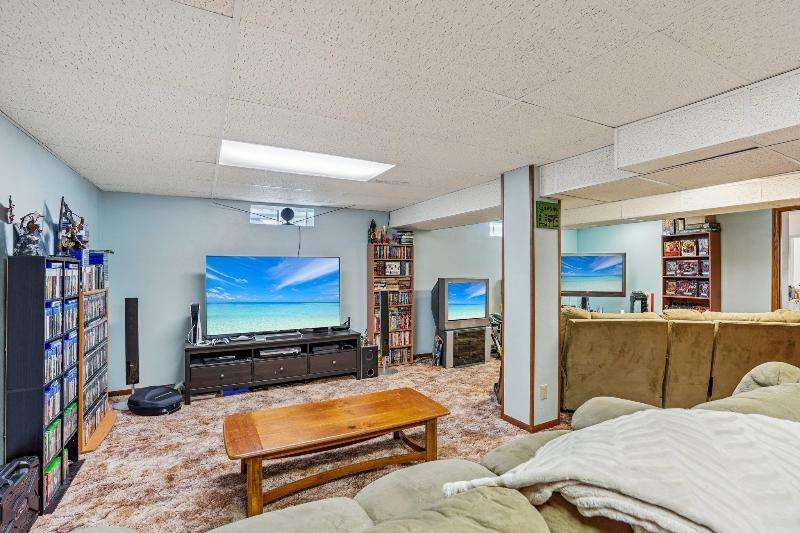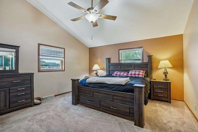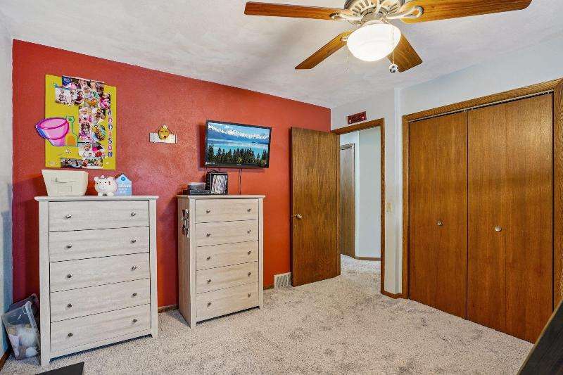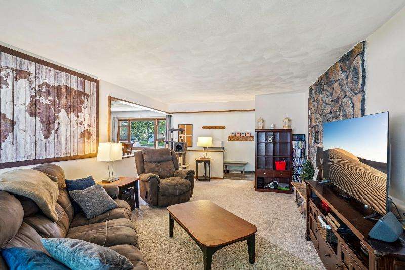 Beautifully maintained and updated, 4 bedroom/2.5 baths. With gas fireplace, updated kitchen with huge pantry. Master suite with jetted tub, standalone shower, 2 vanities, and huge closet. 2 car garage, fenced in back yard, new metal roof, mature trees, finished lower level, with a lot of storage! Walking distance to all schools, pool, restaurants, parks, library, shopping. Definitely TAKE A LOOK!