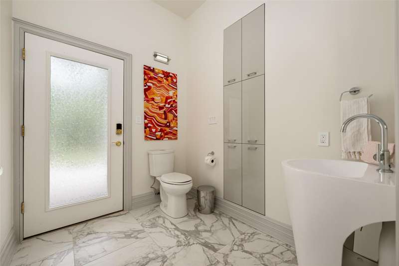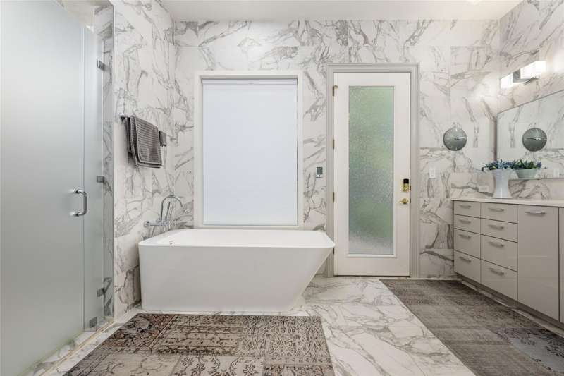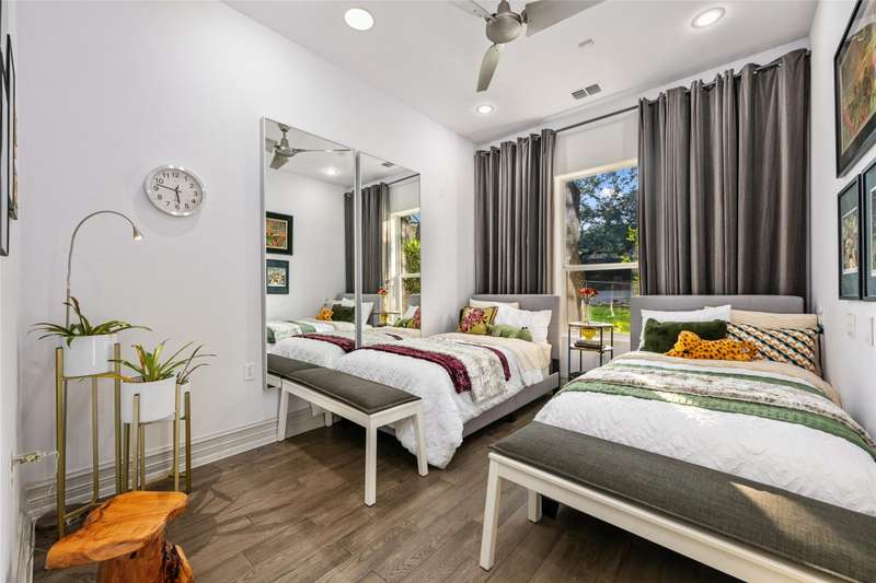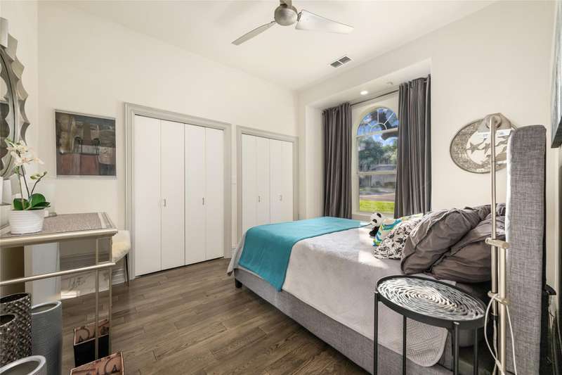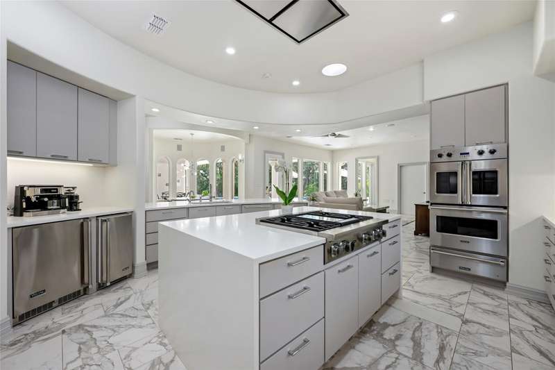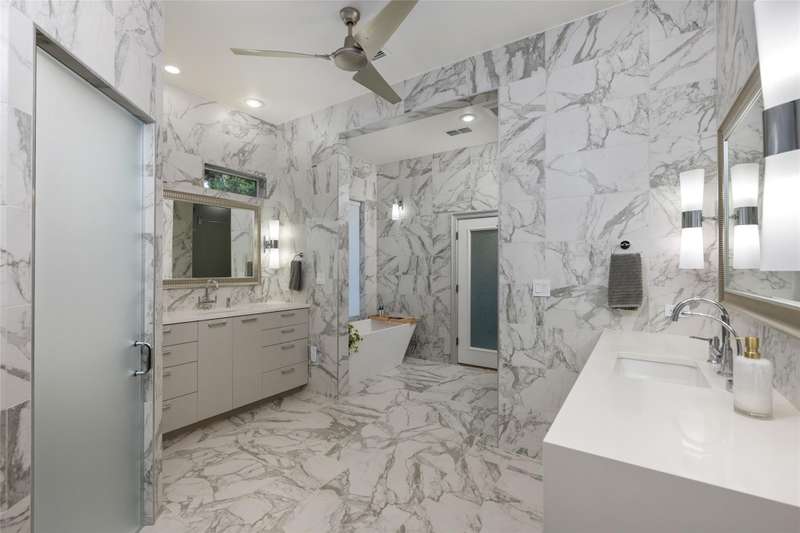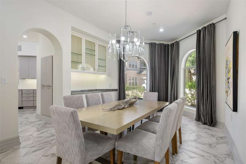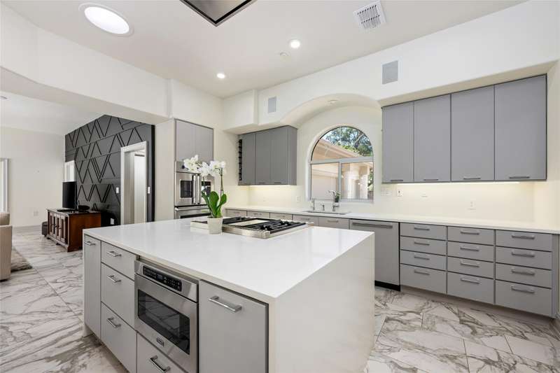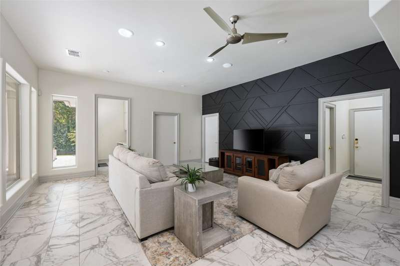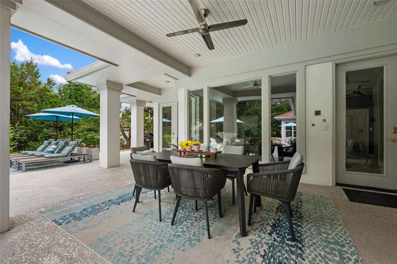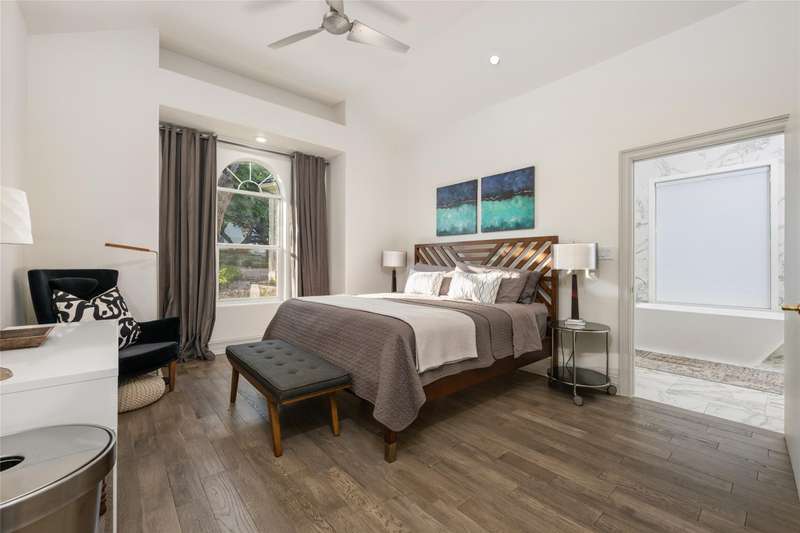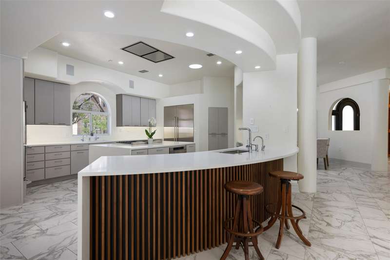 Spanish-style architecture meets contemporary luxury at this 4-bedroom, 3.5-bathroom home nestled in a quiet cul-de-sac. The beautifully curated interiors impress the moment you enter the residence, with gorgeous tile floors and a double-height rotunda. The resort-style pool is the home's focal point, with ample windows that invite picturesque views of the backyard inside. Enjoy the open-concept floor plan across multiple living and dining areas, including a living room with a fireplace, formal dining, a rounded breakfast nook, and a family room. The kitchen is outfitted with high-end stainless steel appliances by Viking, bar seating, a coffee bar, and a center island. The expansive media room boasts floor-to-ceiling bookshelves for your personal library, as well as stunning arched windows that provide the space with abundant natural light. Escape to luxury in the primary suite with backyard access and a spa-inspired bathroom with a soaking tub, heated floors, a walk-in shower, dual vanities, a walk-in closet, and a highly desirable indoor therapy pool. Guests will enjoy spacious bedrooms and upgraded bathrooms, including a second primary en-suite with a soaking tub, walk-in shower, and heated floors. In the backyard, tranquility and relaxation abound, with a resort-style pool and waterfall. Dine al fresco on the covered patio with a view of the landscaped backyard. The home has a pre-wired sound system, allowing you to easily connect your devices. A 3-car garage with a workshop and an EV charging station provides additional storage. The home is part of The Courtyard community, which offers access to a private park on Bull Creek featuring trails, playgrounds, and a dock for canoeing, kayaking, and other recreational activities, as well as access to Lake Austin. This home has perfected single-story living in a coveted Austin neighborhood. Tax and assessed values are estimates for illustration purposes only. All figures should be independently verified.