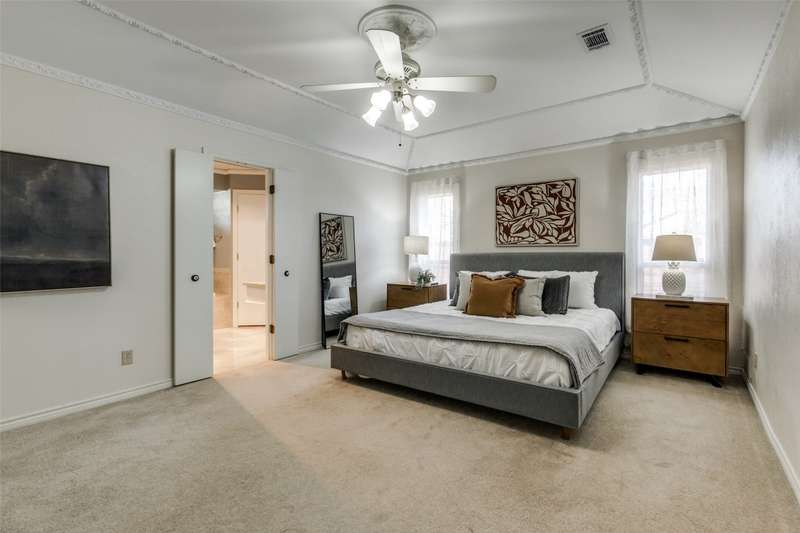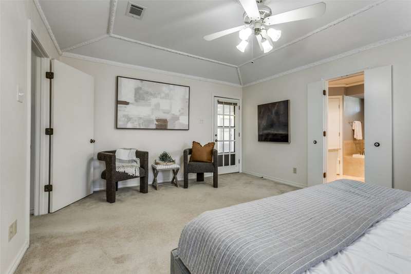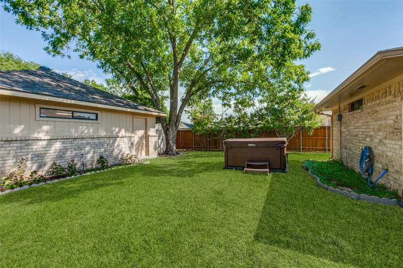 Looking for more than just a house?This Richardson gem offers 4 GARAGE SPACES, an extended driveway ideal for your boat or RV, and direct access to greenbelt walking and jogging trails right across the street! Enjoy convenient access to Glenville Park and Pool (0.3 mi) and a full range of shopping, dining, and retail optionsincluding Target and Lowesjust 0.6 miles away.This 2,177 sq ft, 3 bedroom, 2 bath home sits on a spacious corner lot and has been immaculately cared for with updates including HVAC, roof, interior and exterior paint, water heater, garage door opener, French drain at the detached garage, primary bath, and no popcorn ceilings!Enjoy two garages providing four covered parking spaces: a custom-built detached garage featuring heating and cooling, attic storage, 100 amps of power, and multiple outlets all perfect for a workshop, studio, or hobby space. The attached 2 car garage includes an 8' x 11' storage room with deep built-in shelving. Inside, youll find a spacious living and formal dining area filled with natural light. The bonus room includes built-ins and a wet bar, providing a flexible space for a home office, game room, or creative retreat. Both the primary suite and kitchen open to the covered patio and private backyard, ideal for outdoor gatherings. Both bathrooms feature separate tub and shower layouts for comfort and convenience. This home has been lovingly cared for and is ready for your personal touch!Washer, dryer, utility room refrigerator, and spa available for inclusion if desired.