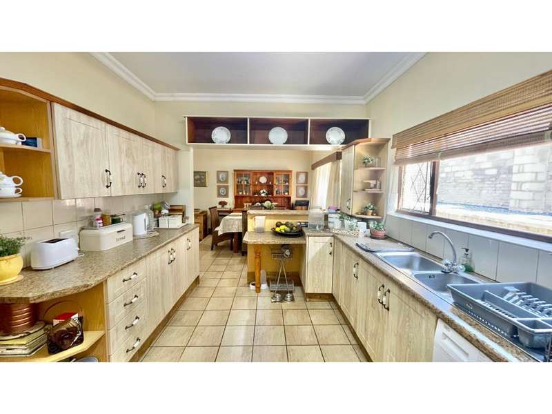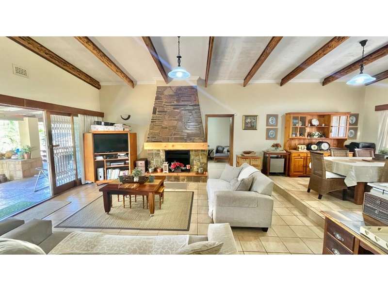 Lovely large open plan family home with doors opening to the patio and pool area. Manicured garden and a neat driveway. This well located property is private from the road and is such a nice surprise as you drive through the gates up to the house. Lots of outdoor living space as the patio stretches from one end of the house to the other. Tiled floors throughout and a modern kitchen with a pantry. The house has an additional kitchen and lounge area with two bedrooms that could be closed off and used as a granny flat plus there is a large 3 bedroom cottage at the bottom of the garden. Well located and close to all amenities.