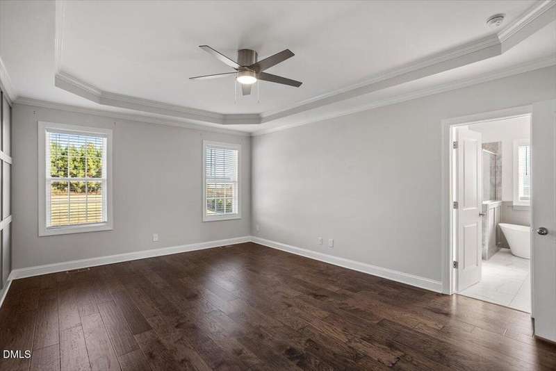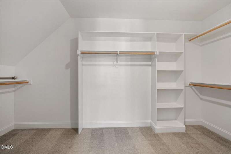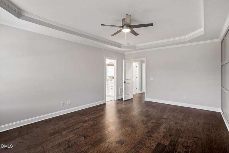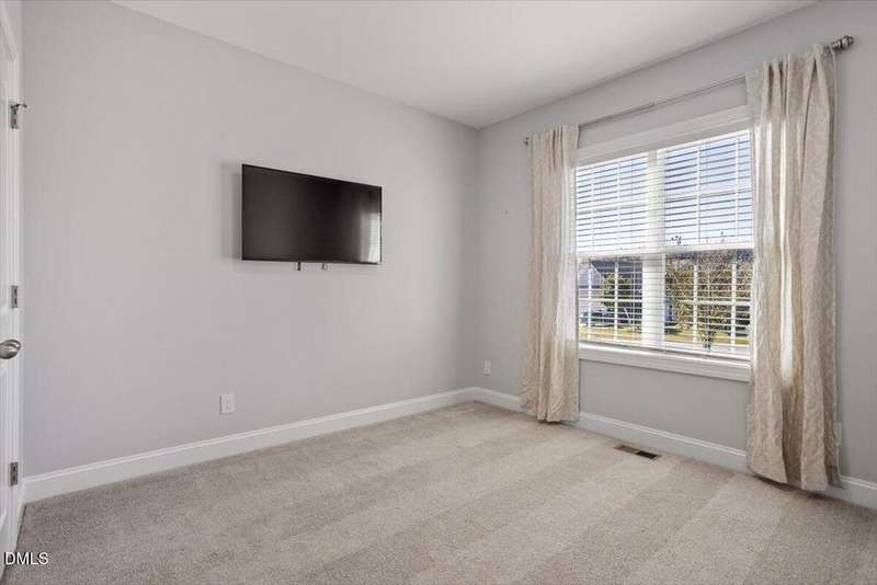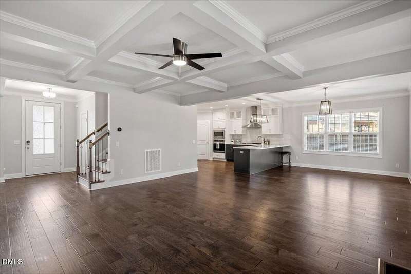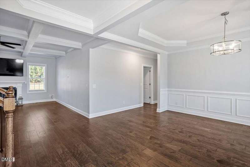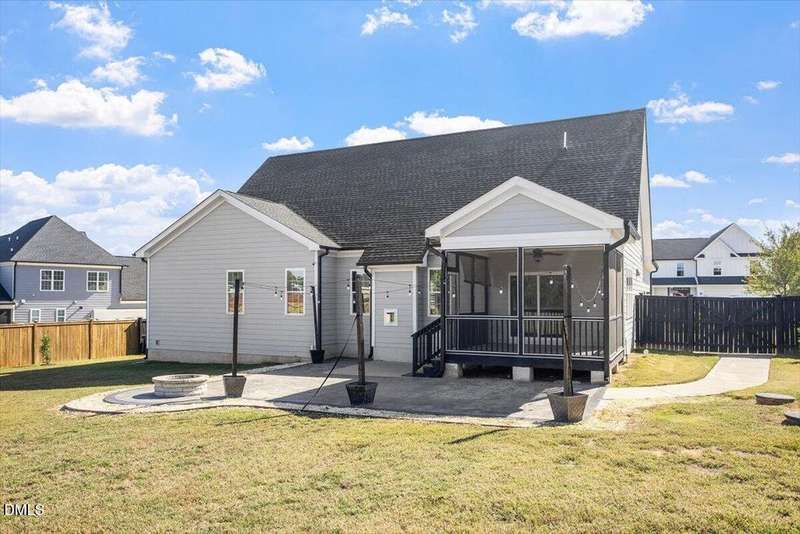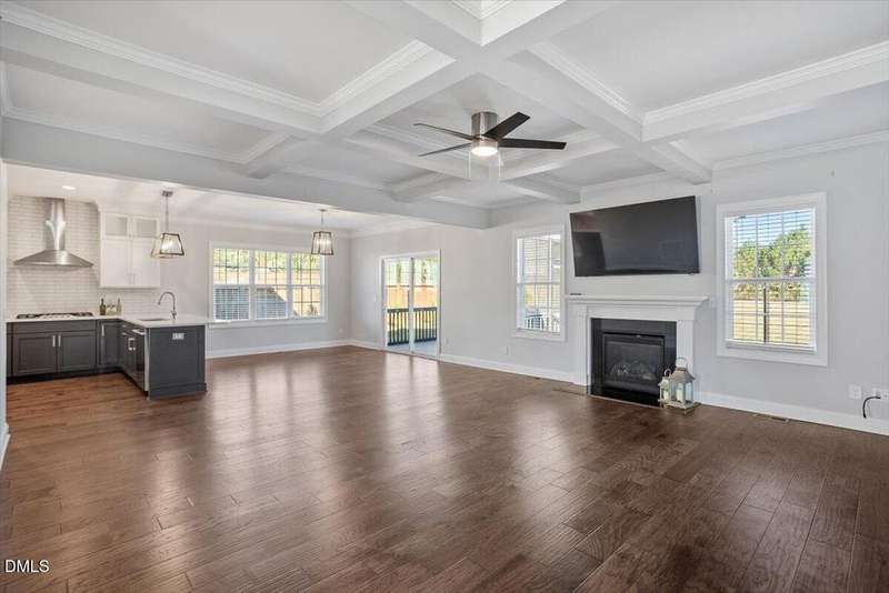 Single-story living floor plan with family room, formal dining room; kitchen with ceiling height cabinets, tiled backsplash, wall oven, microwave, gas cooktop, stainless steel fridge & quartz countertops. Family room has coffered ceiling, and gas log fireplace. Master & 2nd bedroom on main floor. TVs in Family Room and Primary Suite convey. Primary bathroom has stand alone tub and oversized ceramic tiled shower with dual shower heads. The 2nd floor has huge flex room with closet, a 3rd bedroom, a 3rd full bathroom and1287 sq. ft. of unfinished walk-in storage. Screened porch and stamped concrete patio with firepit overlook large fenced backyard. Garage has epoxy floor and overhead storage. Energy efficient home with HERS rating built on sealed crawlspace. Tankless hot water heater.