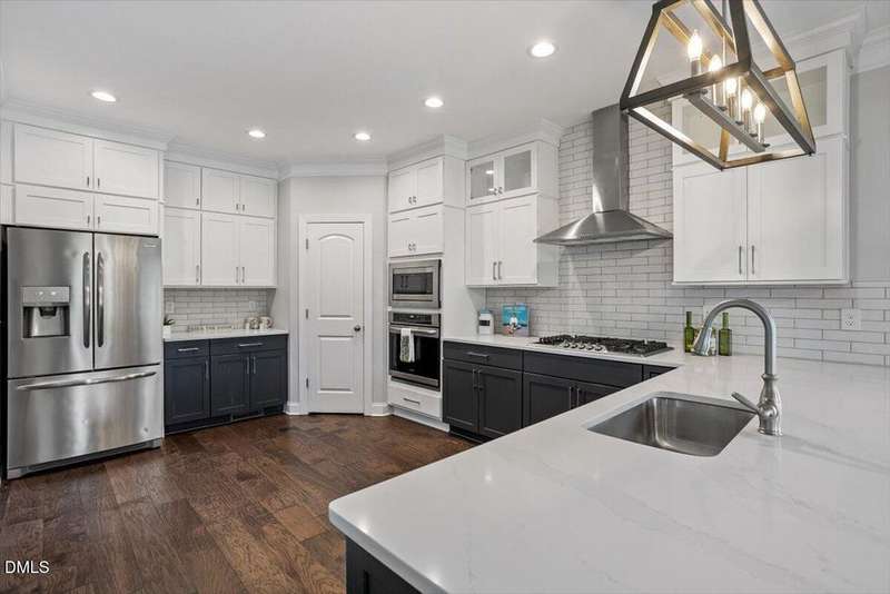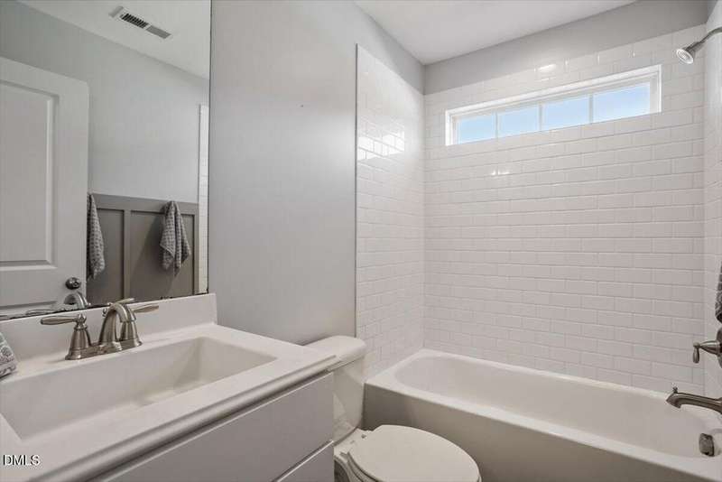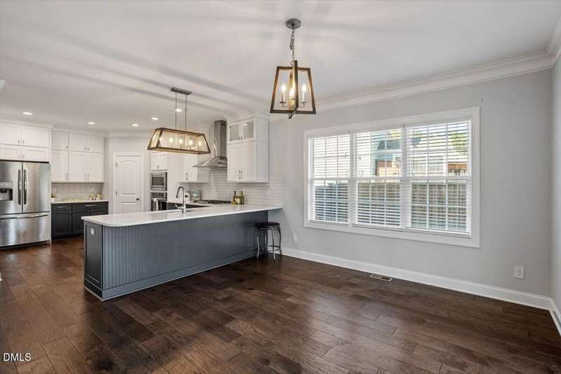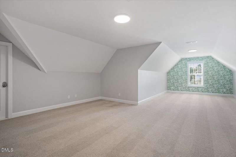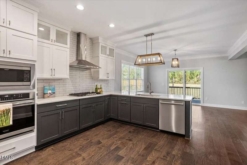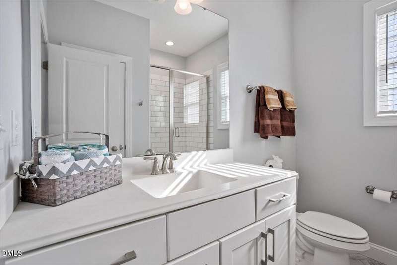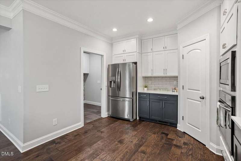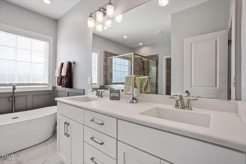 Single-story living floor plan with family room, formal dining room; kitchen with ceiling height cabinets, tiled backsplash, wall oven, microwave, gas cooktop, stainless steel fridge & quartz countertops. Family room has coffered ceiling, and gas log fireplace. Master & 2nd bedroom on main floor. TVs in Family Room and Primary Suite convey. Primary bathroom has stand alone tub and oversized ceramic tiled shower with dual shower heads. The 2nd floor has huge flex room with closet, a 3rd bedroom, a 3rd full bathroom and1287 sq. ft. of unfinished walk-in storage. Screened porch and stamped concrete patio with firepit overlook large fenced backyard. Garage has epoxy floor and overhead storage. Energy efficient home with HERS rating built on sealed crawlspace. Tankless hot water heater.