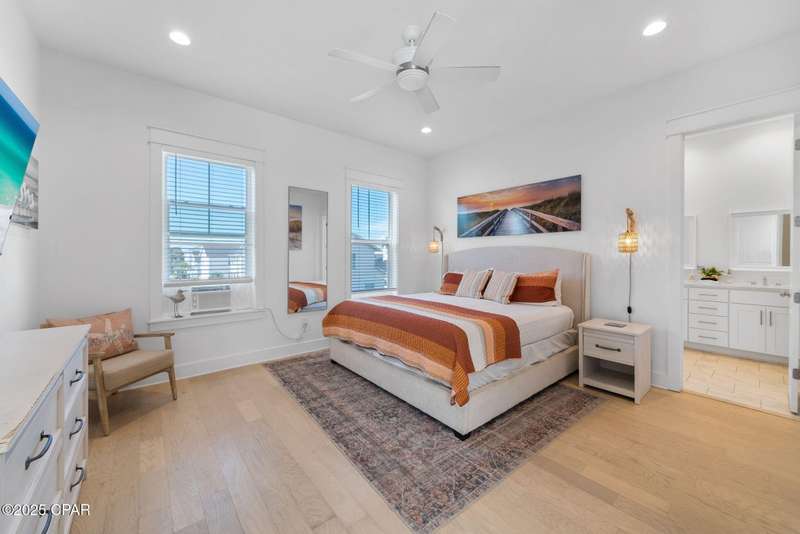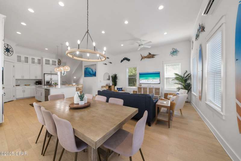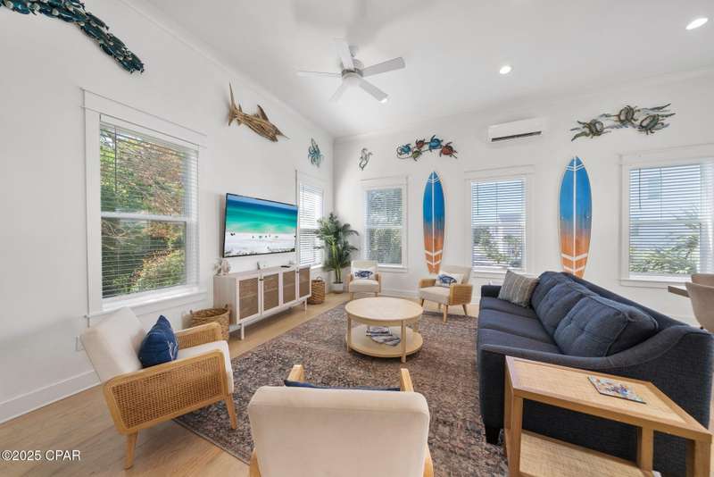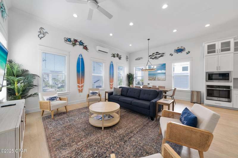 Beautiful beach home located within walking distance of the unparalleled shores of Inlet Beach, Florida. This home is exactly what a Florida coastal home should be! With 3 stories, 4 bedrooms and 3.5 baths, it offers great views, spacious living and a luxurious yet family-friendly feel. This home comes FULLY furnished so you can move in without a care or offer this home as an immediate short term rental! The home is located at the gateway to the scenic 30A Hwy and is next to 30Avenue shops and dining, 1 mile from Rosemary Beach and 1 mile to Camp Helen State Park. There are no worries with beach access here as the nearest public beach is within walking and biking distance. The new underground pedestrian tunnel provides safe passage under Hwy 98 and opens up to 30A. The current owner says the home easily accommodates up to 13 people. Current rental figures are available. All measurements are approximate so please verify.
