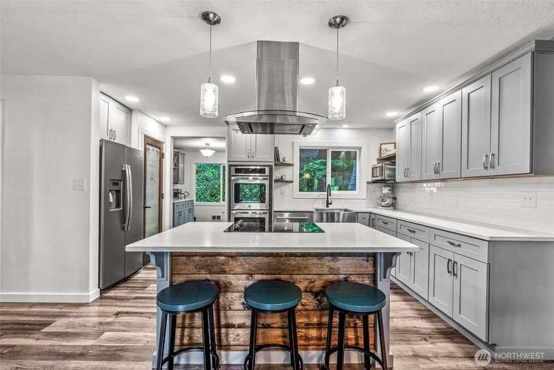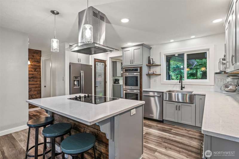 Beautifully remodeled home offering over 3,400 sq ft of stylish living in a serene wooded setting. Featuring 5 spacious bedrooms, 2.5 updated baths, and a completely reimagined kitchen with quartz countertops, modern cabinetry, and newer appliances, this home has it all. Be sure to check out the elevator to the hidden room. Brand new upgraded flooring in the lower floor. Enjoy cozy fireplaces, extra parking, and a paver patio with an outdoor fireplace. With a handy elevator for convenience, new paint and flooring throughout, and countless thoughtful updates, this move-in ready home is a must-see. Ask for the full list of upgrades—there's so much more to discover!