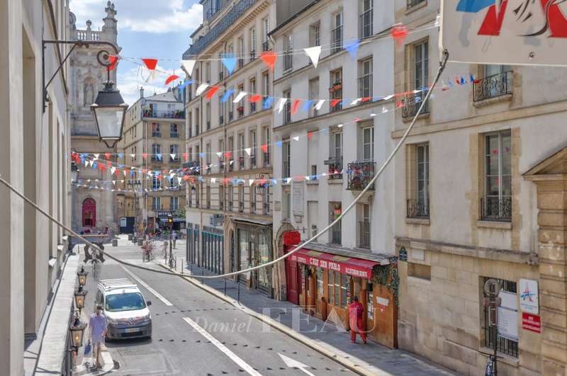 In the heart of the highly sought-after Marais district, on the first floor of a 19th-century building with an elevator, this two/three-room apartment offers a surface area of 68 m² (Carrez Law). Fully and tastefully renovated, this bright, dual-aspect property overlooks both the street and the courtyard and benefits from generous volumes. It features a spacious west-facing living/dining room with a fully fitted and equipped open kitchen, one bedroom, a study or guest room, a bathroom, a large walk-in closet, and separate toilets. A cellar completes this property.