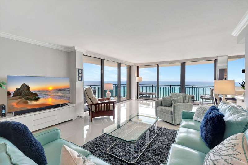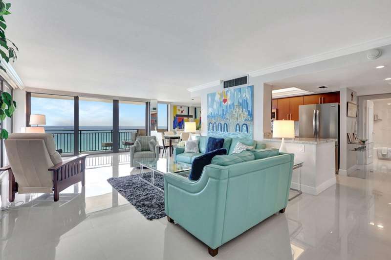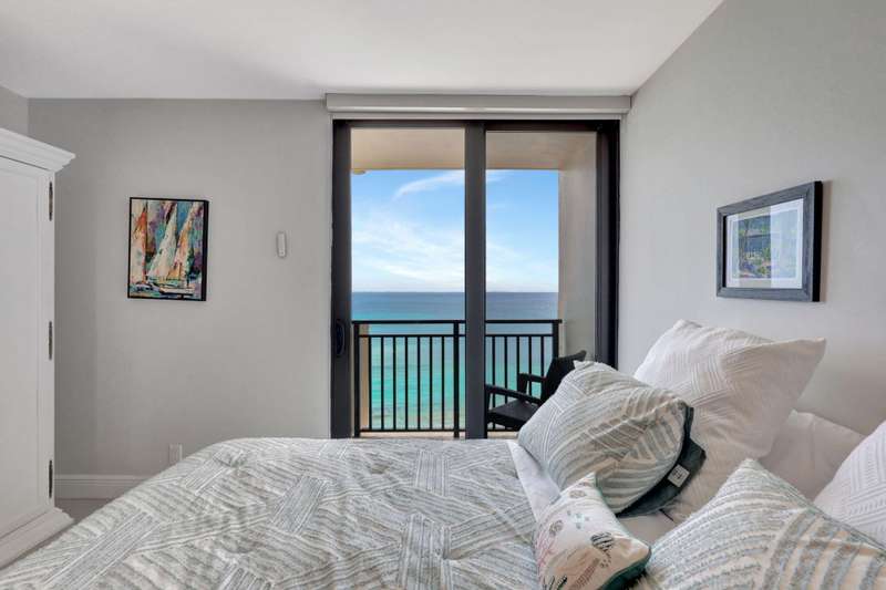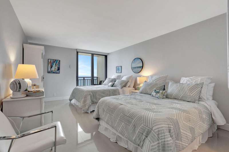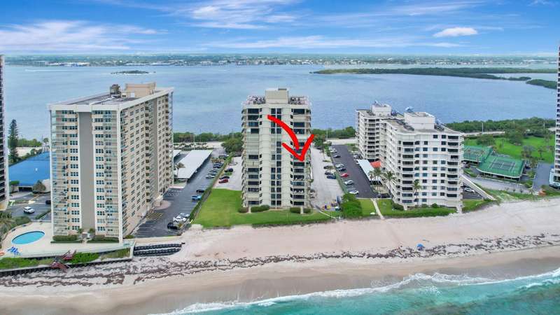 Direct ocean Singer Island condo with stunning ocean and intracoastal views. Large wrap around balcony accompanied by private balconies for each bedroom. Private washer/dryer in the unit. Brand new blinds on remote in both bedrooms and the main living area. All tile floors (no carpet), updated kitchen with SS appliances, and beautifully renovated bathrooms. All impact windows. Seawall work will be happening Nov 1 to Jan 31. Building was recently renovated in the lobby, elevators, and hallways. The building just finished concrete restoration and exterior improvements. Enjoy peace and quite, a walk on the beach, a swim in the pool, tennis, and the many nearby restaurants and shops on Singer Island and nearby Palm Beach Gardens and Jupiter. Plenty of storage with 2 storage cages.