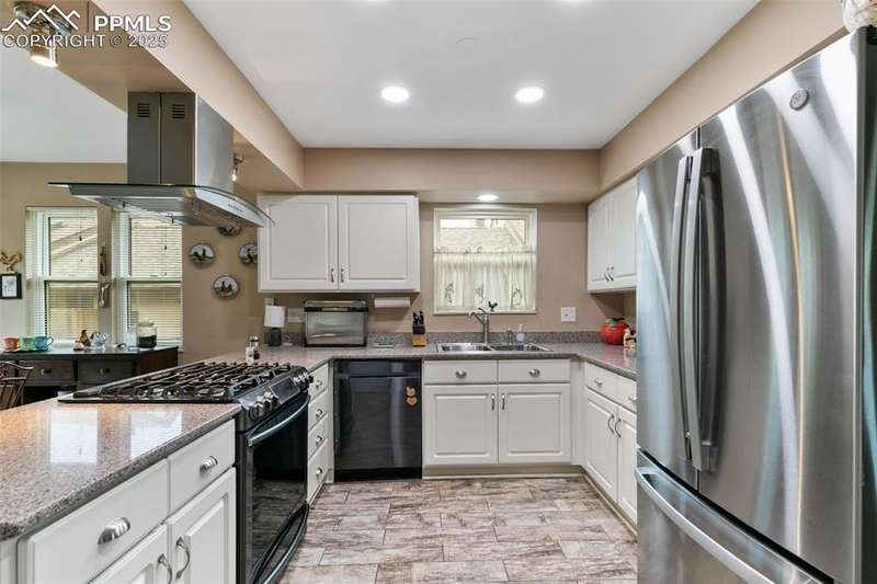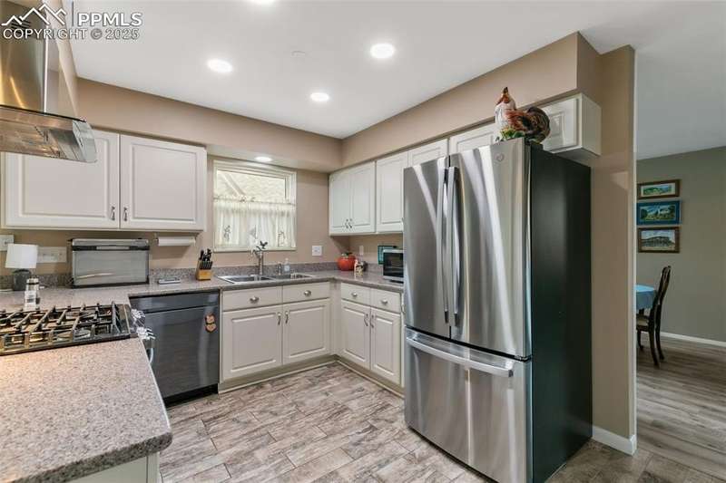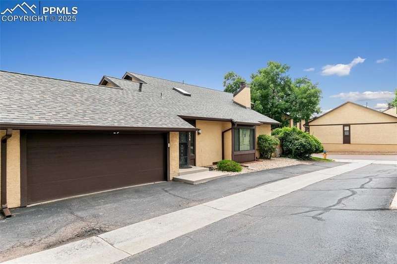 Remodeled and updated in 2023! This home boasts a stylish kitchen with Corian countertops, stainless steel appliances, and soft-close cabinetry. A brand-new roof was added in 2024 for peace of mind. Enjoy outdoor living on the spacious concrete patio or relax on the private front patio off the main-level bedroom. The main-level suite is complemented by two additional bedrooms upstairs, where the full bath features sleek quartz countertops. 2 story Great Room with gas fireplace. Vaulted ceilings enhance the sense of space, and the oversized two-car attached garage provides plenty of room for parking and storage.