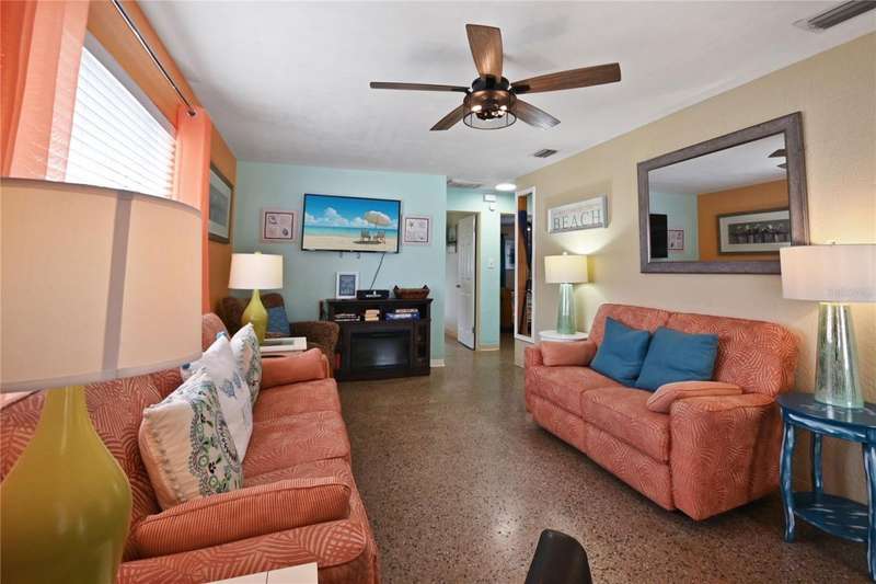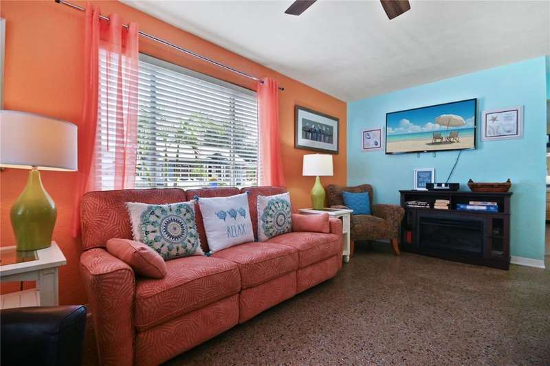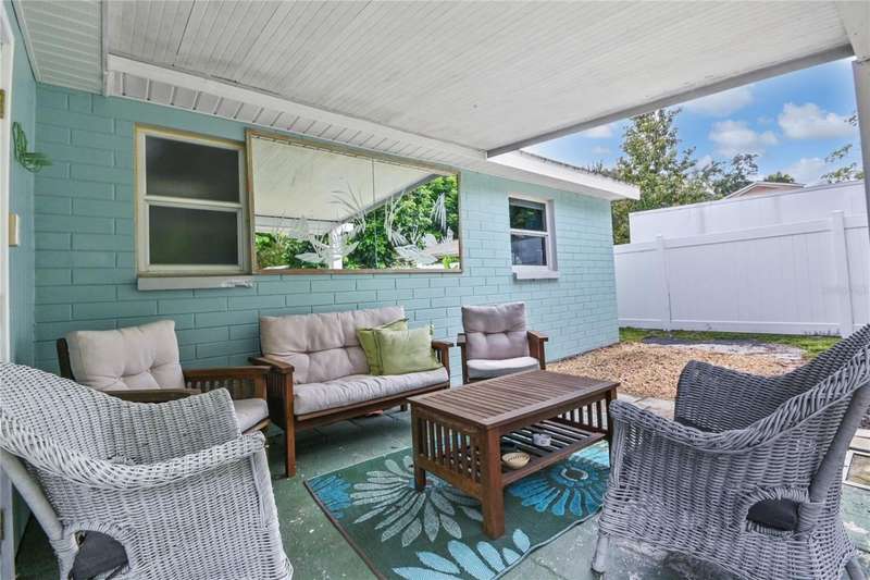 Charming 3-Bedroom home in a Tropical Paradise - Turnkey & Ready to Enjoy! This beautifully maintained 3BD, 1BA home offers the perfect blend of comfort, style, and convenience. The solid concrete block construction ensures durability, while the terrazzo floors add timeless character throughout the home. The kitchen features sleek stainless steel appliances (new in 2022), large basin sink, plenty of cabinets and even space for an island making meal prep a breeze. The home has been meticulously cared for, with updated electric, fixtures, and windows, ensuring a move-in-ready experience. And, it comes completely furnished and turnkey-just bring your suitcase! The tropical paradise backyard is lush with landscaping and even has a mature avocado tree offering both beauty and privacy. Avoid using the city water for irrigation! This home has a well and irrigation system. Enjoy the Florida lifestyle with front and rear porches, a spacious patio for outdoor gatherings, and plenty of room for relaxation. The backyard is fully fenced, providing the perfect retreat. Located between U.S.1 and Riverside Drive, you'll have easy access to Downtown New Smyrna Beach (1.8-miles), Edgewater Public Boat Ramp (3/4-mile) and the beach (3.75-miles). Bonus opportunity: There is a rental already booked for February, offering the potential for nearly $4,000 in income. This reservation can be kept or cancelled based on the buyer's preference.