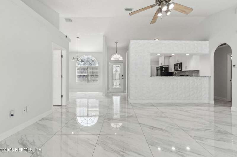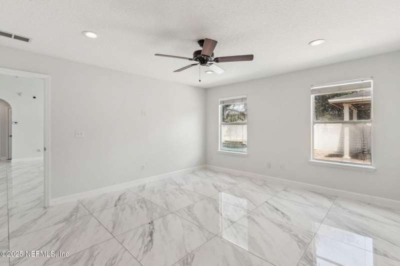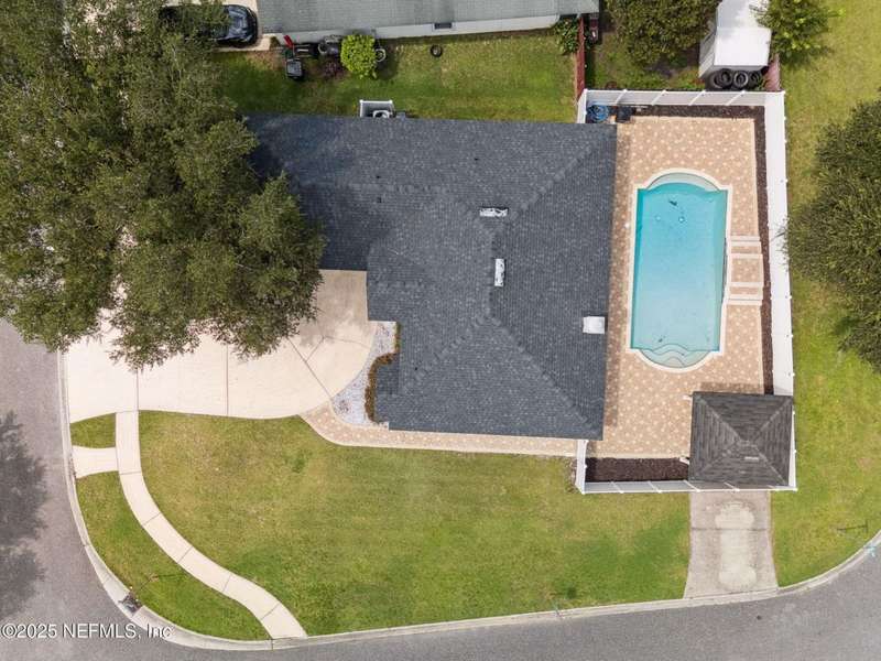 Step into this beautifully updated 3-bedroom, 2-bath home that perfectly blends style, comfort, and modern upgrades. The property features a private pool surrounded by a white vinyl fence for added privacy and low maintenance. Recent improvements include a new roof in 2021, renovated kitchen and marble-style tile flooring in 2021, a new air conditioning system installed in 2022, and a water heater updated in 2024-providing both efficiency and peace of mind. The freshly painted interior highlights a bright and contemporary design, while the kitchen showcases white cabinetry, granite countertops, and stainless-steel appliances, seamlessly connected to an open living area with large windows that fill the space with natural light. Situated on a corner lot, the home offers a spacious front yard with direct access to the pool and patio area, ideal for outdoor enjoyment. This move-in ready property combines quality upgrades with everyday comfort.