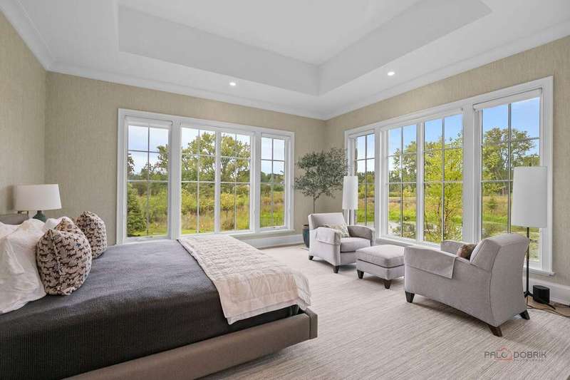 Enjoy elevated living in this professionally designed, move-in ready home located in The Preserve at Westleigh. With unobstructed views of Lake Forest Open Lands in a cul-de-sac setting, this custom-built residence blends luxury construction by Reynolds Architecture with high-end interior design by Tom Ferguson Interiors of Chicago. The owners enhanced the entire home with thoughtful upgrades, including custom rugs, window treatments, and floating built-in cabinetry in the library, creating a polished and welcoming environment. As you enter the home, you are greeted by a vaulted family room with fireplace and beautiful views of the Open Lands. This room flows effortlessly into a spacious chef's kitchen and dining area with picture windows and access to the backyard-ideal for both everyday comfort and entertaining. The first-floor primary suite offers privacy and tranquility, complete with a large walk-in closet and spa-like bath. A separate library with views of the front yard, powder room, and practical mudroom/laundry room add to the home's functional layout. Upstairs, two en-suite bedrooms and a spacious loft provide flexible space, with a large carpeted attic space that offers great potential for storage or future customization. The full, unfinished basement includes plumbing for a full bath and offers a generous space for adding additional living areas. All just minutes from Lake Forest's shopping, schools, train station, parks, and expressways-this home is an exceptional opportunity to enjoy beautiful new construction.