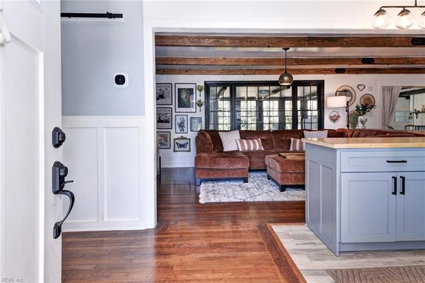 Welcome to 3326 News Road, a charming farmhouse-style ranch set on nearly 0.8 acres with no HOA. Offering over 2,300 square feet of living space, this 4-bedroom, 2-bath home blends classic character with modern comfort. The open layout connects the living, dining, and kitchen areas, creating an inviting flow for everyday living and gatherings. The kitchen features granite and butcher block countertops, recessed lighting, and plenty of workspace. The primary suite includes a sitting room and private bath, while the additional bedrooms provide flexibility for guests, an office, or hobbies. Thoughtful details include wood-beamed ceilings, wainscoting, and barn doors. The family room includes a wood-burning fireplace and abundant natural light that enhance its inviting atmosphere. Outside, a large, fenced backyard and deck offer plenty of room to relax and entertain. Conveniently located, this home combines rural charm with easy access to town.
