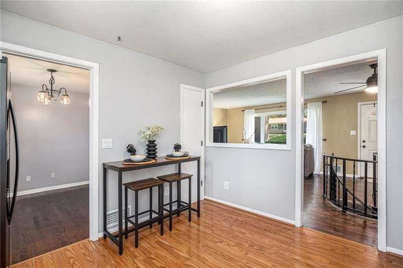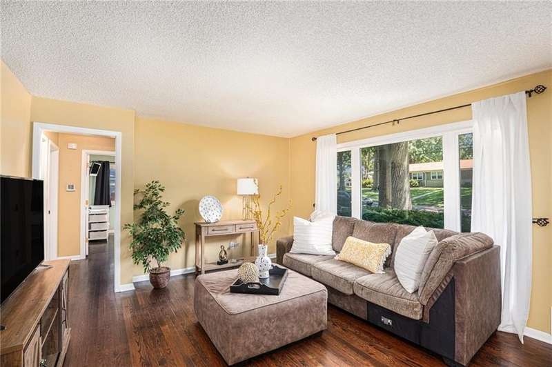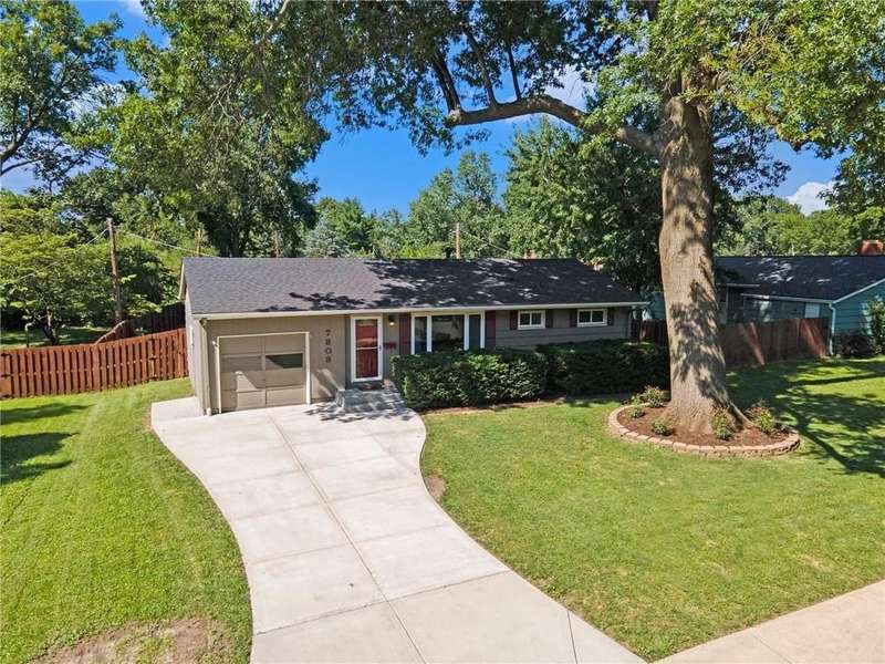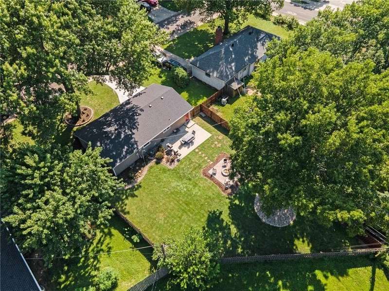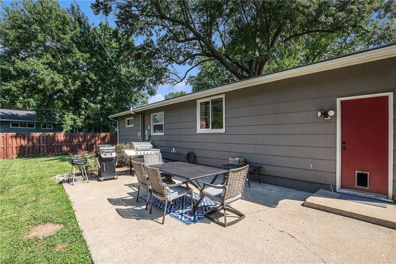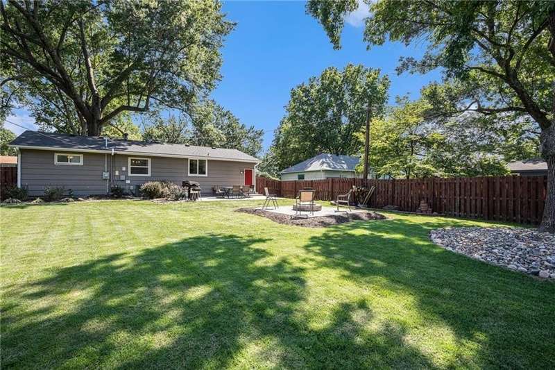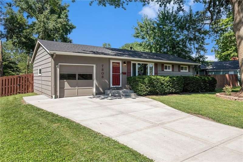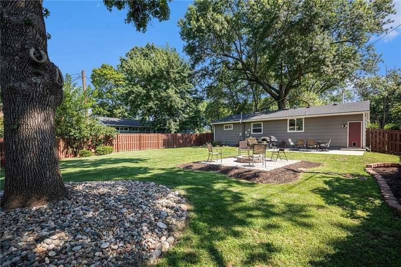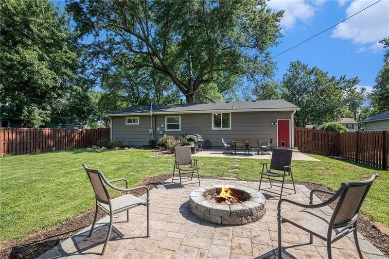Charming, well-maintained ranch with thoughtful updates throughout! Step into a spacious living room featuring hardwood floors, a large picture window, and indoor access to the finished lower level. The updated eat-in kitchen offers modern convenience, while three bedrooms and a full bath complete the main level. Downstairs, enjoy a large rec/family room with a bar, plus a bonus room perfect for an office or non-conforming 4th bedroom. Outside, the large backyard boasts a new wood privacy fence, firepit area, and attractive landscaping. Recent improvements include new windows throughout, HVAC, new driveway, and more. Ideally located on a quiet street near downtown Overland Park and everyday conveniences!