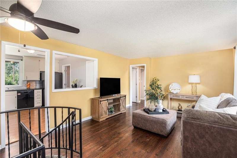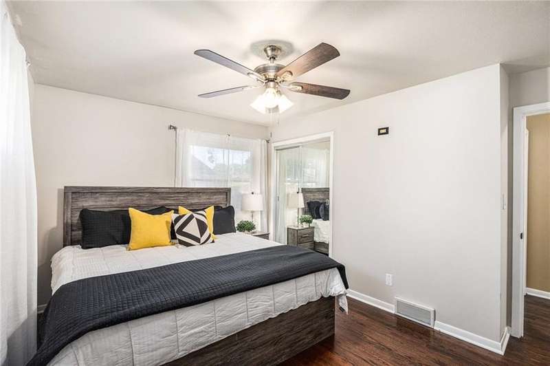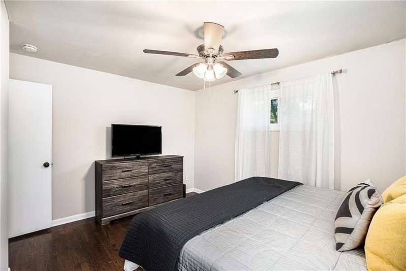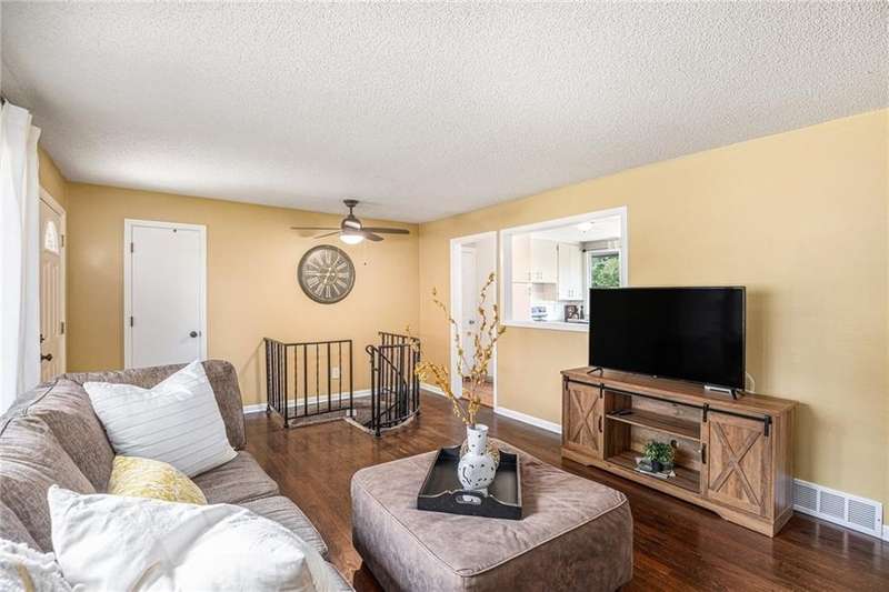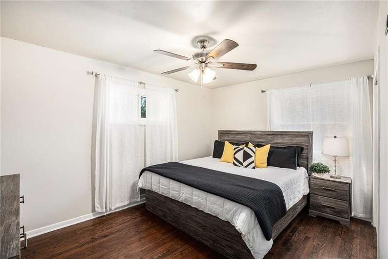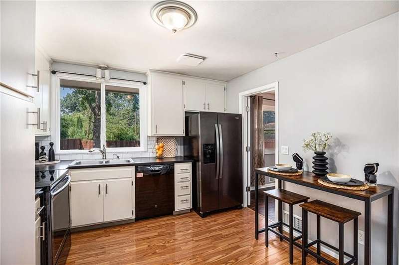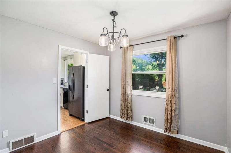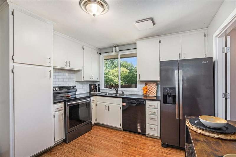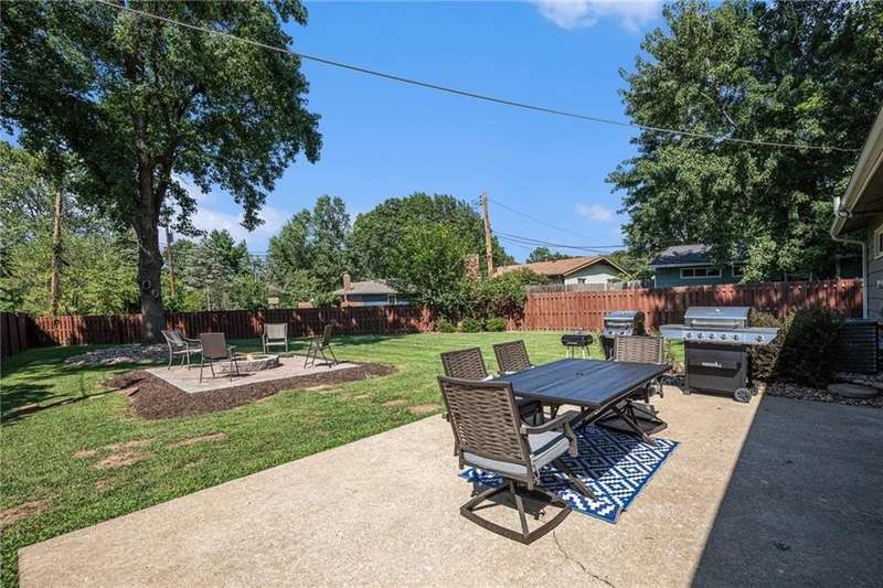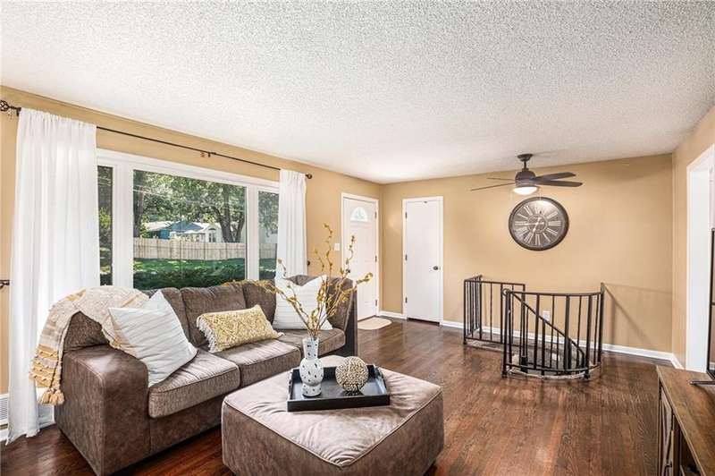Charming, well-maintained ranch with thoughtful updates throughout! Step into a spacious living room featuring hardwood floors, a large picture window, and indoor access to the finished lower level. The updated eat-in kitchen offers modern convenience, while three bedrooms and a full bath complete the main level. Downstairs, enjoy a large rec/family room with a bar, plus a bonus room perfect for an office or non-conforming 4th bedroom. Outside, the large backyard boasts a new wood privacy fence, firepit area, and attractive landscaping. Recent improvements include new windows throughout, HVAC, new driveway, and more. Ideally located on a quiet street near downtown Overland Park and everyday conveniences!