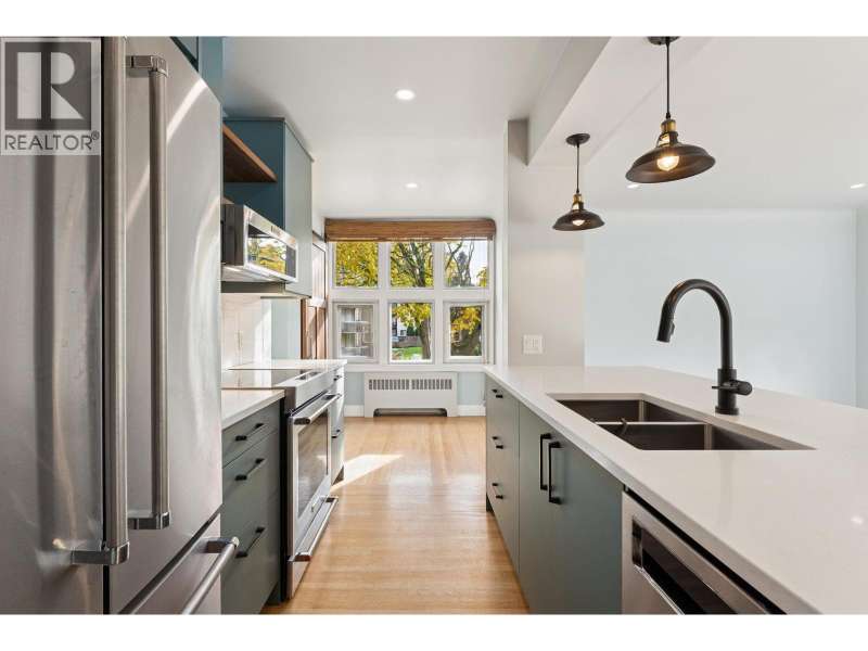 Mid-Century Modern! Welcome to this bright, quiet, South and West facing character home! With nearly 1,000 sq ft, this 2nd floor 2-bed, 2-bath features restored HW floors, coved ceilings, in-suite laundry and updated kitchen/baths. Enjoy abundant light and a strong community feel in this pet-friendly 19+ South Granville equity co-op building. Highly walkable location near shopping & dining. Don't miss this stylish, move-in-ready gem! Incl storage locker and bike room. No elevator, no parking. Open Sunday Nov 9 1-3pm (id:58403)
