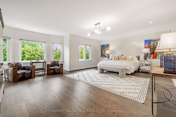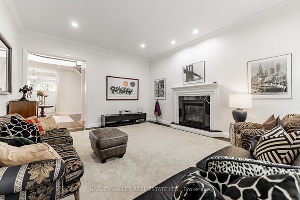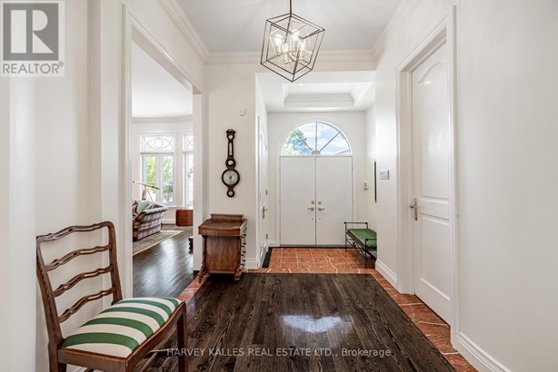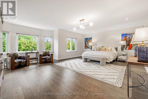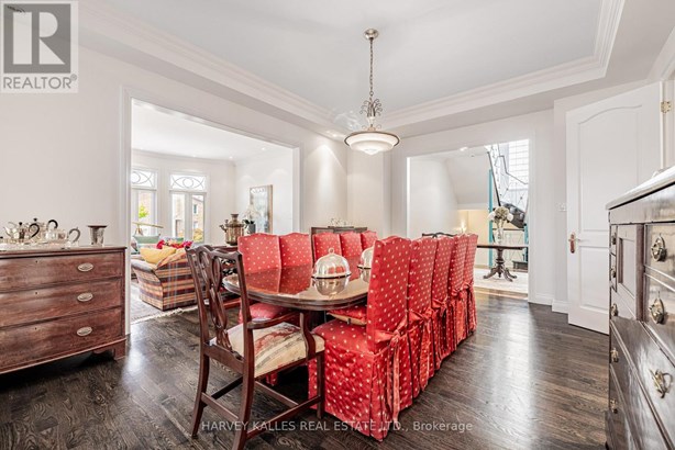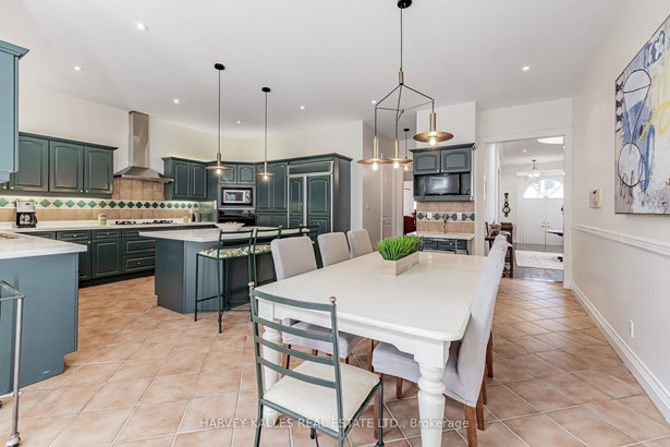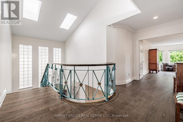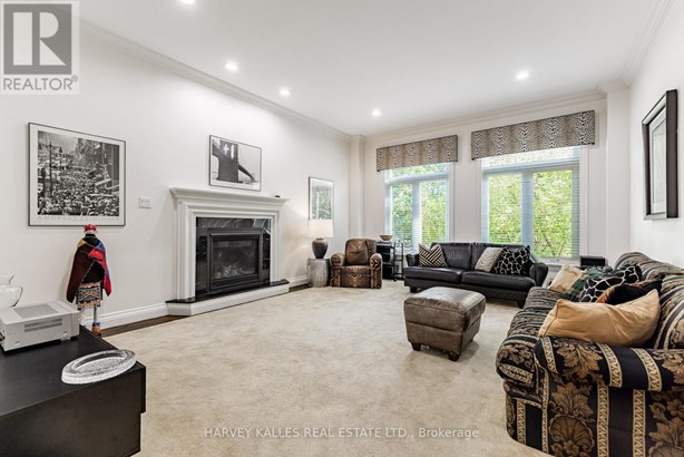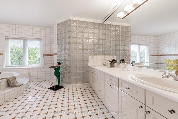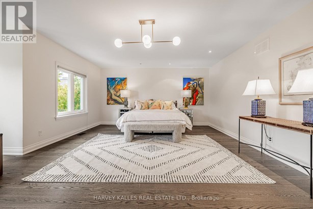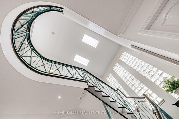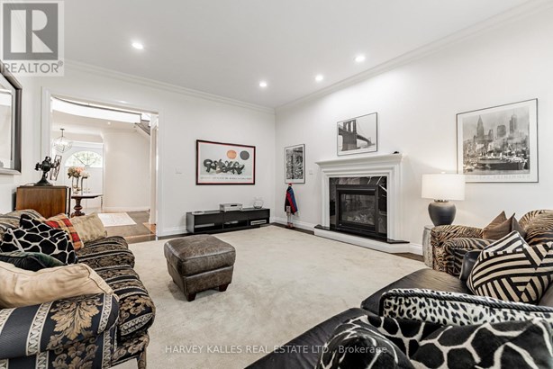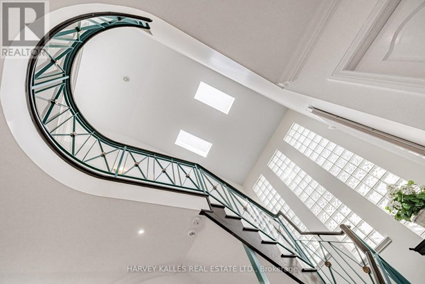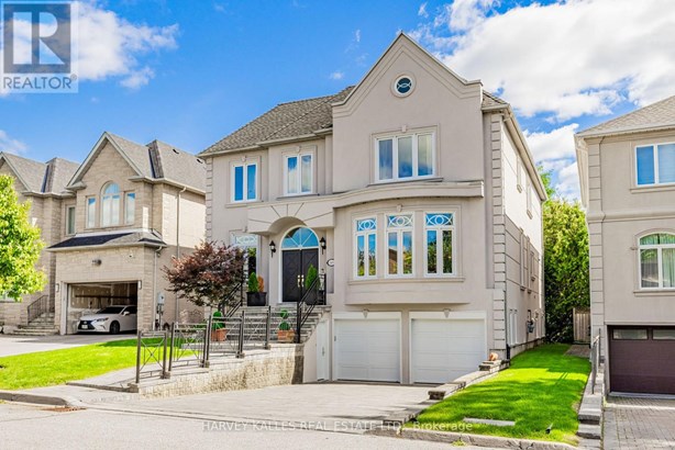 Nestled on a quiet cul-de-sac in one of Thornhill's most sought-after communities, this grand custom-built residence offers over 5,000 square feet of refined living space. Showcasing striking curb appeal and timeless architectural detail, the home opens into a dramatic double-height foyer with skylights and a sweeping curved staircase. The elegant layout features formal living and dining rooms, ideal for hosting memorable celebrations & family milestones, as well as a private main floor office/music room. The gourmet kitchen boasts quartz countertops, a center island, and built-in appliances including a JennAir fridge and two KitchenAid dishwashers. Adjacent is a bright breakfast area with a built-in desk and walk-out to a newly constructed expansive deck, perfect for outdoor entertaining. A warm family room with fireplace invites cozy nights in. The updated powder room and tucked-away laundry room complete the main level. Upstairs, the luxurious primary suite offers a sitting area, two oversized walk-in closets, and a spa-inspired ensuite bath. A spacious guest room with private ensuite and walk-in closet is perfect for in-laws or visitors. Two additional generous bedrooms share a bathroom with double vanity. The fully finished basement adds two more bedrooms and a huge rec space ideal for a theatre, gym, or playroom. Direct access to a double garage and mudroom adds convenience. Recently updated with fresh paint throughout, refinished hardwood on the main floor, and new flooring upstairs and in the basement. Interlocked double drive, landscaped and set among heritage and contemporary homes in a diverse, family-focused neighbourhood. A refined suburban lifestyle in close proximity to top-rated schools, synagogues, and an array of grocery and dining options. Conveniently located just minutes from Hwy 7 and 407, Promenade Shopping Centre, TTC & YRT transit. Enjoy the many nearby parks and wonderful nature, all ideal for leisurely strolls, sports, or family outings.