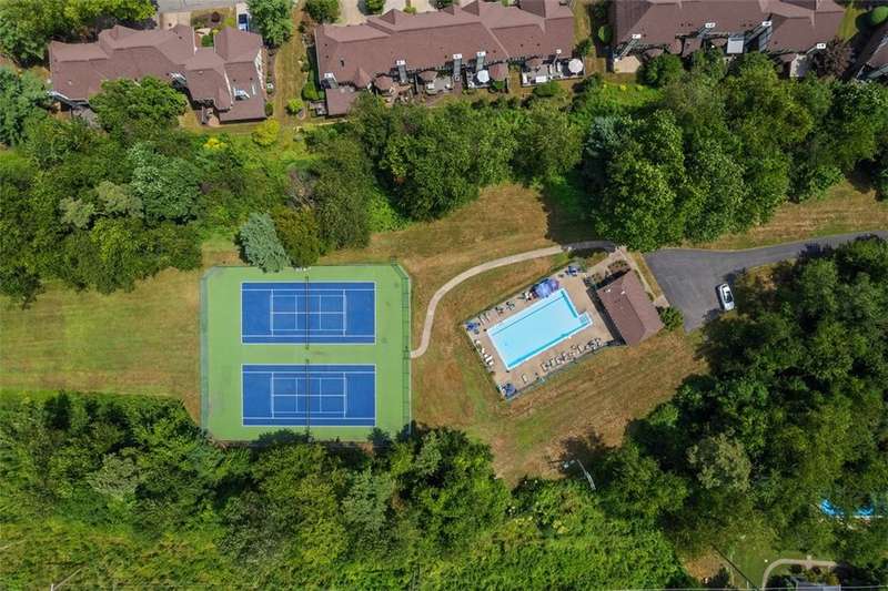 Great opportunity to live in the wonderful community of Forest Highlands. Generously sized living room and family room, kitchen with breakfast nook and pantry on mail level as well as powder room. 2nd floor has owner's suite with private bathroom and walk-in closet. 2nd Bedroom also has private bathroom with amble closet space. Lower level has storage area possibilities. Two car garage. Pool and tennis/pickle courts. Walking community overlooking the Allegheny River. HOA covers roof, lawn maintenance, snow removal, outdoor pool, pickle ball & tennis courts.