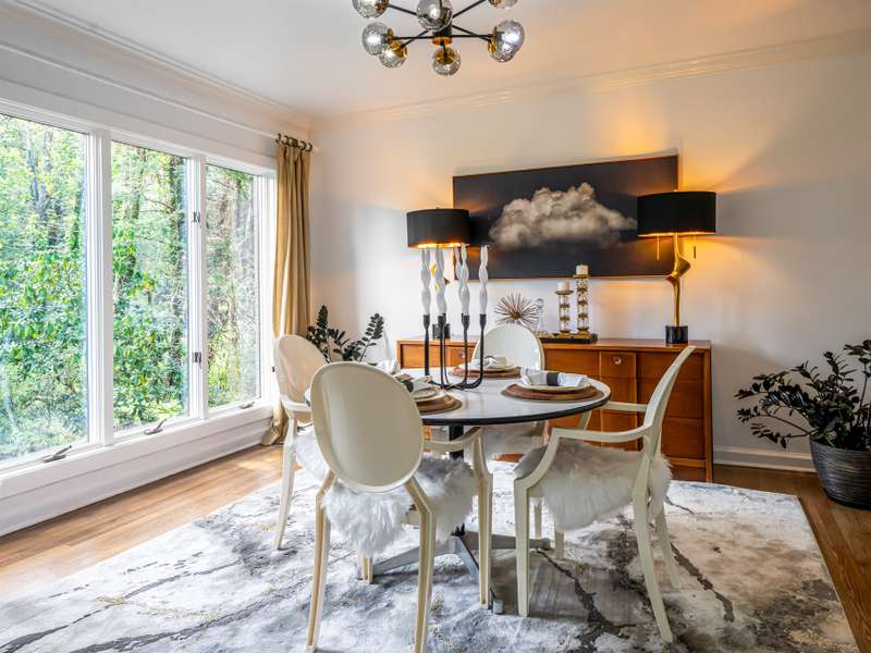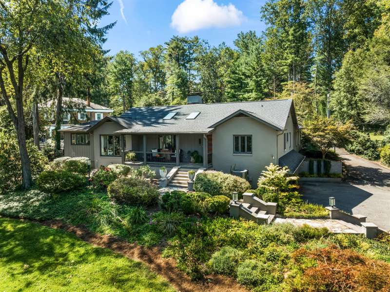 Welcome to 5 Busbee Rd in prestigious Biltmore Forest. This 3BR/4BA home tucked deep off the road on 1.56 acres offers 3,405 sq ft of beautifully updated living space. The current owners have created a tranquil home with abundant natural light and modern amenities. Enjoy a stunning vaulted kitchen and den complete with a beverage bar and extra storage; perfect for entertaining. The large primary suite features a fully remodeled luxurious bath and dressing area with supplemental closets. Two additional main floor bedrooms and sleek aesthetic bathrooms provide ample space for guests or family and a custom library/study offers work from home space and a cozy reading room. The fully fenced, level backyard features a rear driveway for zero-step access and a sizable covered porch. The basement level offers a generous flexible space for a multimedia room, 4th bedroom, or lounge area, plus an extra deep 2 car garage with a workshop, custom shelving and epoxy flooring. An unexpected bonus is the well insulated walk-up attic offering ample storage space with year round ambient temperatures. The entire home has been tastefully designed, so you can simply sit back and enjoy the comforts of this exceptional home. Schedule your showing today!
