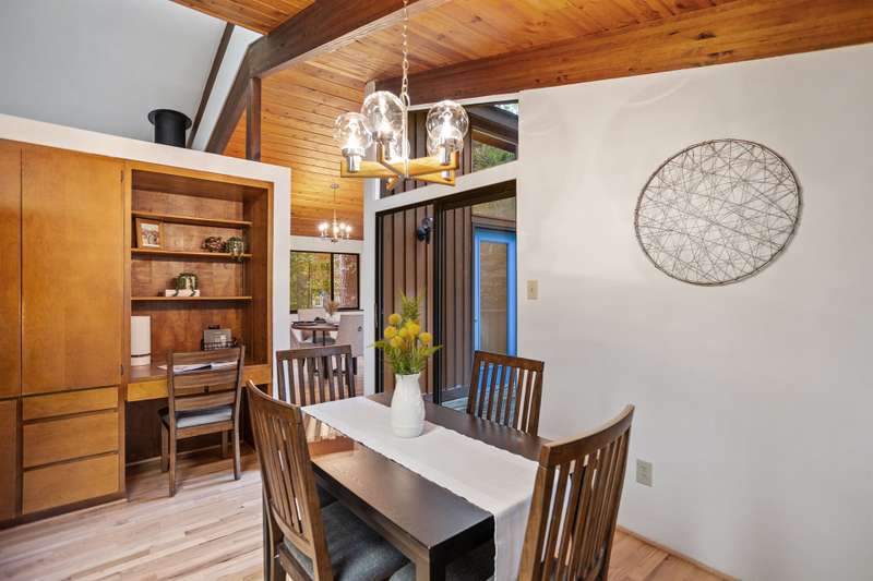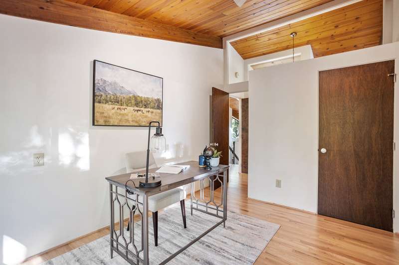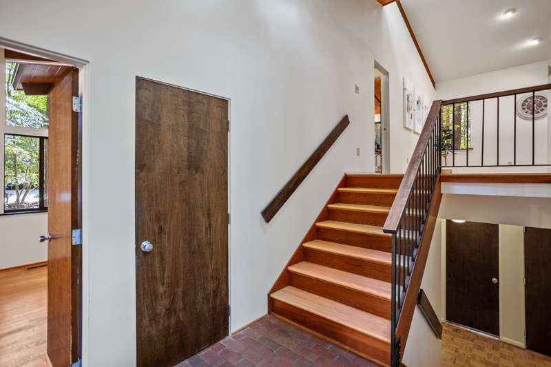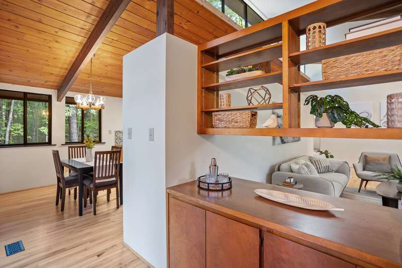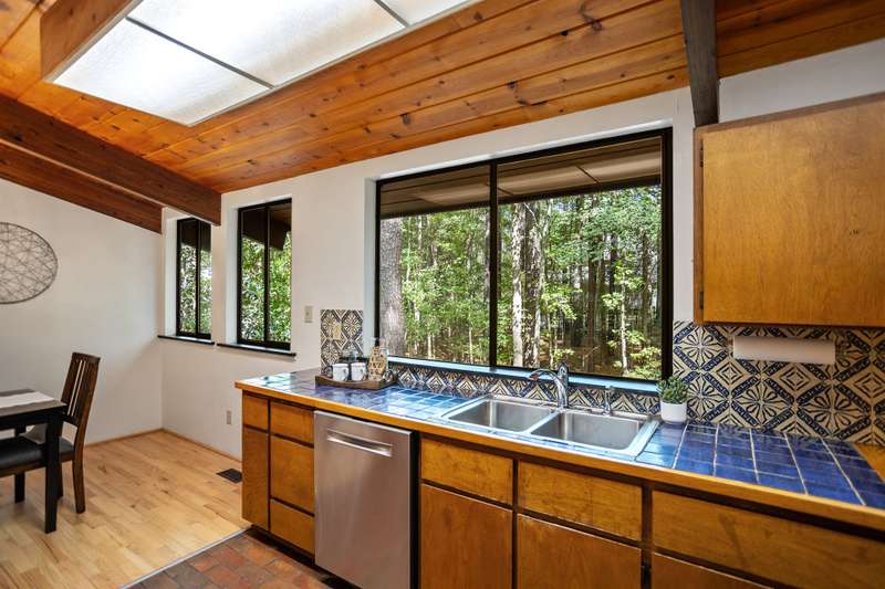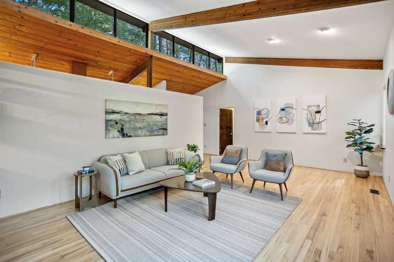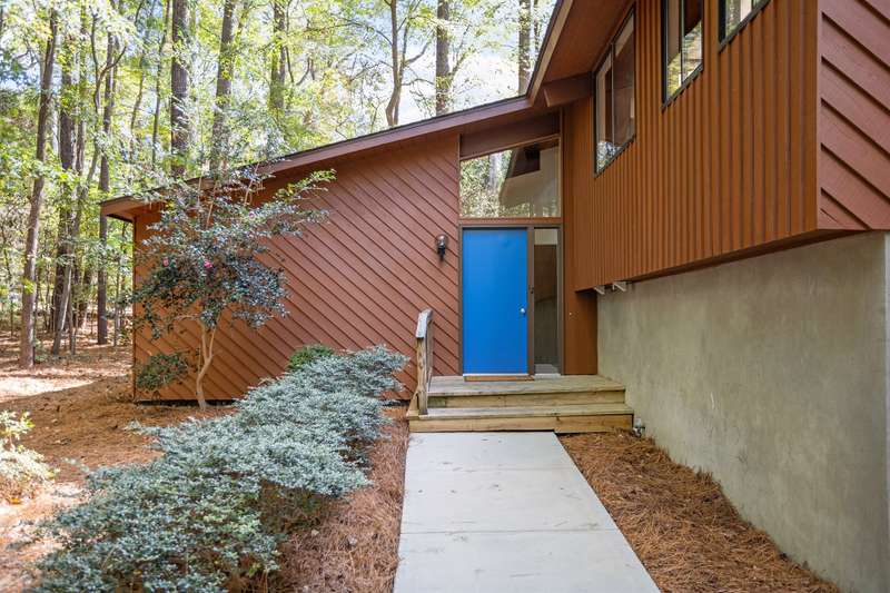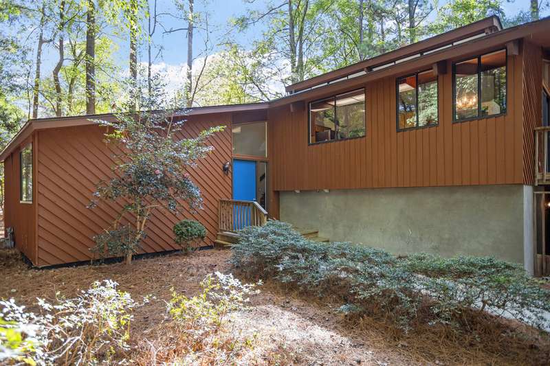 The Ara and Hjordis Tourian House is a post and beam, modernist, Deck House built in Duke Forest by Bomar Construction of Chapel Hill. 4 bedrooms /3 full baths. Split foyer. Open, flexible, spacious interior. This 3000+ SF contemporary home was architect designed for passive use of solar energy with clerestory windows gently filtering natural light into rooms from ceiling height. The visuals are stunning and warm. Large primary suite has separate study and screened porch. Music studio offers additional possibilities as an expansive office, home theatre, art studio, recreation, teaching space, and more. Hardwoods, exposed pine beams /millwork, and original cypress siding are in beautiful shape. One owner since being built in 1980. Original blueprints convey. Proximity to Duke and downtown. This is a rare opportunity to own a truly unique and special home built with thoughtful consideration of design, materials, workmanship, and natural surroundings. Your dreams are now closer than ever.