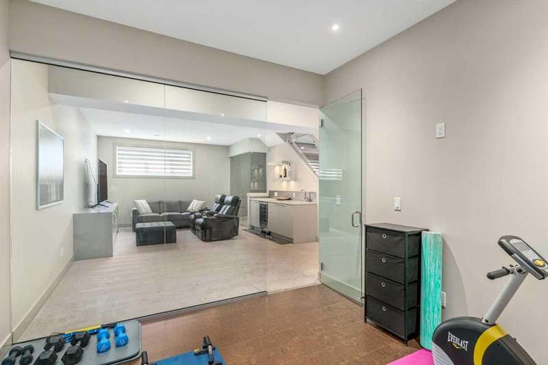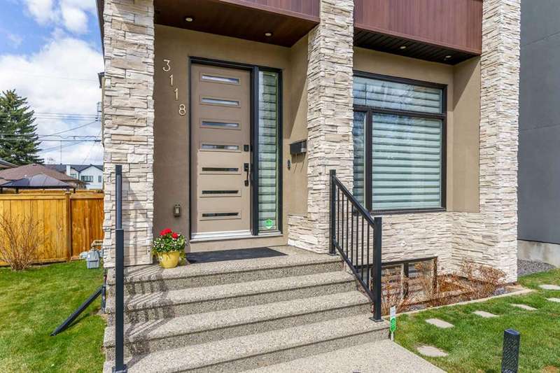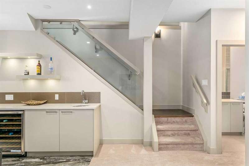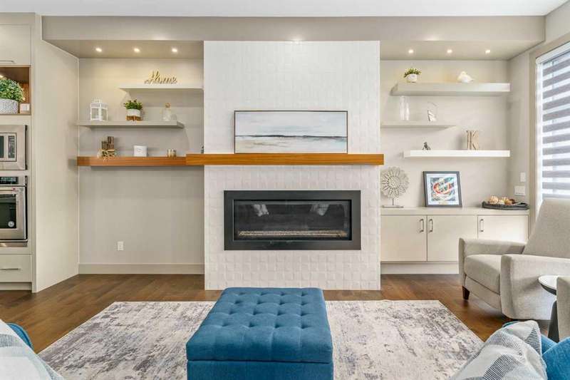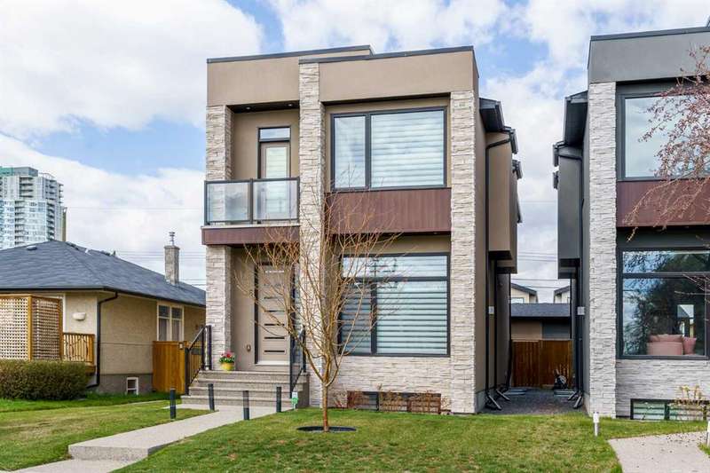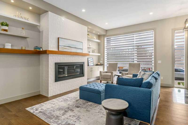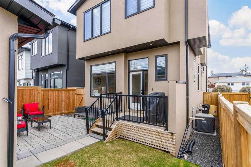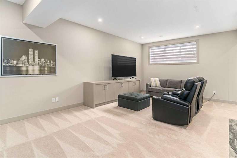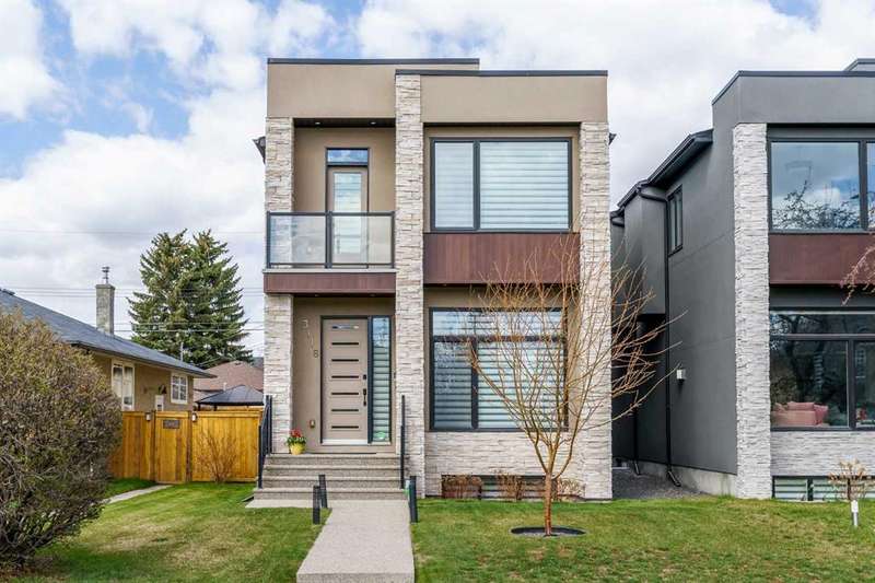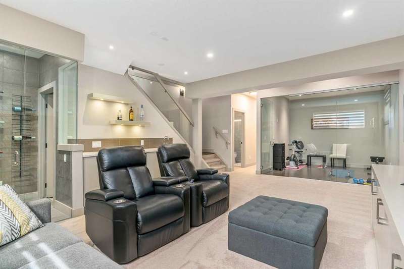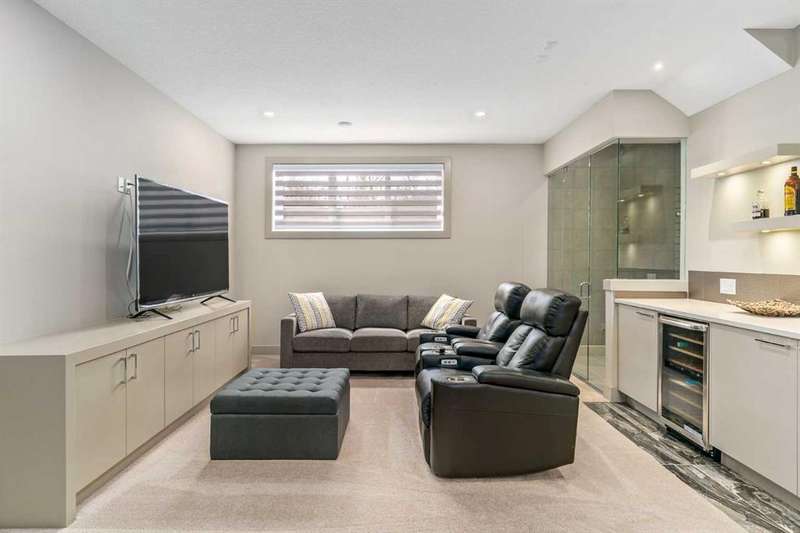 Pride of ownership is evident throughout this meticulously maintained, modern infill, located in one of Calgary’s most desirable inner-city communities. The thoughtfully designed floor plan sets this home apart, with the living room situated at the front of the house and a spacious dining area off the kitchen. A dedicated home office, half bath and a full mudroom with built-in seating and storage complete the main floor layout. The main floor impresses with wide plank distressed hardwood and 10 ft Level 5 painted ceilings and an expansive gas fireplace. The open-concept kitchen features a 10 ft island with thick quartz countertops, a waterfall edge and wood detailing. The high end KitchenAid appliance package includes a massive double wide fridge/freezer, built-in oven and microwave, 5-burner gas cooktop, and dishwasher. Custom soft close cabinetry extends to the ceiling, offering abundant storage solutions. Throughout the home you’ll find designer touches including a glass wall and glass stair railings on all three levels. Solid core 8 ft interior doors on the main and upper level add a sense of quiet luxury and improved soundproofing. A built-in Vacuflo system with a kitchen kick pan adds everyday convenience. The upper level offers three generously sized bedrooms, a convenient laundry room, and a bright bonus room at the front of the home. The luxurious primary suite includes a spacious walk-in closet and a spa-inspired ensuite featuring a soaker tub and an oversized shower with rain head. The fully finished basement features a glass-enclosed home gym & wine room, a wet bar with wine fridge, a home theatre space, a guest bedroom, and a full bathroom with heated floors. Enjoy outdoor living in the spacious backyard, featuring a large patio perfect for entertaining. A gas bbq hookup makes outdoor cooking a breeze while the low maintenance yard offers just the right amount of green space for kids, pets or a garden. The double detached garage is insulated and drywalled. Enjoy easy access to the Westbrook CTrain station, grocery stores, restaurants, public library, public pool, schools, parks, and the Shaganappi Point Golf Course. Outdoor enthusiasts will appreciate the nearby Shaganappi Community Association park, which features a skating rink, tennis courts and an off-leash dog park. Don't miss your chance to own this exceptional property, book your showing today!