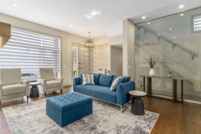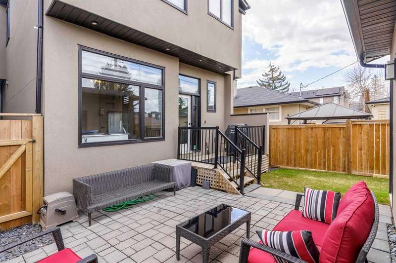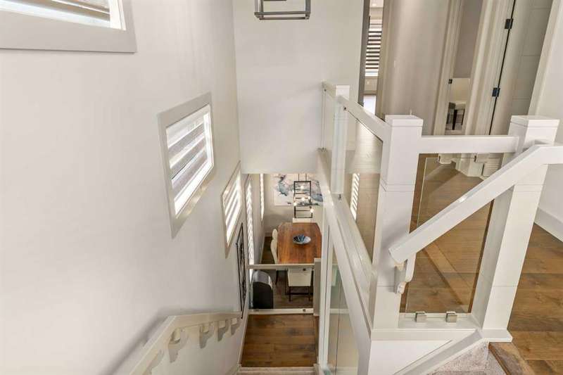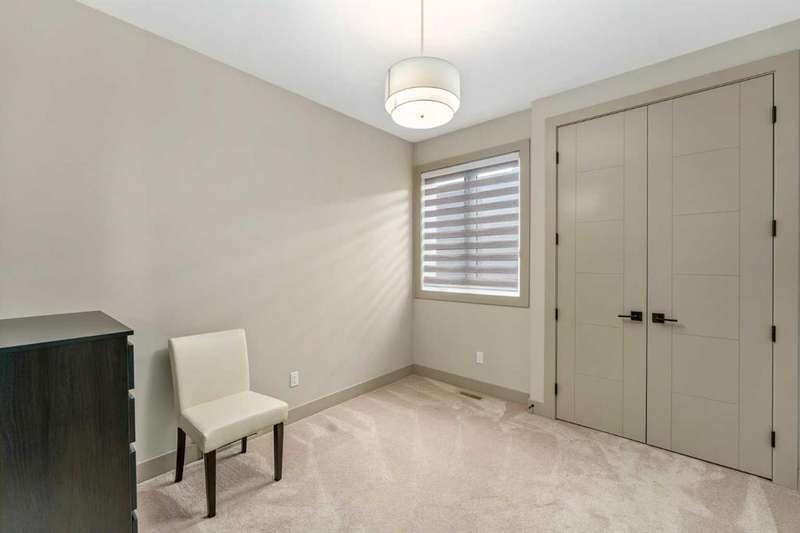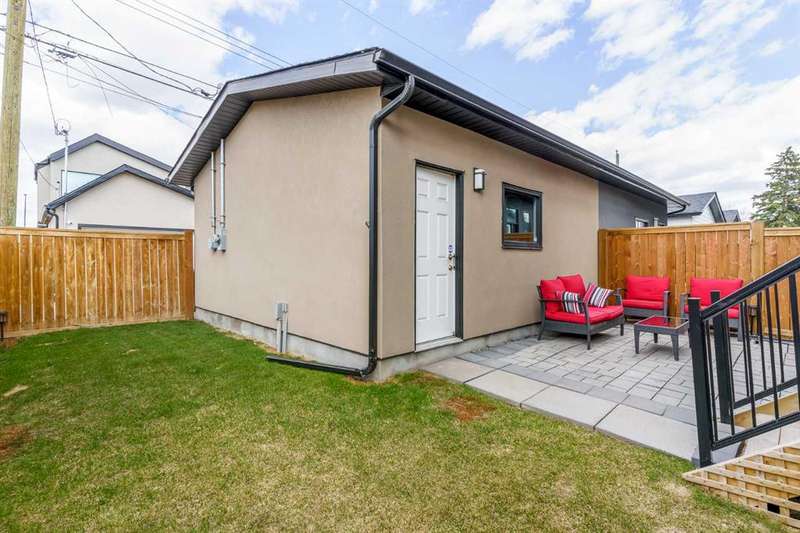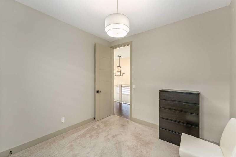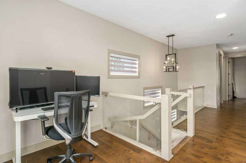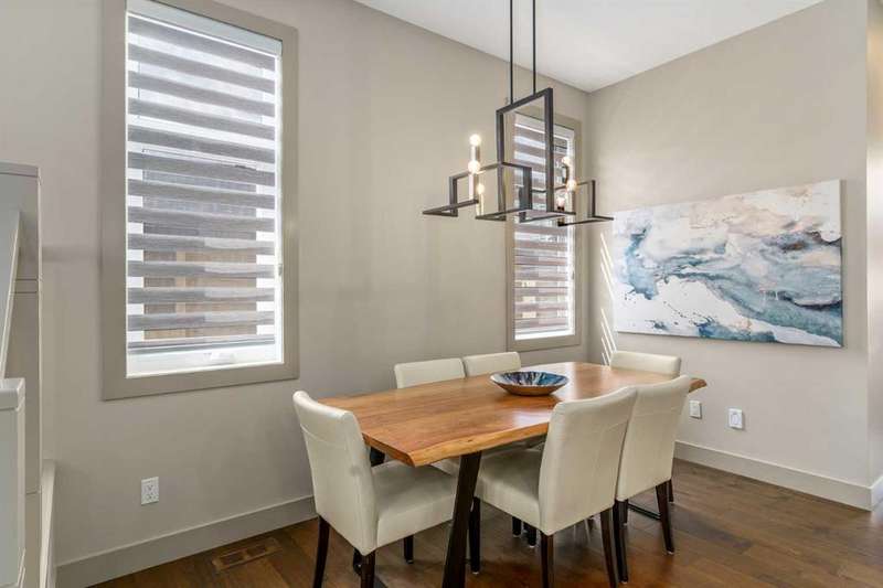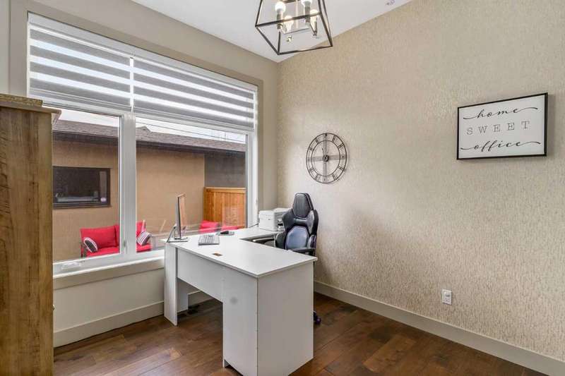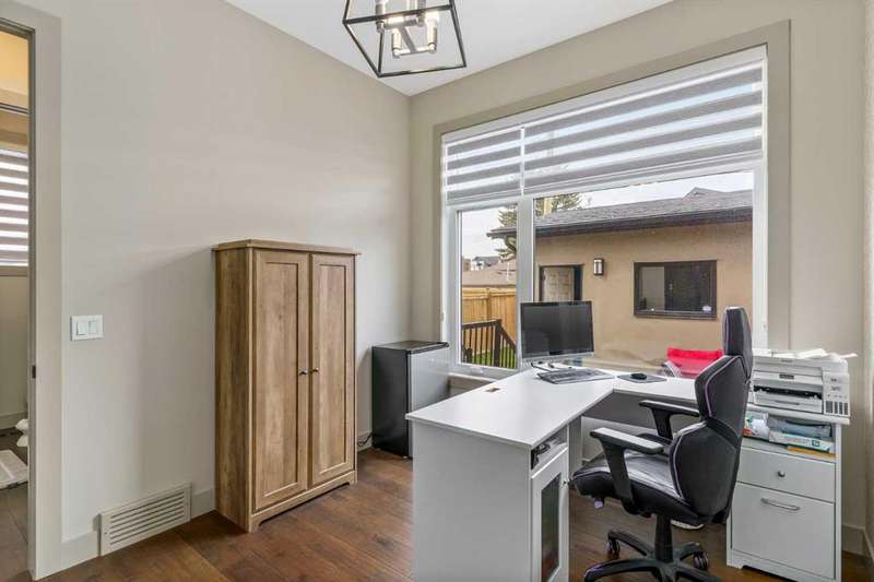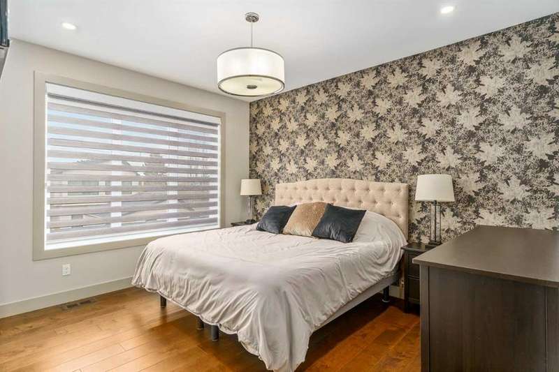 Pride of ownership is evident throughout this meticulously maintained, modern infill, located in one of Calgary’s most desirable inner-city communities. The thoughtfully designed floor plan sets this home apart, with the living room situated at the front of the house and a spacious dining area off the kitchen. A dedicated home office, half bath and a full mudroom with built-in seating and storage complete the main floor layout. The main floor impresses with wide plank distressed hardwood and 10 ft Level 5 painted ceilings and an expansive gas fireplace. The open-concept kitchen features a 10 ft island with thick quartz countertops, a waterfall edge and wood detailing. The high end KitchenAid appliance package includes a massive double wide fridge/freezer, built-in oven and microwave, 5-burner gas cooktop, and dishwasher. Custom soft close cabinetry extends to the ceiling, offering abundant storage solutions. Throughout the home you’ll find designer touches including a glass wall and glass stair railings on all three levels. Solid core 8 ft interior doors on the main and upper level add a sense of quiet luxury and improved soundproofing. A built-in Vacuflo system with a kitchen kick pan adds everyday convenience. The upper level offers three generously sized bedrooms, a convenient laundry room, and a bright bonus room at the front of the home. The luxurious primary suite includes a spacious walk-in closet and a spa-inspired ensuite featuring a soaker tub and an oversized shower with rain head. The fully finished basement features a glass-enclosed home gym & wine room, a wet bar with wine fridge, a home theatre space, a guest bedroom, and a full bathroom with heated floors. Enjoy outdoor living in the spacious backyard, featuring a large patio perfect for entertaining. A gas bbq hookup makes outdoor cooking a breeze while the low maintenance yard offers just the right amount of green space for kids, pets or a garden. The double detached garage is insulated and drywalled. Enjoy easy access to the Westbrook CTrain station, grocery stores, restaurants, public library, public pool, schools, parks, and the Shaganappi Point Golf Course. Outdoor enthusiasts will appreciate the nearby Shaganappi Community Association park, which features a skating rink, tennis courts and an off-leash dog park. Don't miss your chance to own this exceptional property, book your showing today!