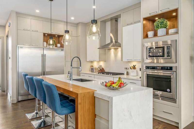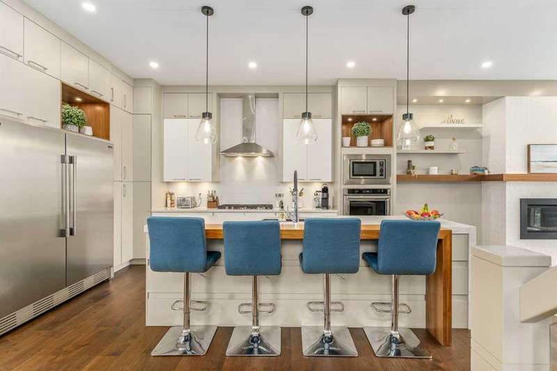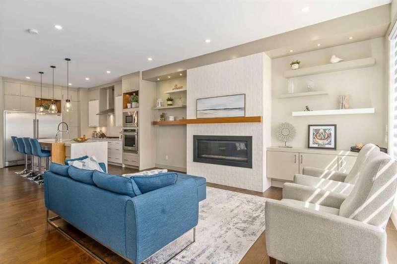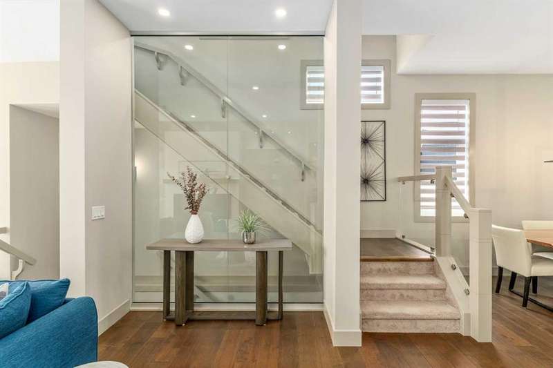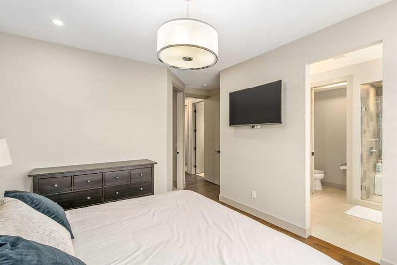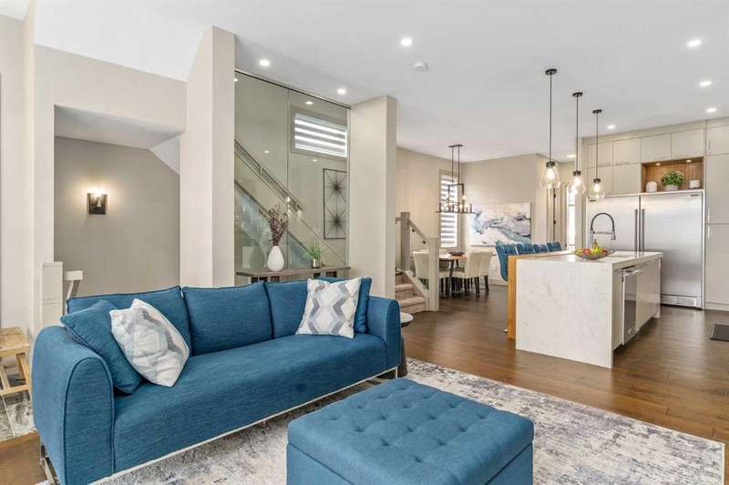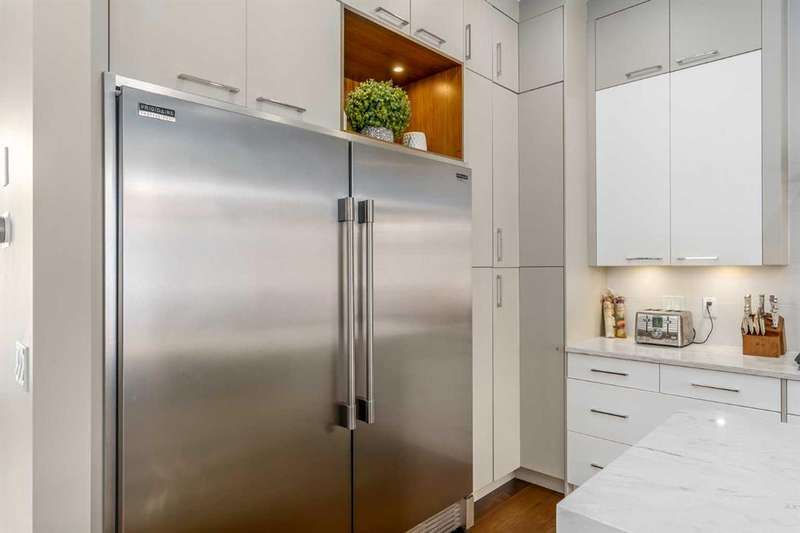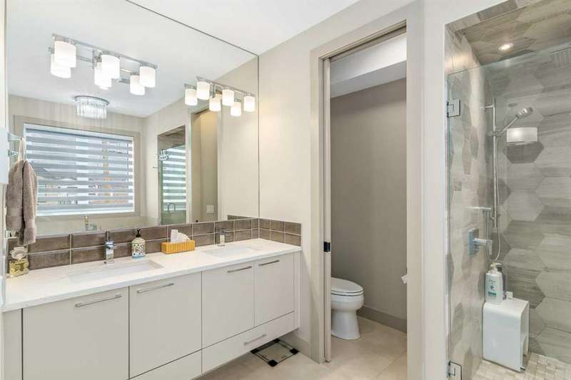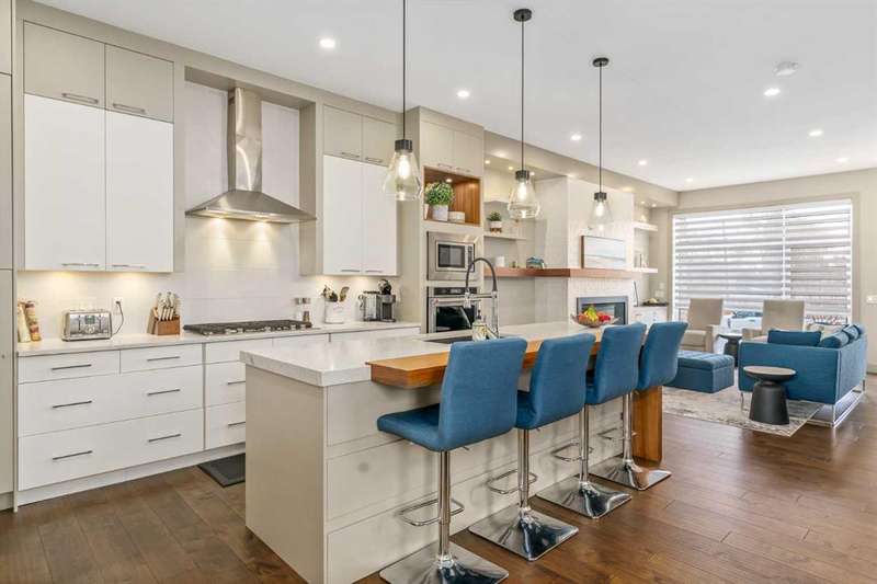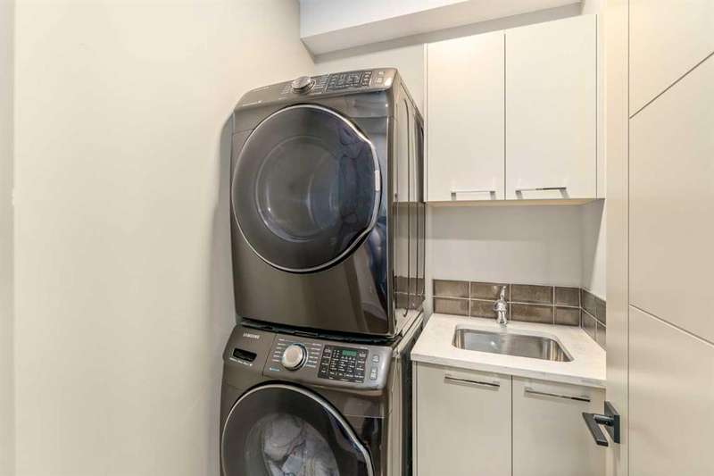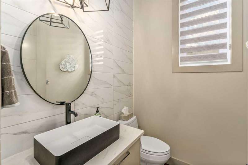 Pride of ownership is evident throughout this meticulously maintained, modern infill, located in one of Calgary’s most desirable inner-city communities. The thoughtfully designed floor plan sets this home apart, with the living room situated at the front of the house and a spacious dining area off the kitchen. A dedicated home office, half bath and a full mudroom with built-in seating and storage complete the main floor layout. The main floor impresses with wide plank distressed hardwood and 10 ft Level 5 painted ceilings and an expansive gas fireplace. The open-concept kitchen features a 10 ft island with thick quartz countertops, a waterfall edge and wood detailing. The high end KitchenAid appliance package includes a massive double wide fridge/freezer, built-in oven and microwave, 5-burner gas cooktop, and dishwasher. Custom soft close cabinetry extends to the ceiling, offering abundant storage solutions. Throughout the home you’ll find designer touches including a glass wall and glass stair railings on all three levels. Solid core 8 ft interior doors on the main and upper level add a sense of quiet luxury and improved soundproofing. A built-in Vacuflo system with a kitchen kick pan adds everyday convenience. The upper level offers three generously sized bedrooms, a convenient laundry room, and a bright bonus room at the front of the home. The luxurious primary suite includes a spacious walk-in closet and a spa-inspired ensuite featuring a soaker tub and an oversized shower with rain head. The fully finished basement features a glass-enclosed home gym & wine room, a wet bar with wine fridge, a home theatre space, a guest bedroom, and a full bathroom with heated floors. Enjoy outdoor living in the spacious backyard, featuring a large patio perfect for entertaining. A gas bbq hookup makes outdoor cooking a breeze while the low maintenance yard offers just the right amount of green space for kids, pets or a garden. The double detached garage is insulated and drywalled. Enjoy easy access to the Westbrook CTrain station, grocery stores, restaurants, public library, public pool, schools, parks, and the Shaganappi Point Golf Course. Outdoor enthusiasts will appreciate the nearby Shaganappi Community Association park, which features a skating rink, tennis courts and an off-leash dog park. Don't miss your chance to own this exceptional property, book your showing today!