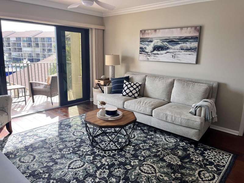 This 2/2 beautiful condo unit is located in one of best rental property Marina communities in Jupiter! The open balcony stretches from the living room to the primary bedroom with a beautiful view of the pool & marina.The condo has impact glass sliders, solid wood floors, & updated kitchen with granite countertops. The laundry room includes bonus space for multiple purposes. Marina at the Bluffs is located just a mere 0.8 miles from the ocean & a short distance to Publix Supermarket, pharmacy, restaurants, etc. The condo sports a day dock for family and friends to visit. The Community has four pools, Tennis Courts, Bocce Ball, community beach, and more.. This property is great for an annual or seasonal rental - don't miss out!!