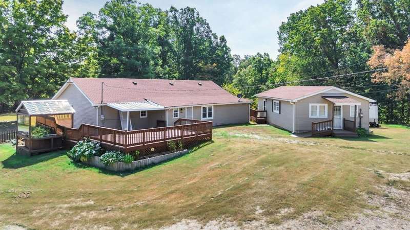 Newly Renovated UNIQUE Property! Dead-End Road. Complete privacy! 2 units! Main Home has a 2 master BR Design with Additional Br for office or Nursery. Re-furbished Butler's pantry! 2nd unit! 2br/1ba can be Rental , Guest House or MIL suite with with own laundry or Utilities. Large Deck with Jacuzzi in Gazebo. 2000+ sq.ft barn has shop, kennel and stalls. Lucrative Dog Breeding business previously conducted on this property. Most of the kennels are being left/are so you c a breed or rescue. Over 7 acres of Pasture fenced with spring fed pond. guaranteed more storage space than you will ever need! Two additional lots are attached making this a 18.99 acre mini farm See mls# 2581390,2581392 and 2581390. IF YOU BUY THIS WAY. THE GREENBELT WILL APPLY !
