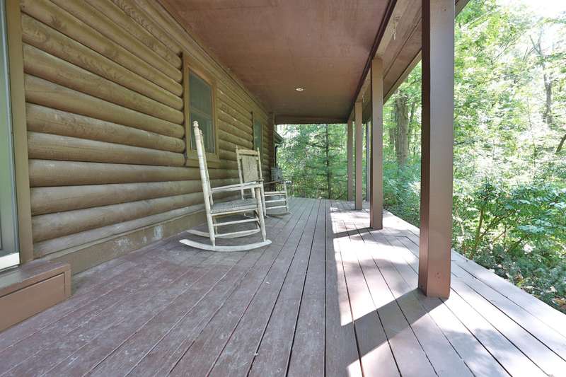 Welcome to your dream home! Nestled on 1.5 wooded acres across from the charming Hanover Winery. This log cabin offers a peaceful retreat set back from the road for added privacy. Enjoy relaxing mornings and evenings on the beautiful front porch surrounded by nature. Inside, you'll find a cozy eat-in kitchen with modern updates. Though the home is being sold as-is and needs a bit of TLC, it presents a wonderful opportunity to personalize and restore its character. This property combines charm, potential, and a picturesque location. Driveway repaved 8/25, new roof 11/24, new heat pump and A/C less than a year ago, garage door/opener one year ago, furnace two years ago. Two sheds in the back of the property stay. Room dimensions are approximate--buyers should rely on their own measurements/inspections. All furniture that is in the house will convey with the property.