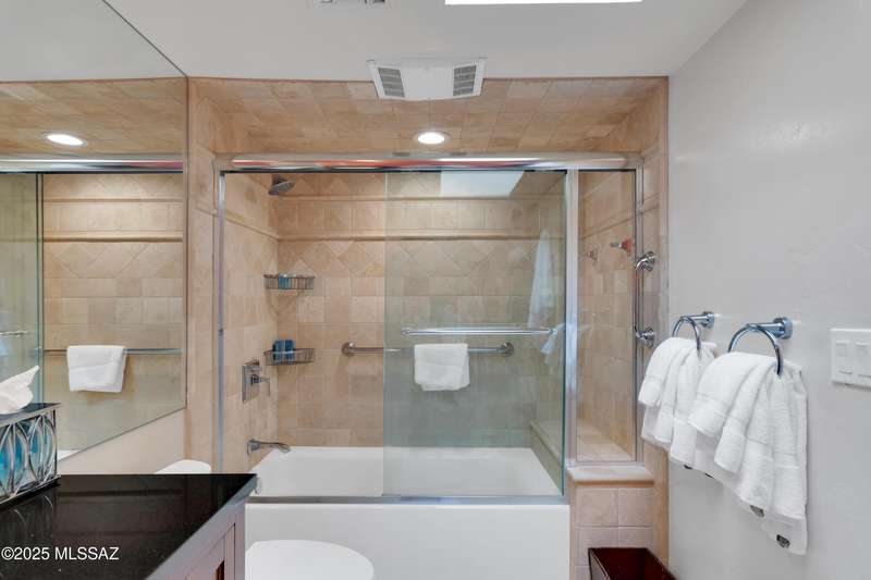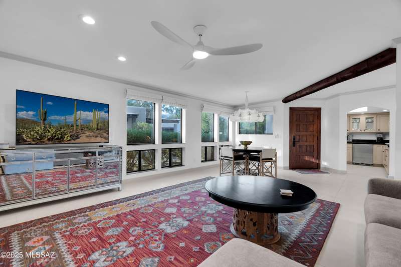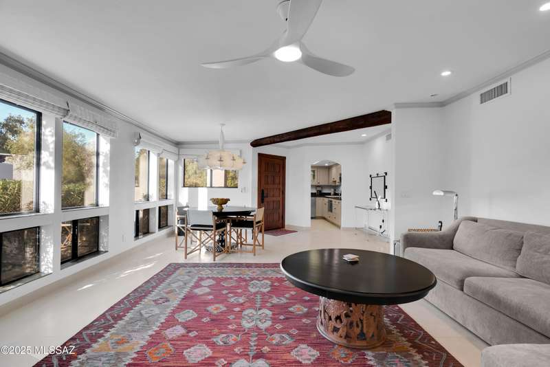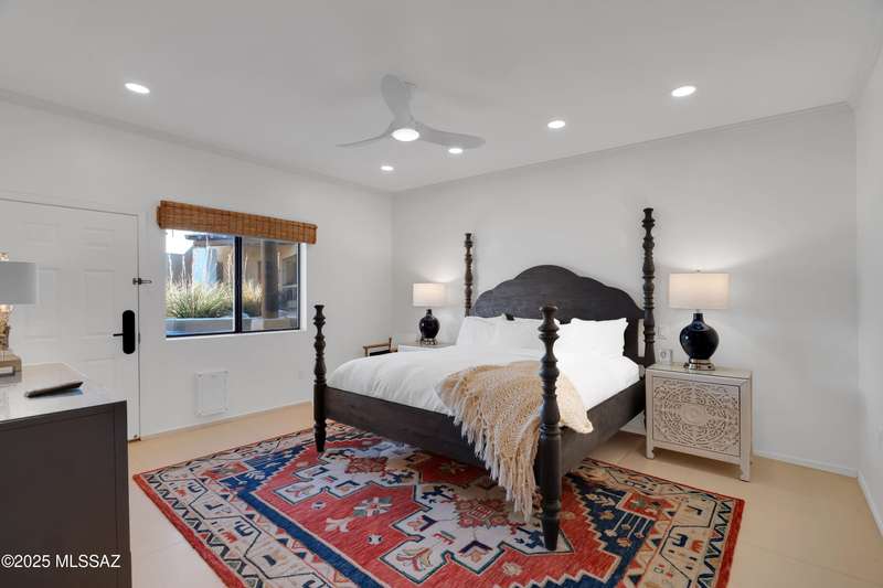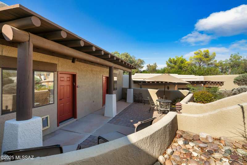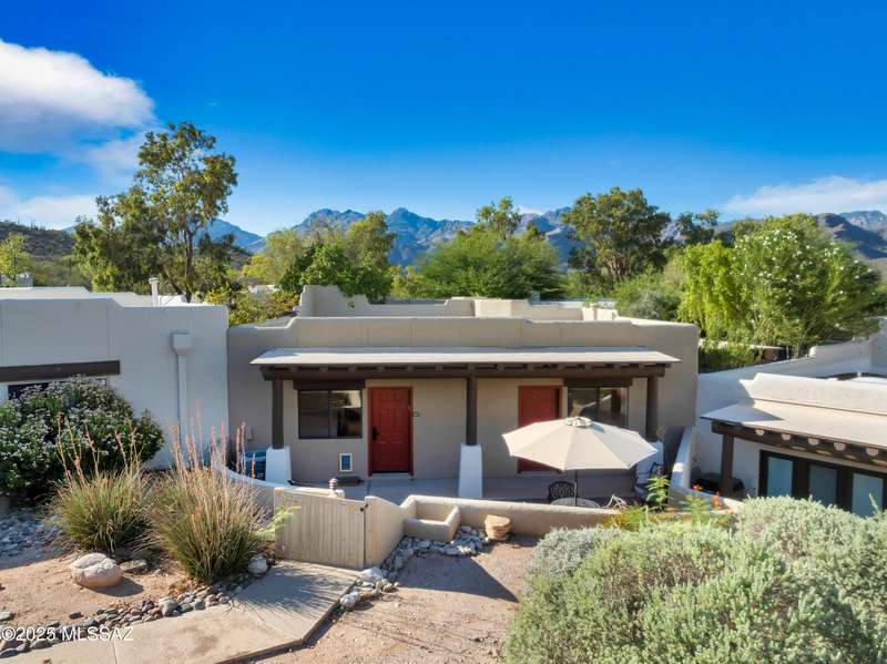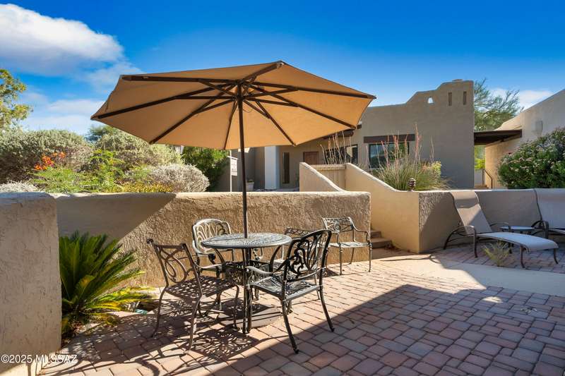 Retreat into this bright and spacious casita done with simple elegance located on the pristine grounds of world renowned Canyon Ranch Health & Fitness resort .Enjoy exclusive access to home owners membership and engage in a plethora of fitness activities, classes, tennis, pools, state of the art gyms, body works, meditation. Feast on healthy gourmet offering tastefully prepared at the two dining venues. Casita was built and is owned by Mel and Enid Zuckerman, the very visionary founders of Canyon Ranch.Spacious 2 Primary Bedrooms/Baths. Open-floor- plan great room that smoothly flows through the dining area and the kitchen with quality cabinets and appliances. Textured Concrete flooring throughout the interior, powered window treatments.