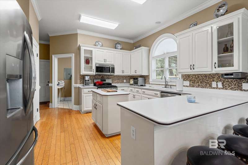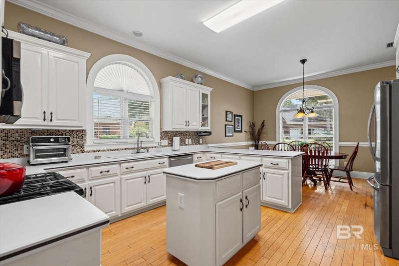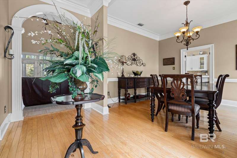 Welcome to this beautifully crafted brick and stucco home in popular Muir Woods. With 4 spacious bedrooms, 3.5 baths, and thoughtful details throughout, this property offers comfort, functionality, and timeless style. Step onto the inviting front porch and into a welcoming interior featuring a large foyer with formal living room and formal dining room. The heart of the home is the sunny kitchen with gleaming countertops, a large island, breakfast bar, breakfast room, and modern stainless steel appliances great for entertaining or everyday living. Retreat to the luxurious downstairs master suite complete with its own gas fireplace, his and her walk-in closets, double vanities, a separate tiled shower, and a garden tub for soaking the stress away. The warm and inviting den has a cozy gas fireplace and French doors leading out to the fenced backyard, complete with a refreshing saltwater pool. Upstairs, you will find an additional bedroom with full bath, private study with lots of built ins, and a bonus room with half bath that could easily serve as an additional bedroom, playroom, or home gym. Home has two tankless gas water heaters, Roof 2017Seller is licensed RE agent in state of AlabamaBuyer responsible for verifying all measurements and relevant details. Buyer to verify all information during due diligence.